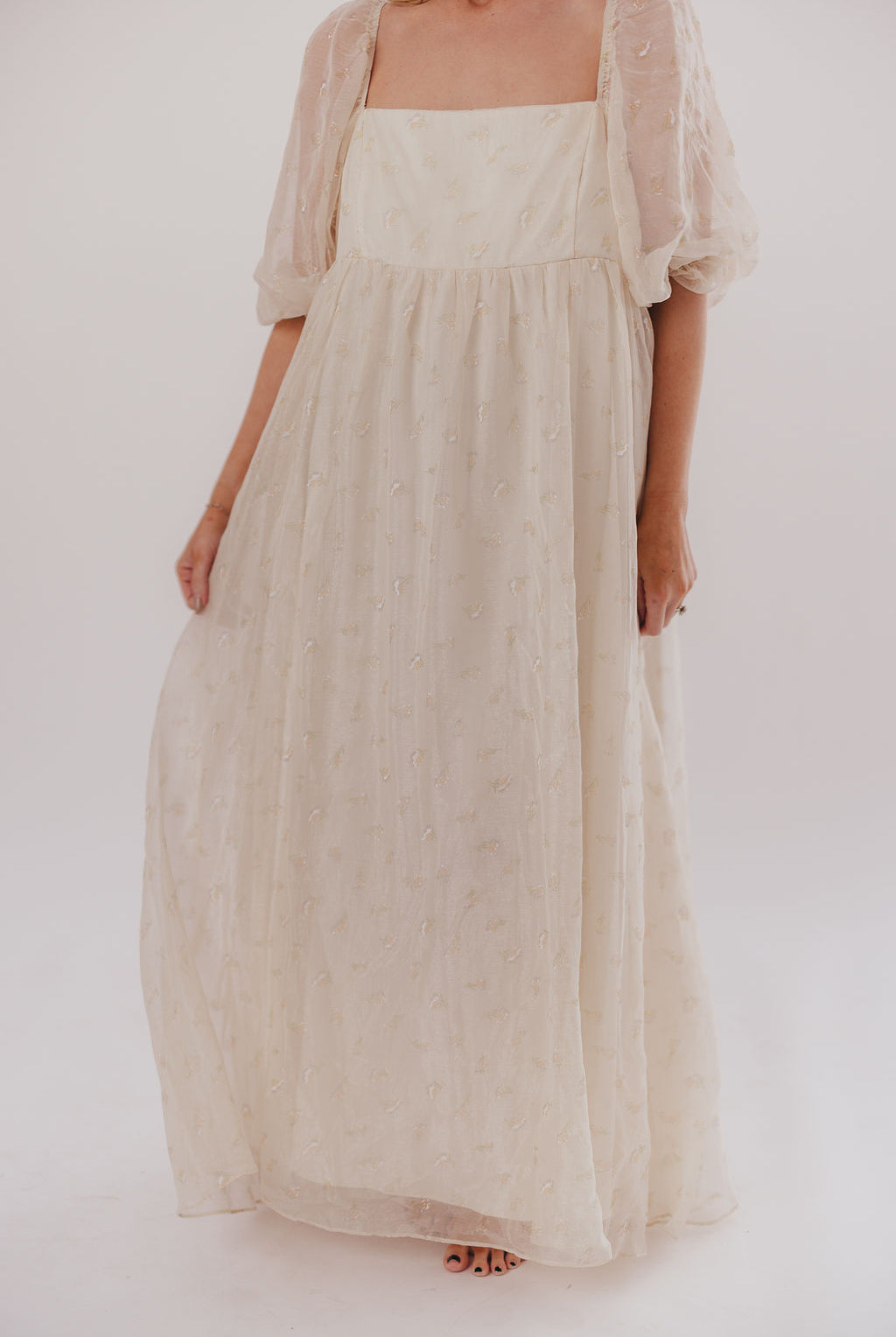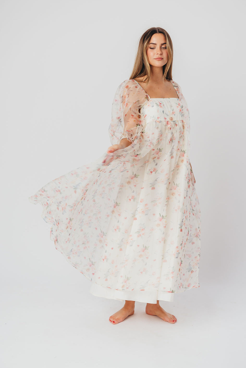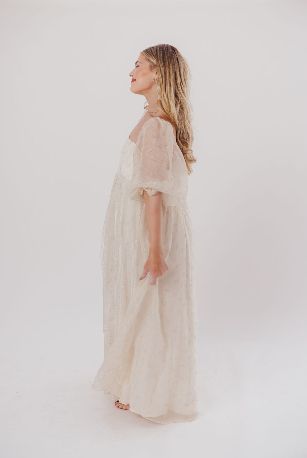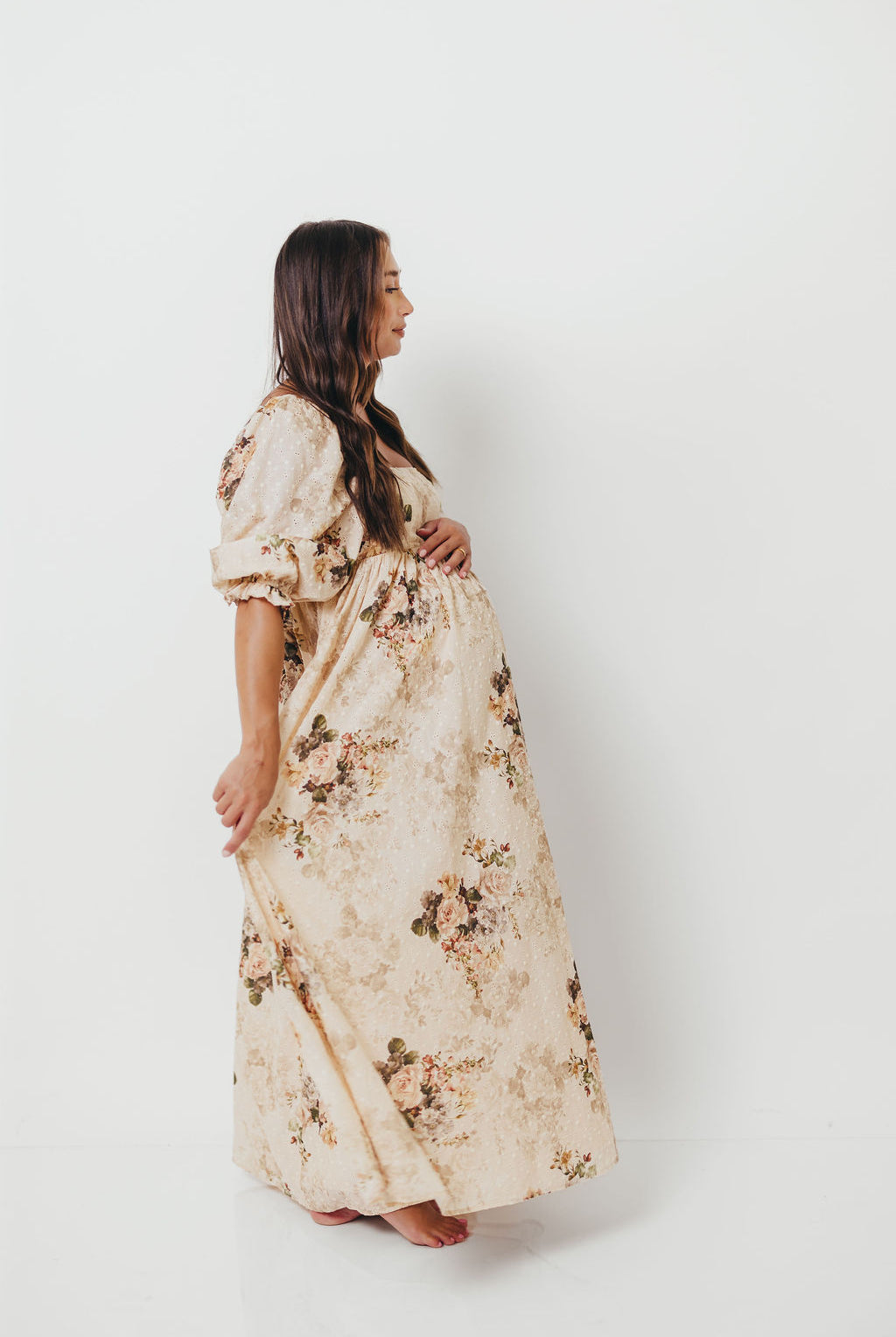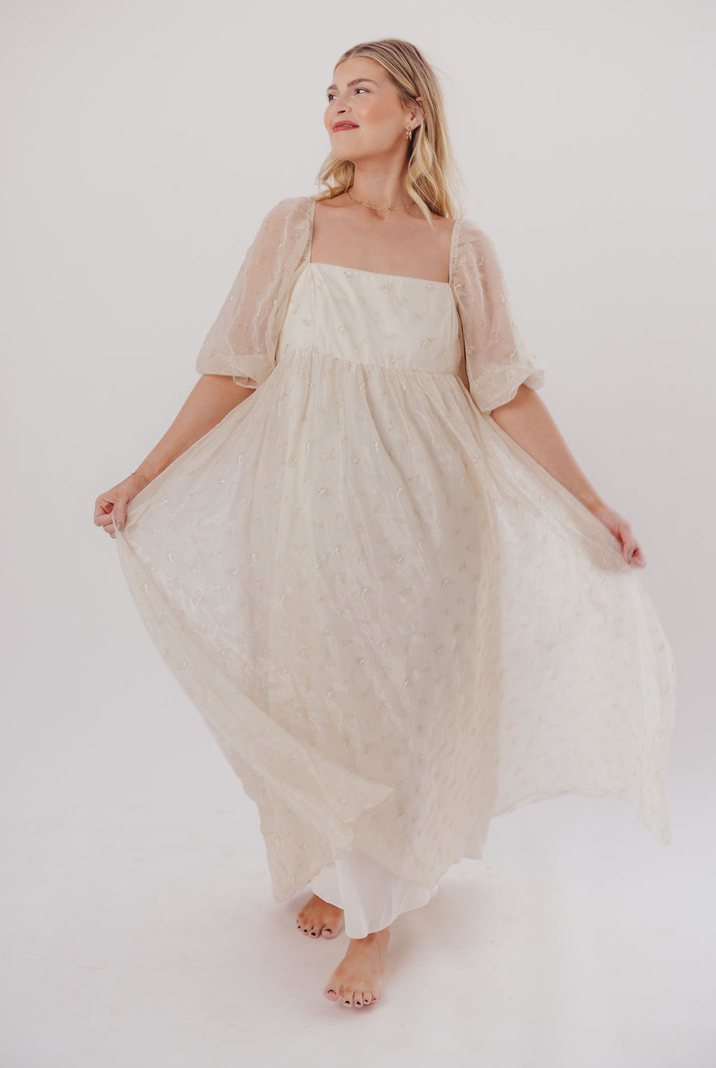 This dreamy maxi dress is pure romance; you'll practically float away in a stunning, gauzy cloud! Featuring a flattering square neckline and empire waist, it's giving elegant Bridgerton while staying fresh and charming. The Mona is a favorite with our expecting mamas, and is a perfect choice for maternity shoots or a special event brunch. Enjoy feeling like royalty!