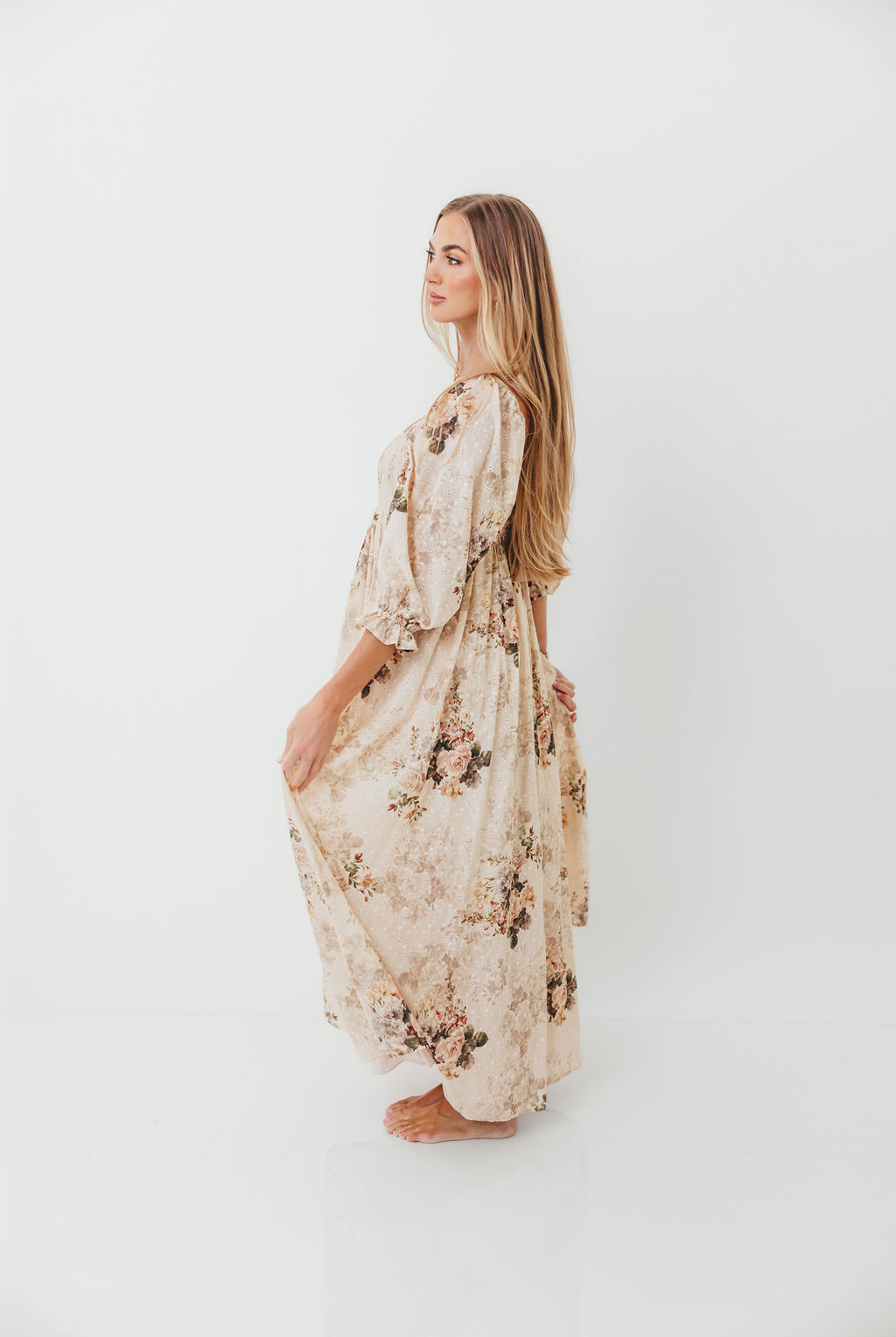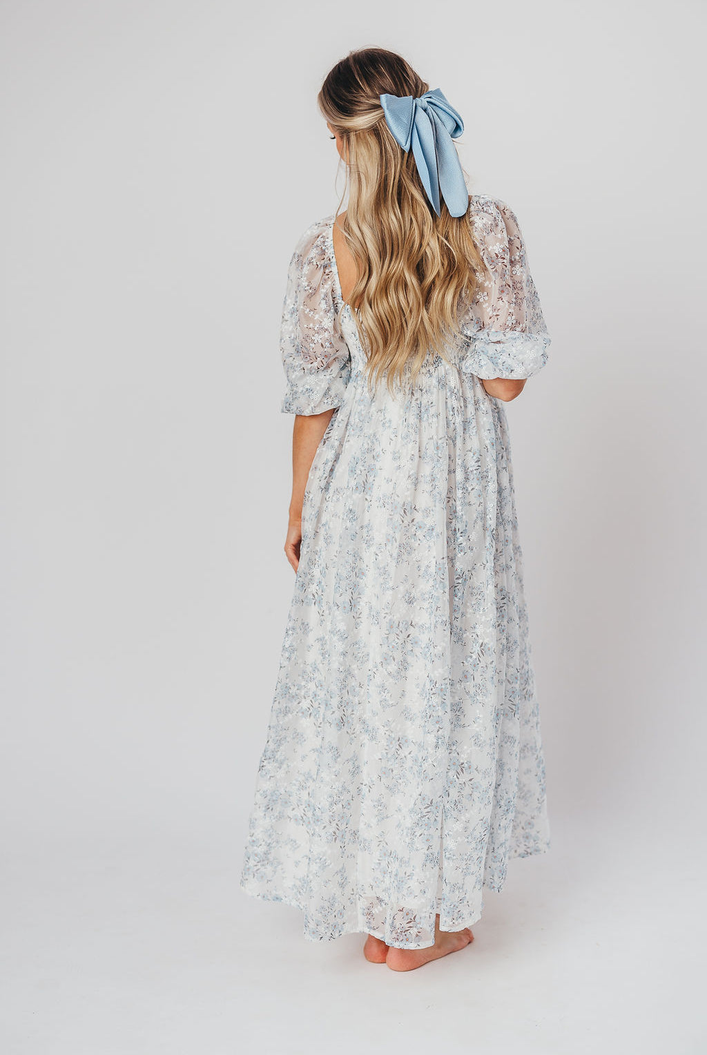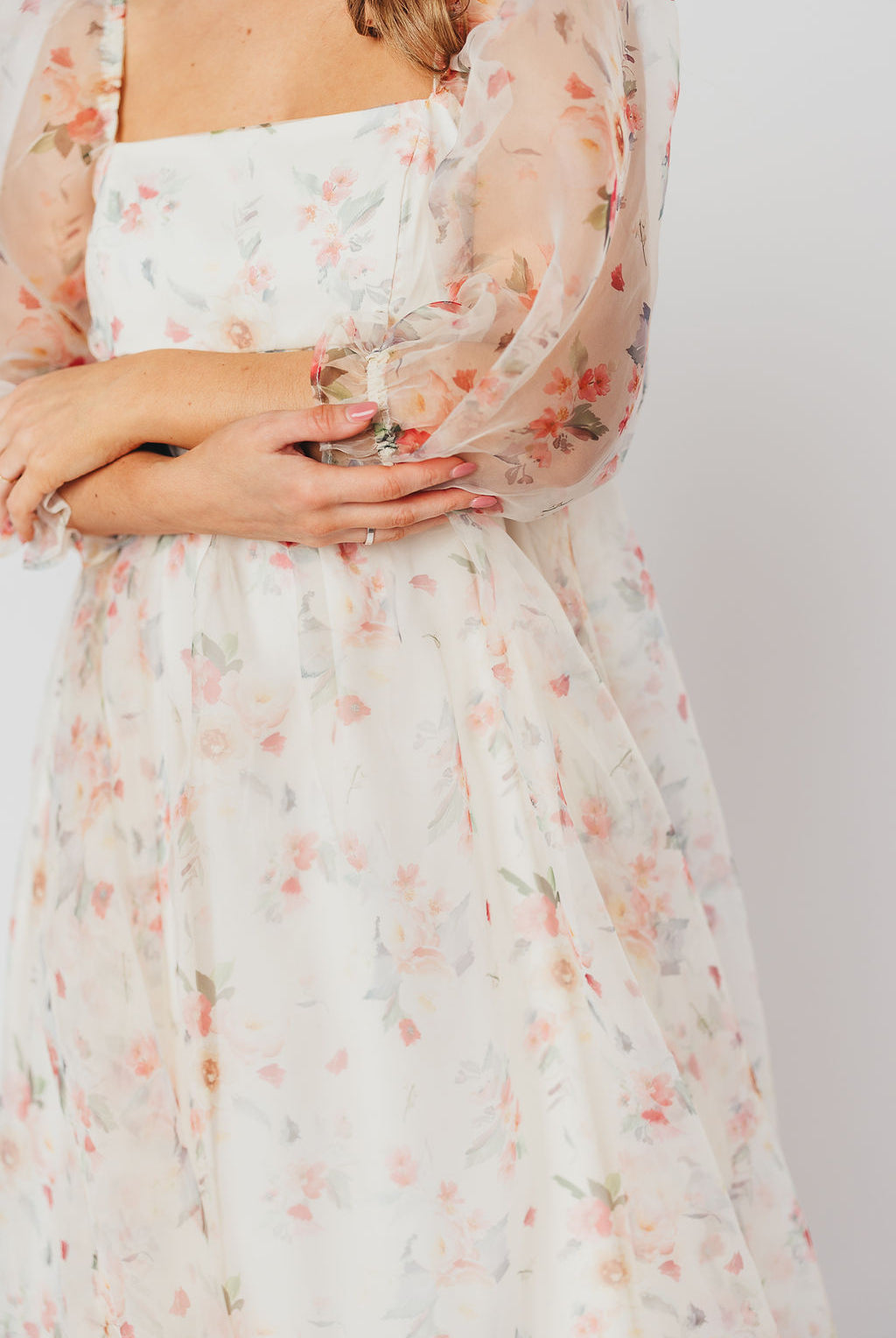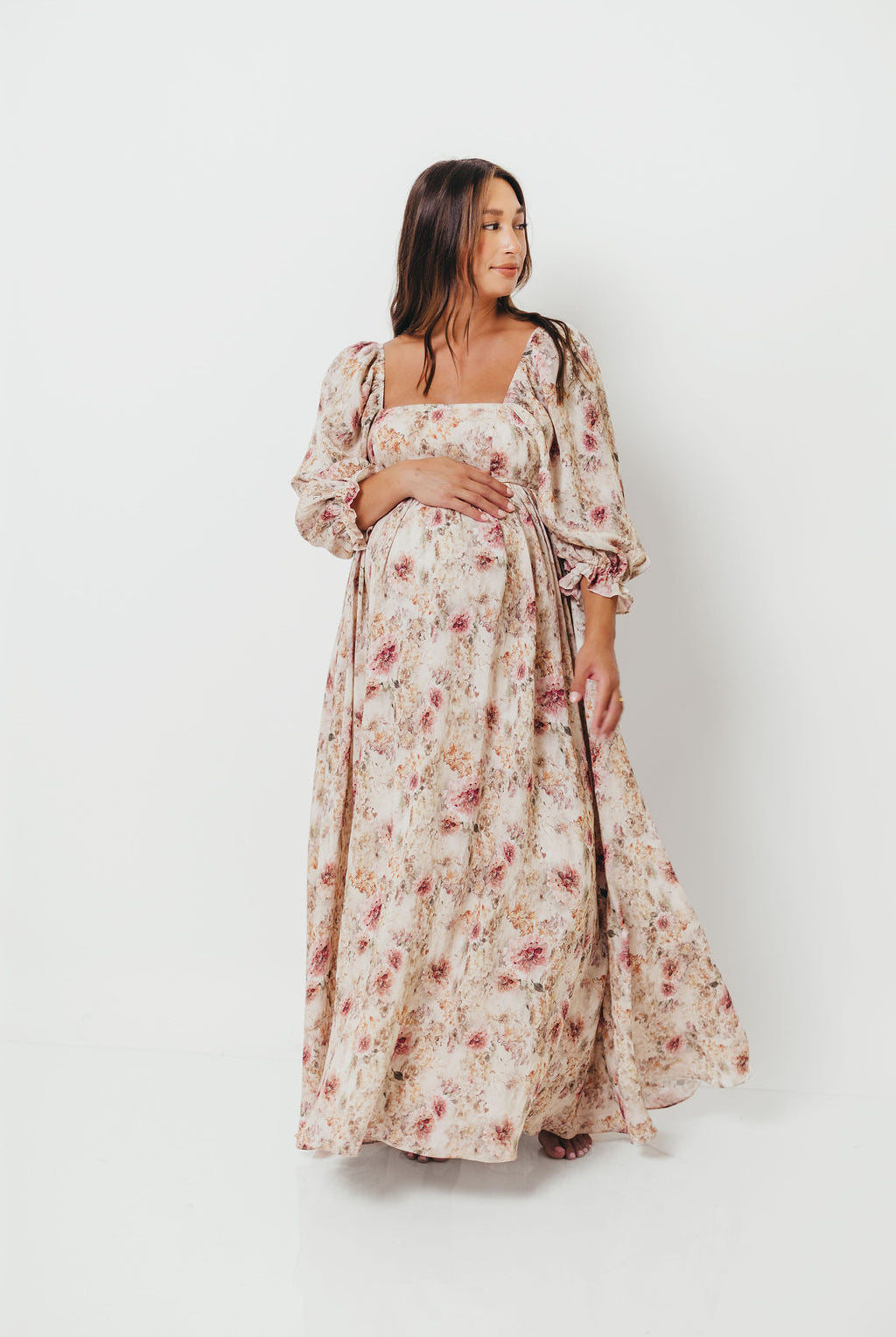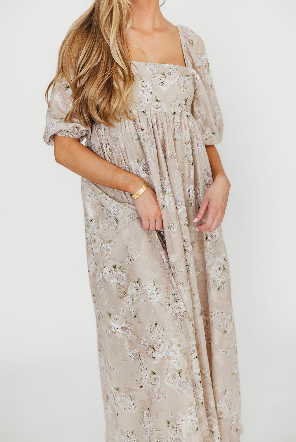 This dreamy maxi dress is pure romance; you'll practically float away in a stunning, gauzy cloud! Featuring a flattering square neckline and empire waist, it's giving elegant Bridgerton while staying fresh and charming. The Mona is a favorite with our expecting mamas, and is a perfect choice for maternity shoots or a special event brunch. Enjoy feeling like royalty!