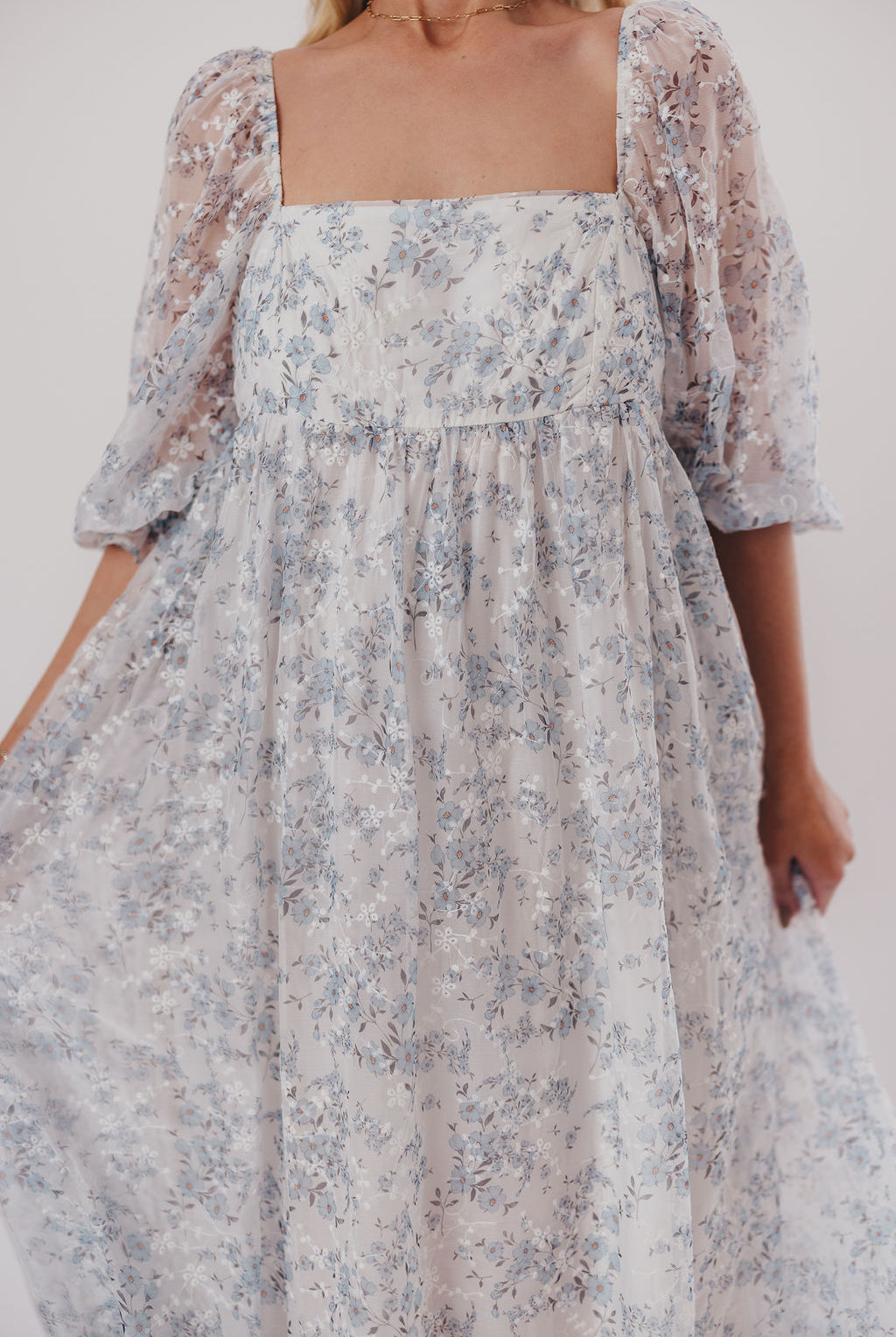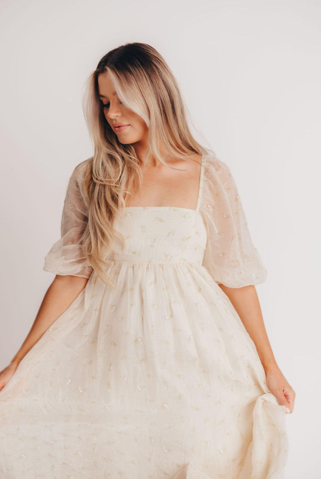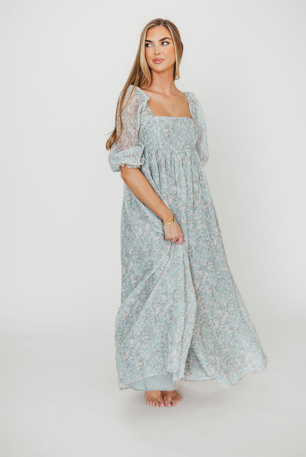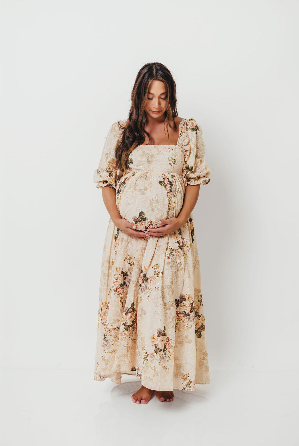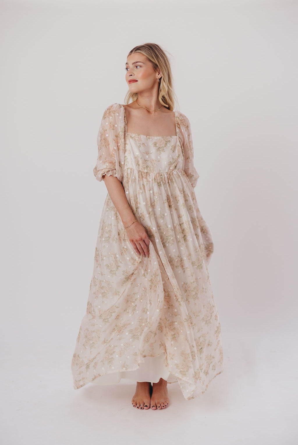 This dreamy maxi dress is pure romance; you'll practically float away in a stunning, gauzy cloud! Featuring a flattering square neckline and empire waist, it's giving elegant Bridgerton while staying fresh and charming. The Mona is a favorite with our expecting mamas, and is a perfect choice for maternity shoots or a special event brunch. Enjoy feeling like royalty!