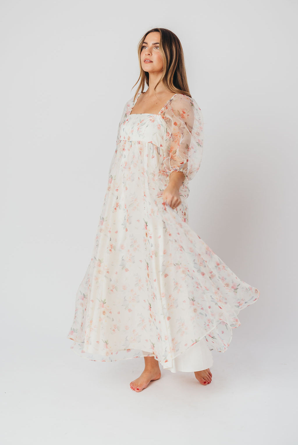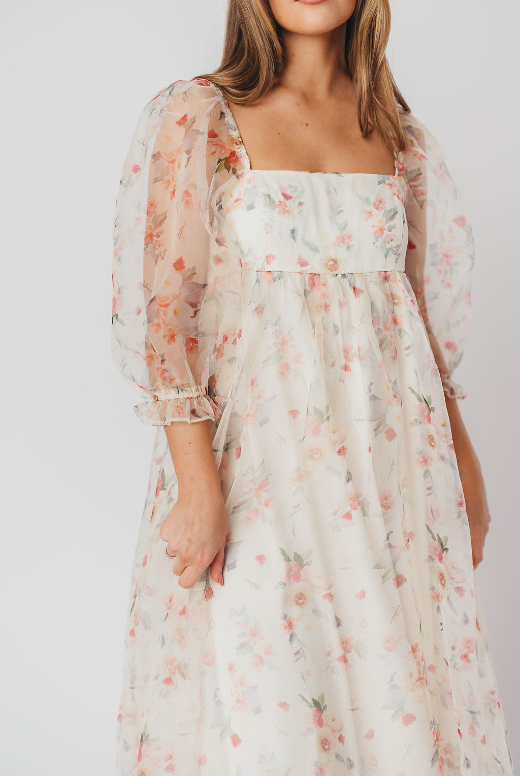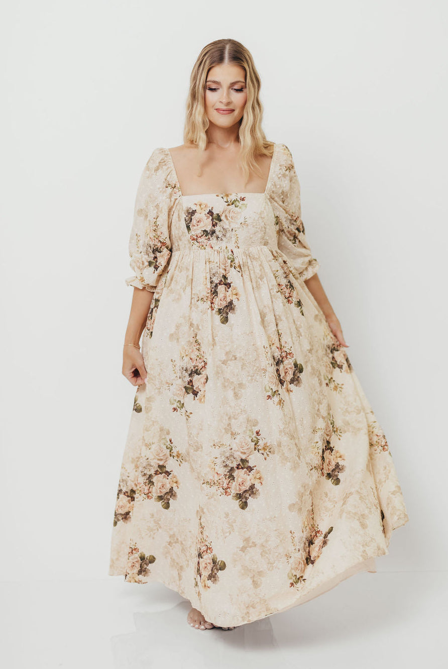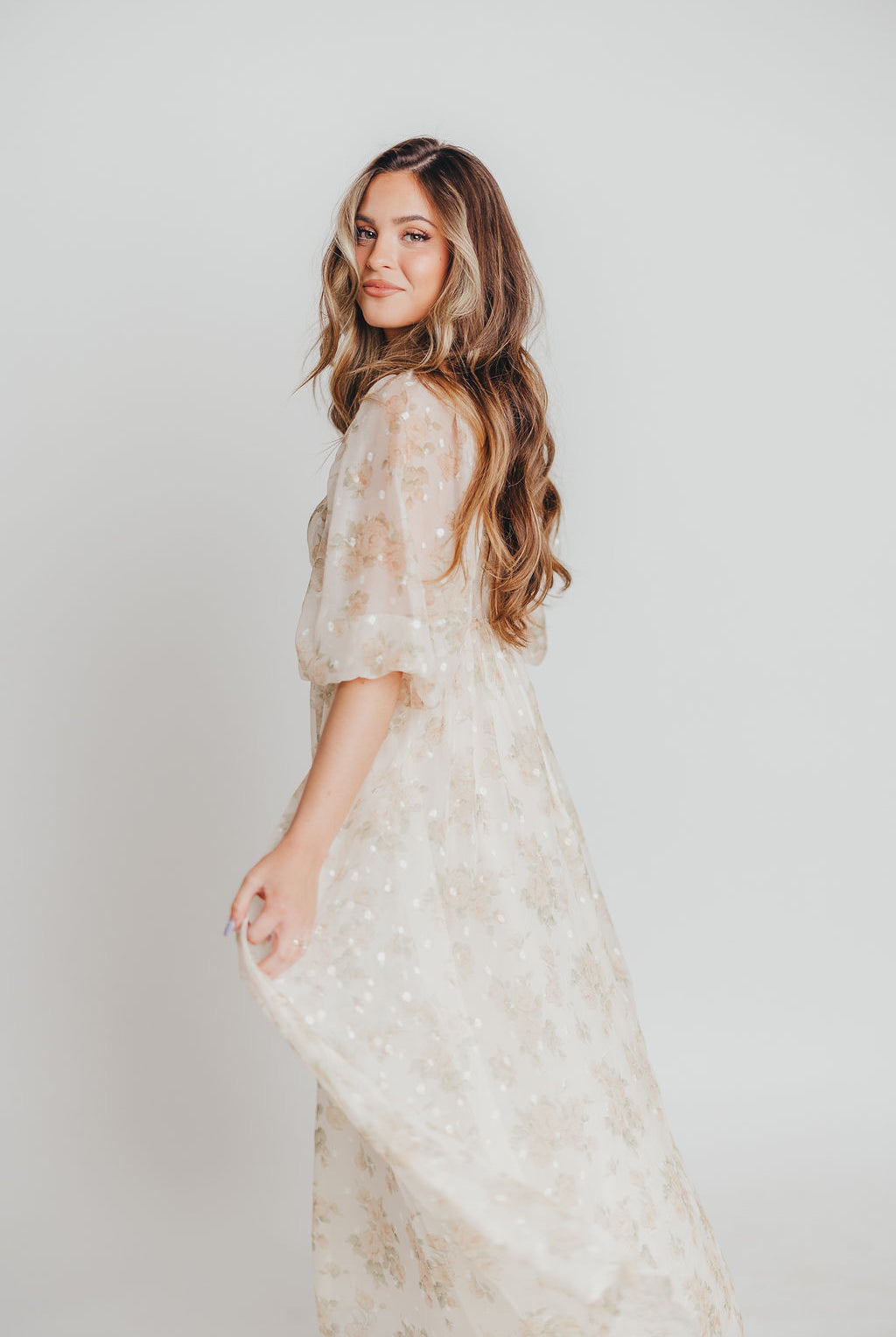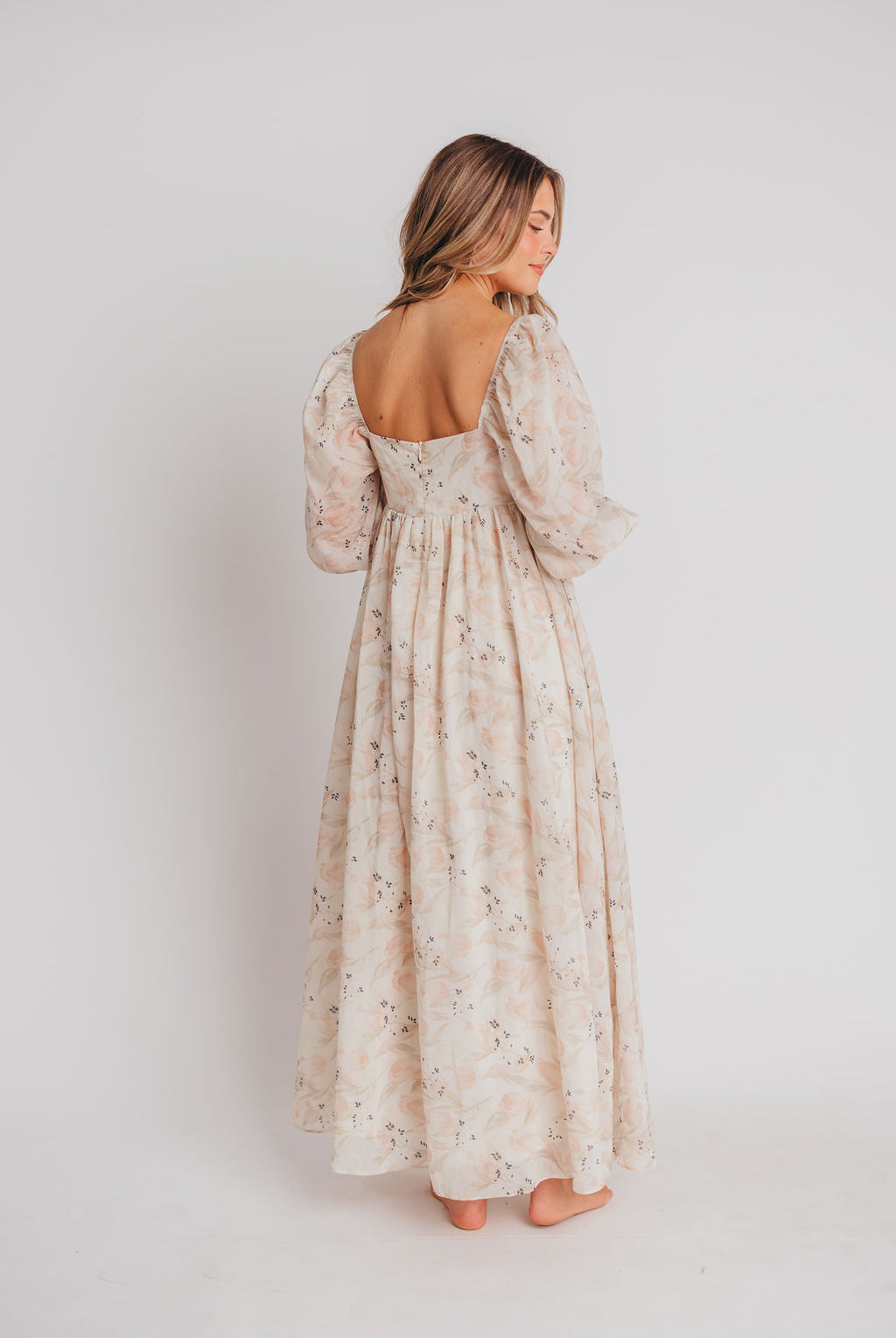 This dreamy maxi dress is pure romance; you'll practically float away in a stunning, gauzy cloud! Featuring a flattering square neckline and empire waist, it's giving elegant Bridgerton while staying fresh and charming. The Mona is a favorite with our expecting mamas, and is a perfect choice for maternity shoots or a special event brunch. Enjoy feeling like royalty!