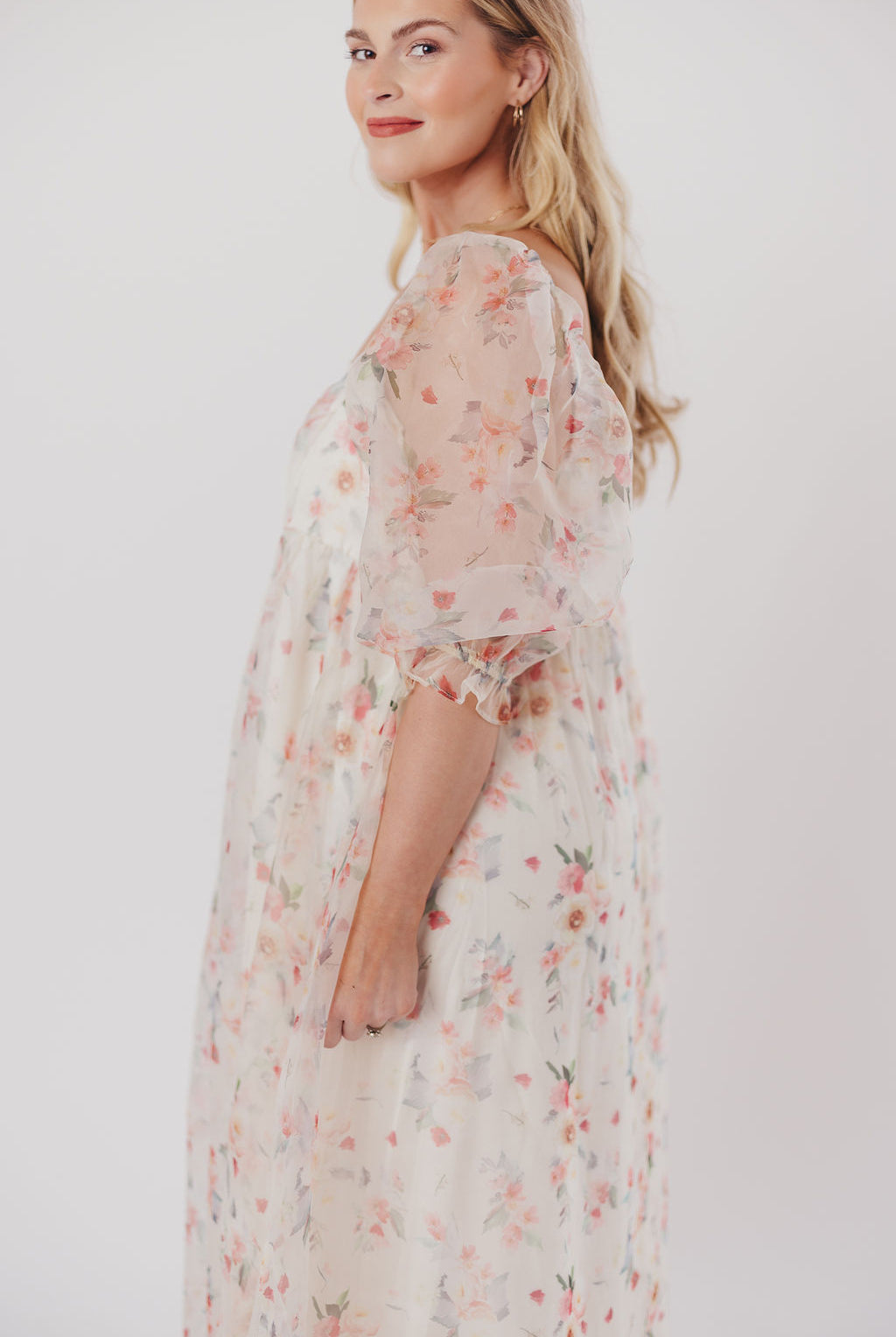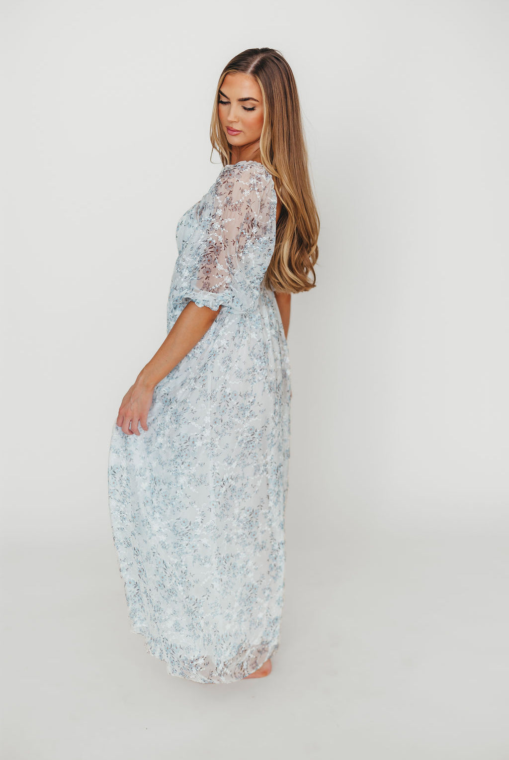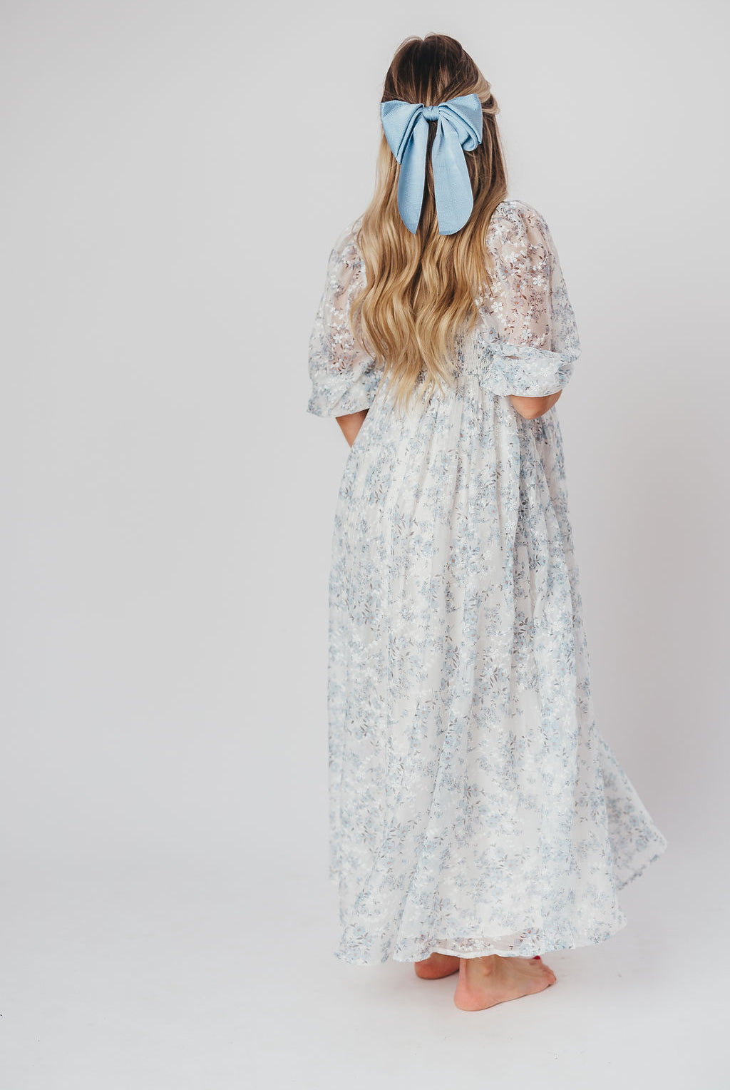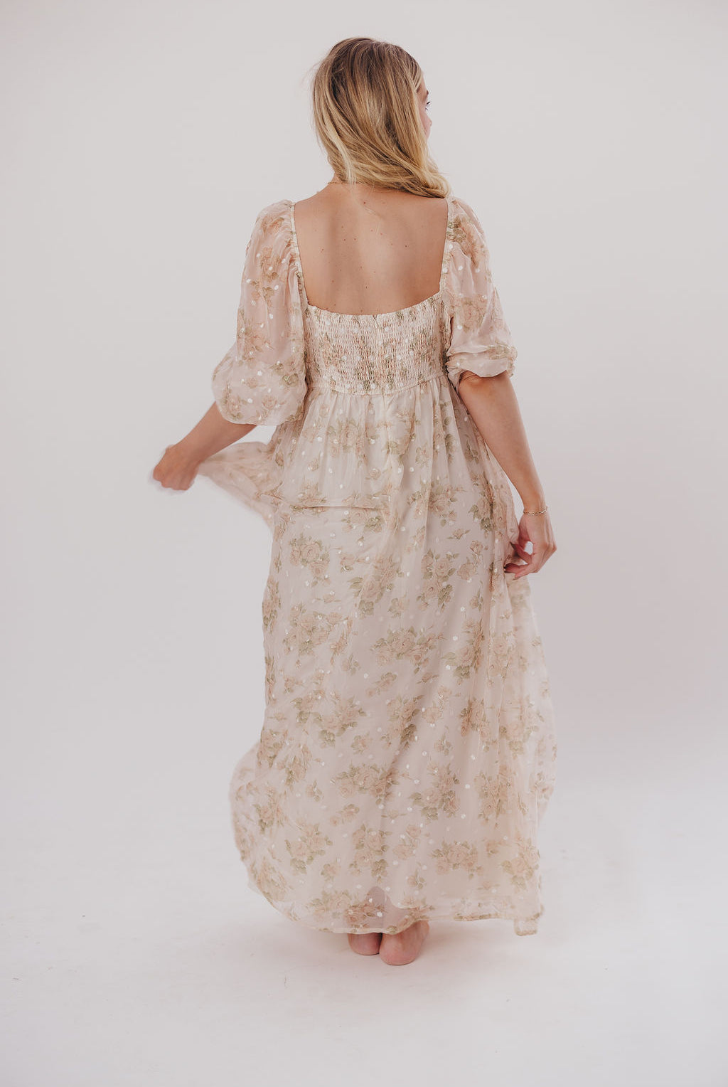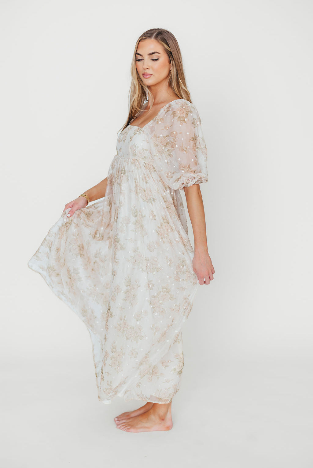 This dreamy maxi dress is pure romance; you'll practically float away in a stunning, gauzy cloud! Featuring a flattering square neckline and empire waist, it's giving elegant Bridgerton while staying fresh and charming. The Mona is a favorite with our expecting mamas, and is a perfect choice for maternity shoots or a special event brunch. Enjoy feeling like royalty!
