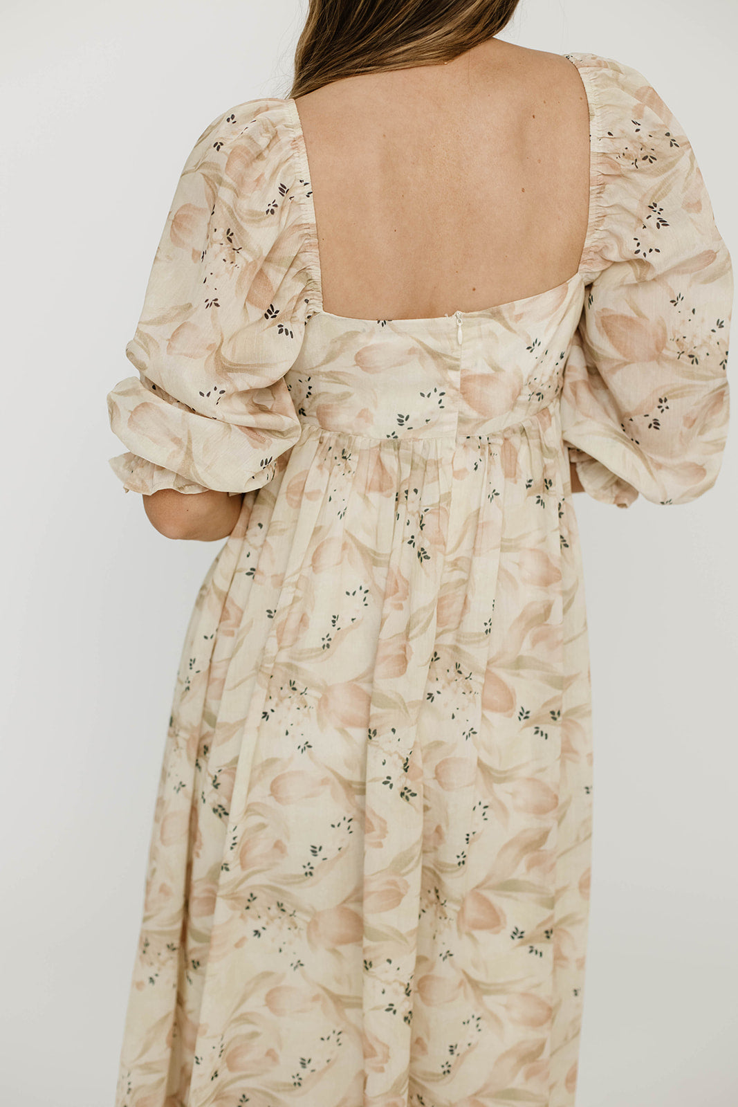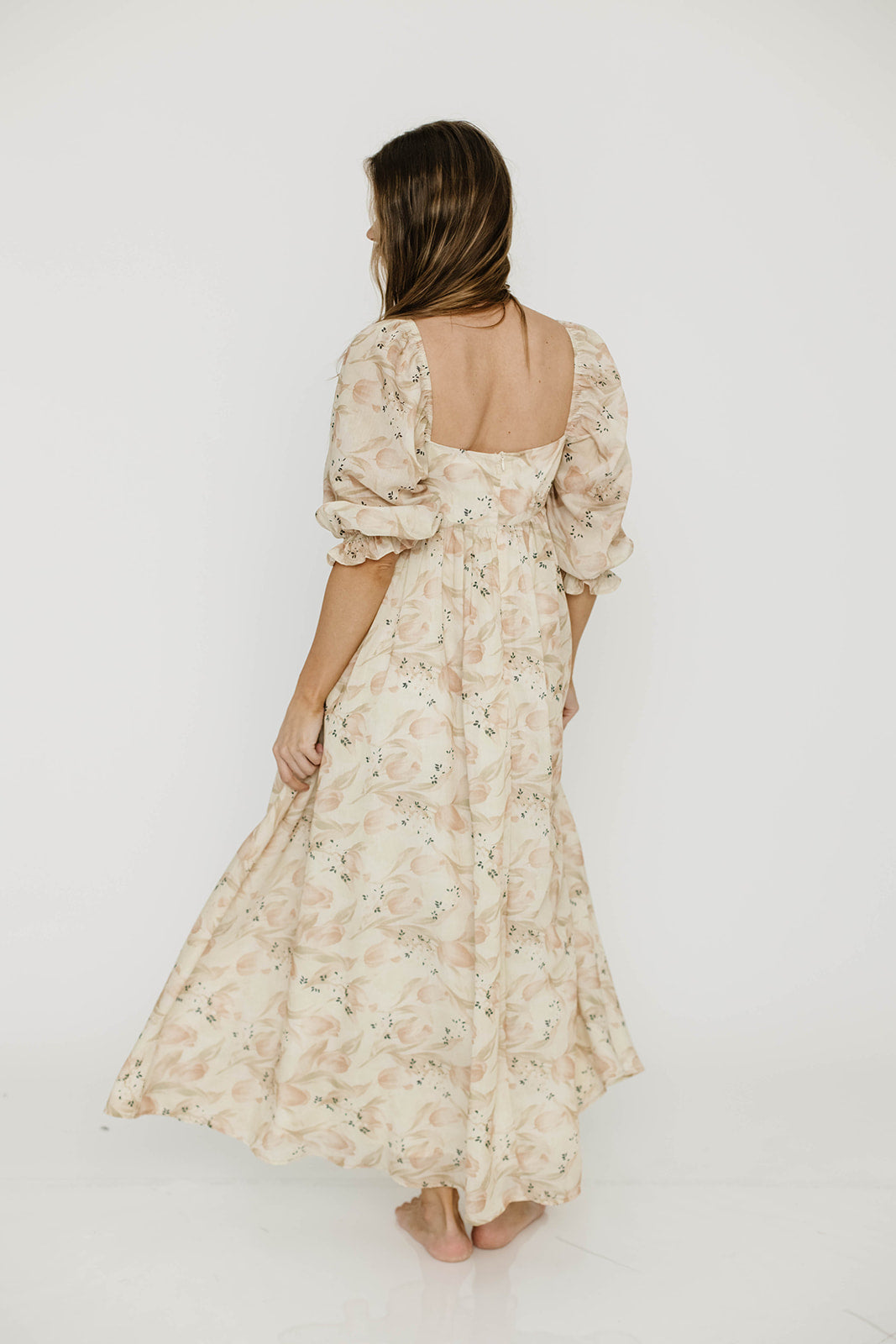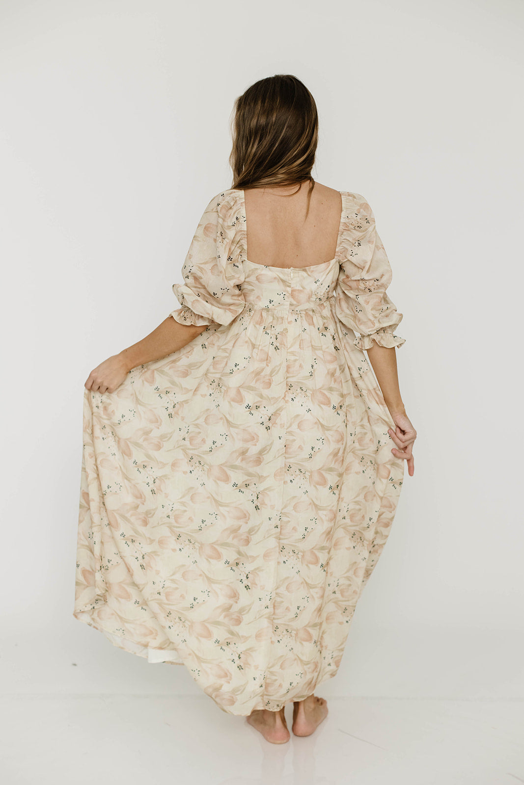 Mona Maxi Dress in Beige/Brown Floral - Bump Friendly