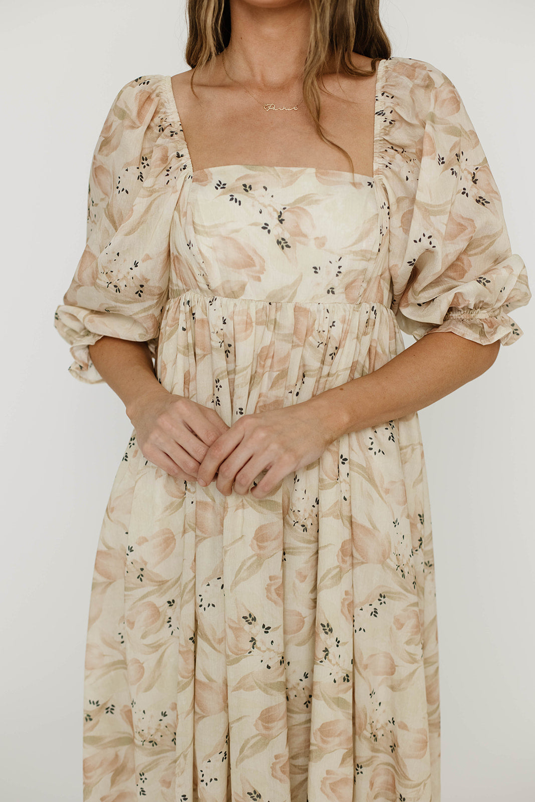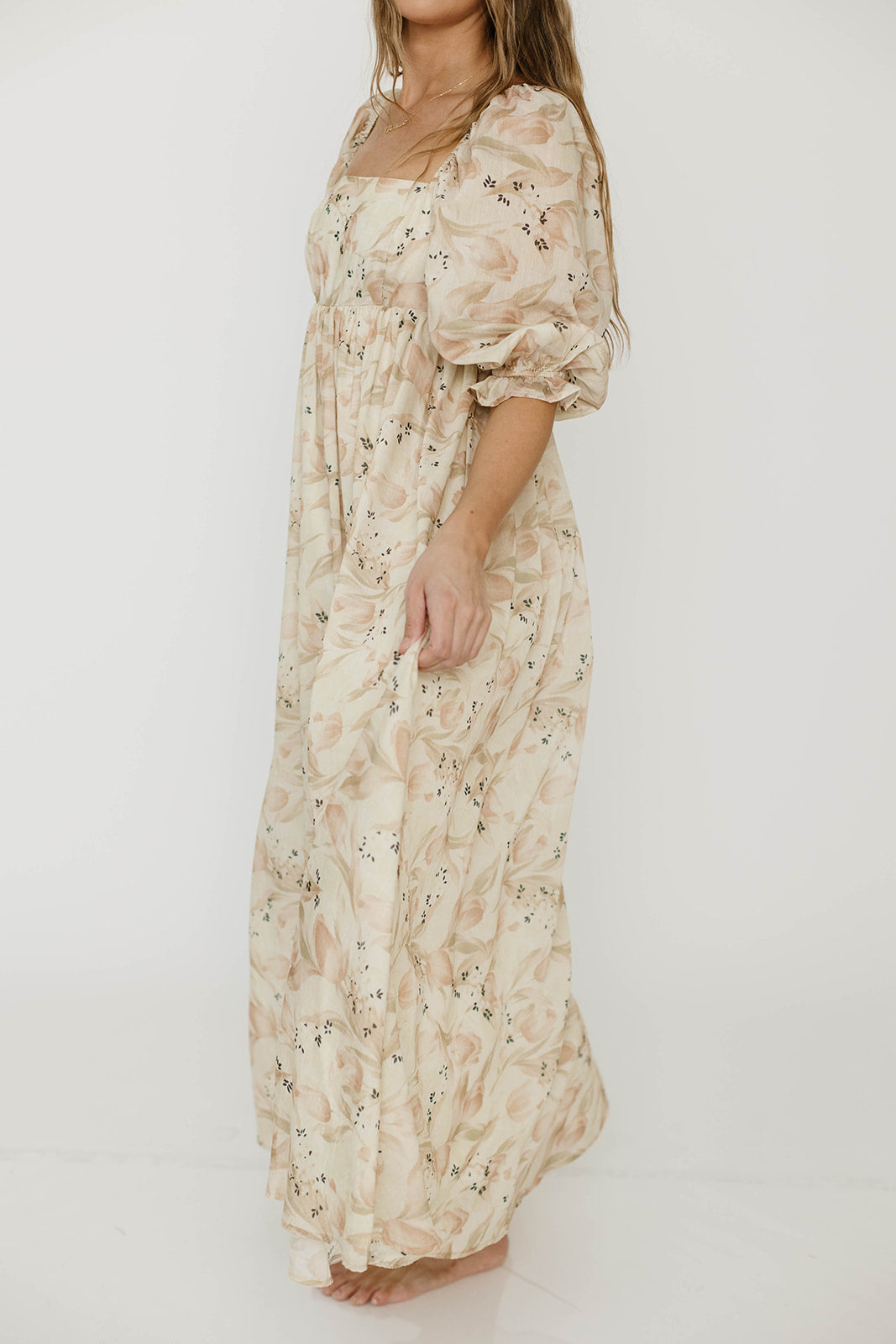Mona Maxi Dress in Peach & Cream Floral - Bump Friendly (Bust Runs a Bit Small / No Smocking)