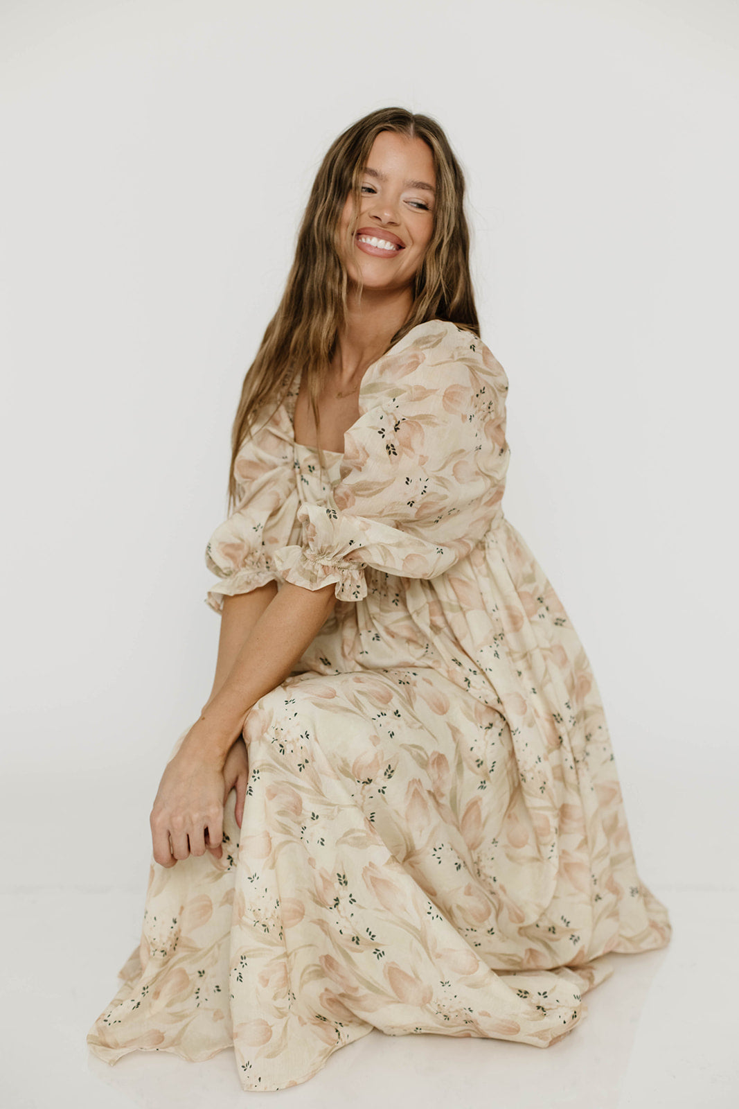 Mona Maxi Dress with Smocking in Cream Floral - Bump Friendly & Inclusive Sizing (S-3XL)