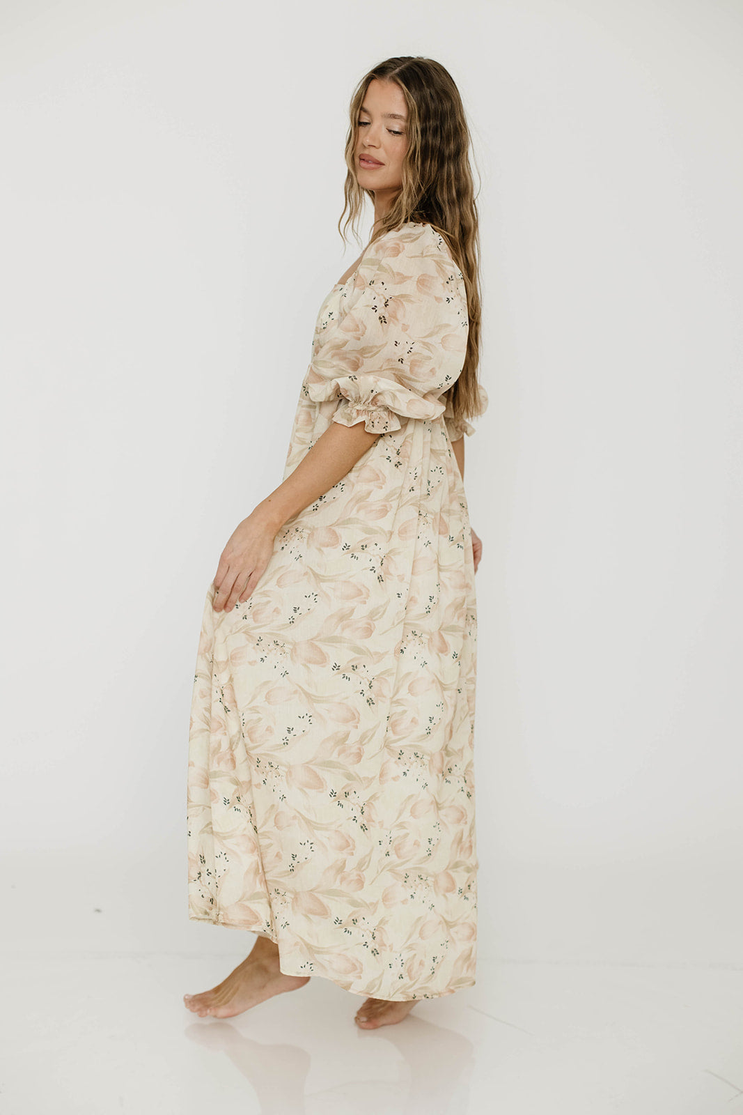 Mona Maxi Dress in Peach & Cream Floral - Bump Friendly (Bust Runs a Bit Small / No Smocking)