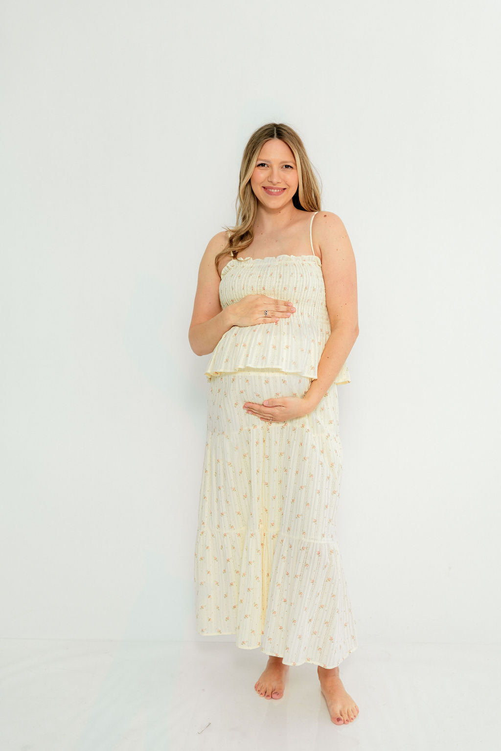 Alexis Floral Midi Dress in Butter Cream - Bump Friendly