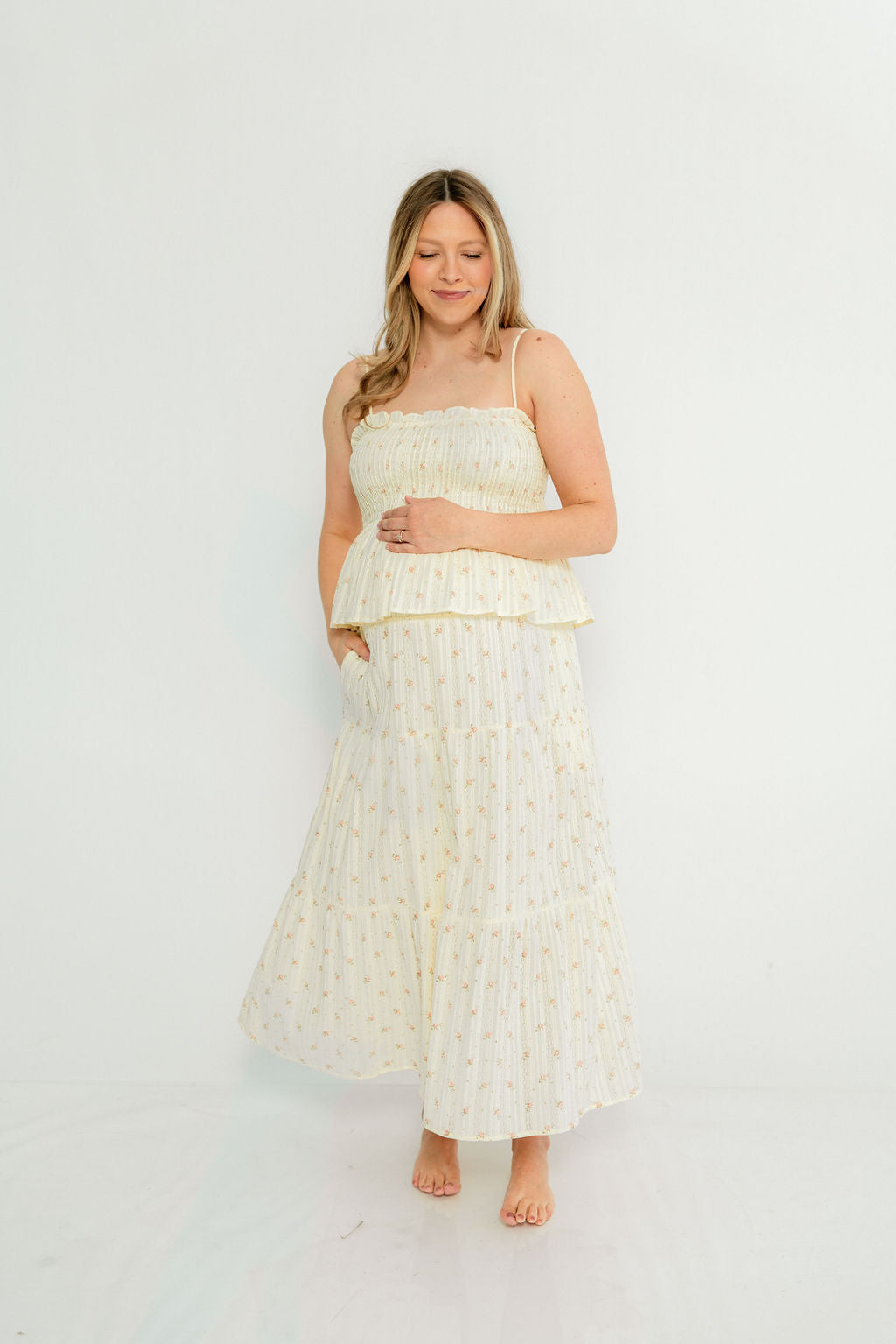 Sawyer Vest Tank and Maxi Skirt Set in Cream Floral *Final-Sale*