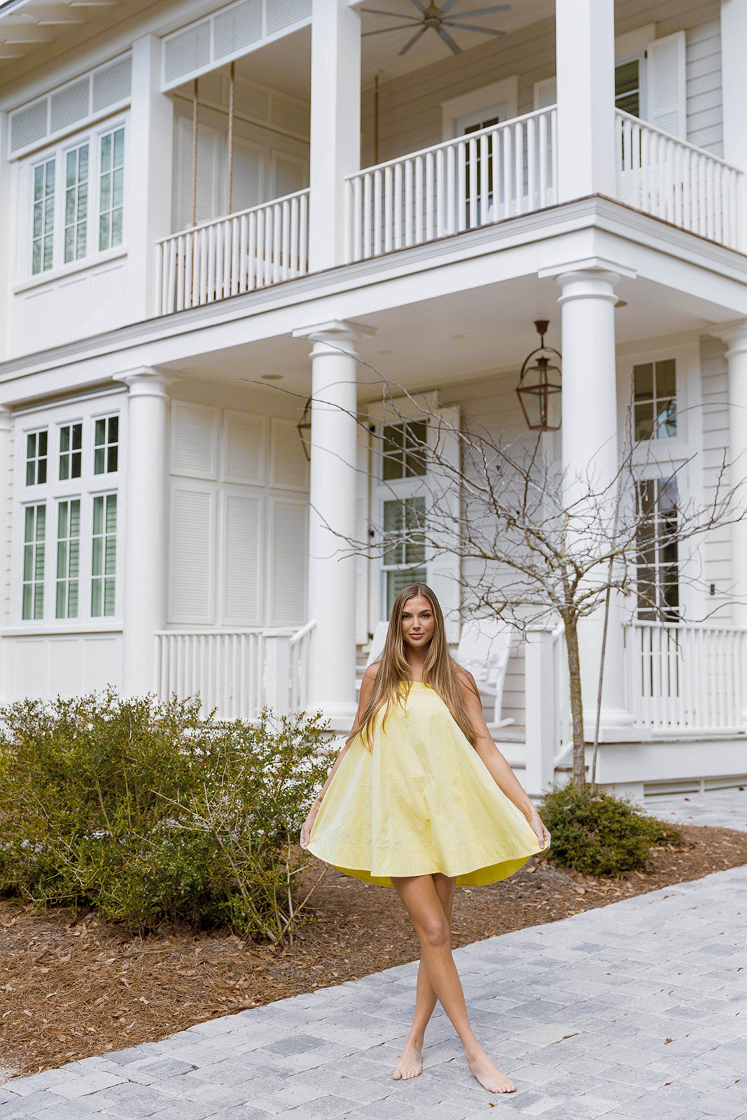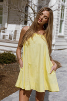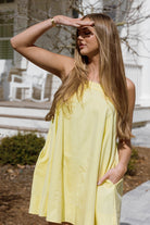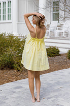 The Mari Mini Dress is all sunshine and lemondrops! This lightweight cotton poplin dress features a flattering babydoll silhouette, with adjustable tie straps and handy side pockets; it's an effortless choice for any day of the week.