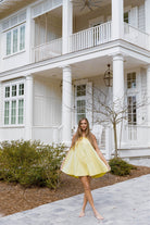 Mari Contrast Top Stitch Mini Dress in Lemon Yellow