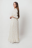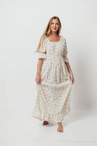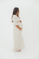 Sienna 100% Cotton Puff Sleeve Maxi Dress in Cream - Bump Friendly