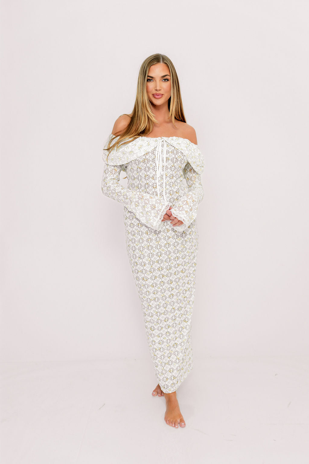 Ella Lace Maxi Dress in Tiny Yellow Floral Print *3/3 PRE-ORDER*