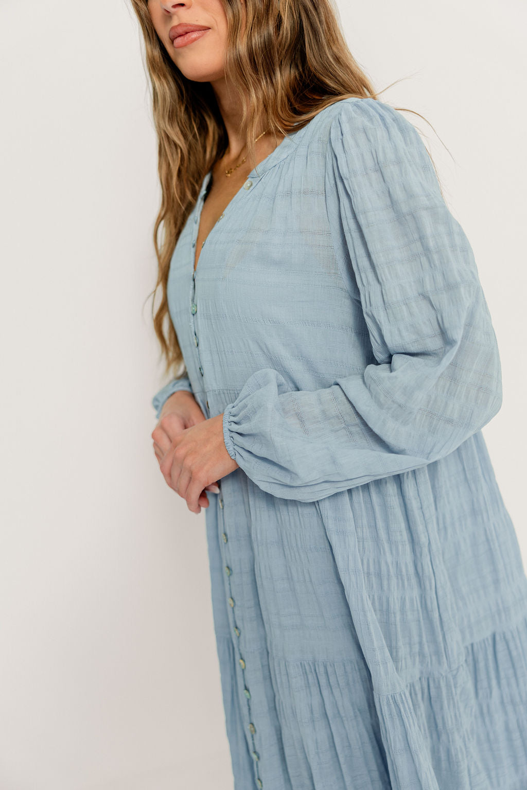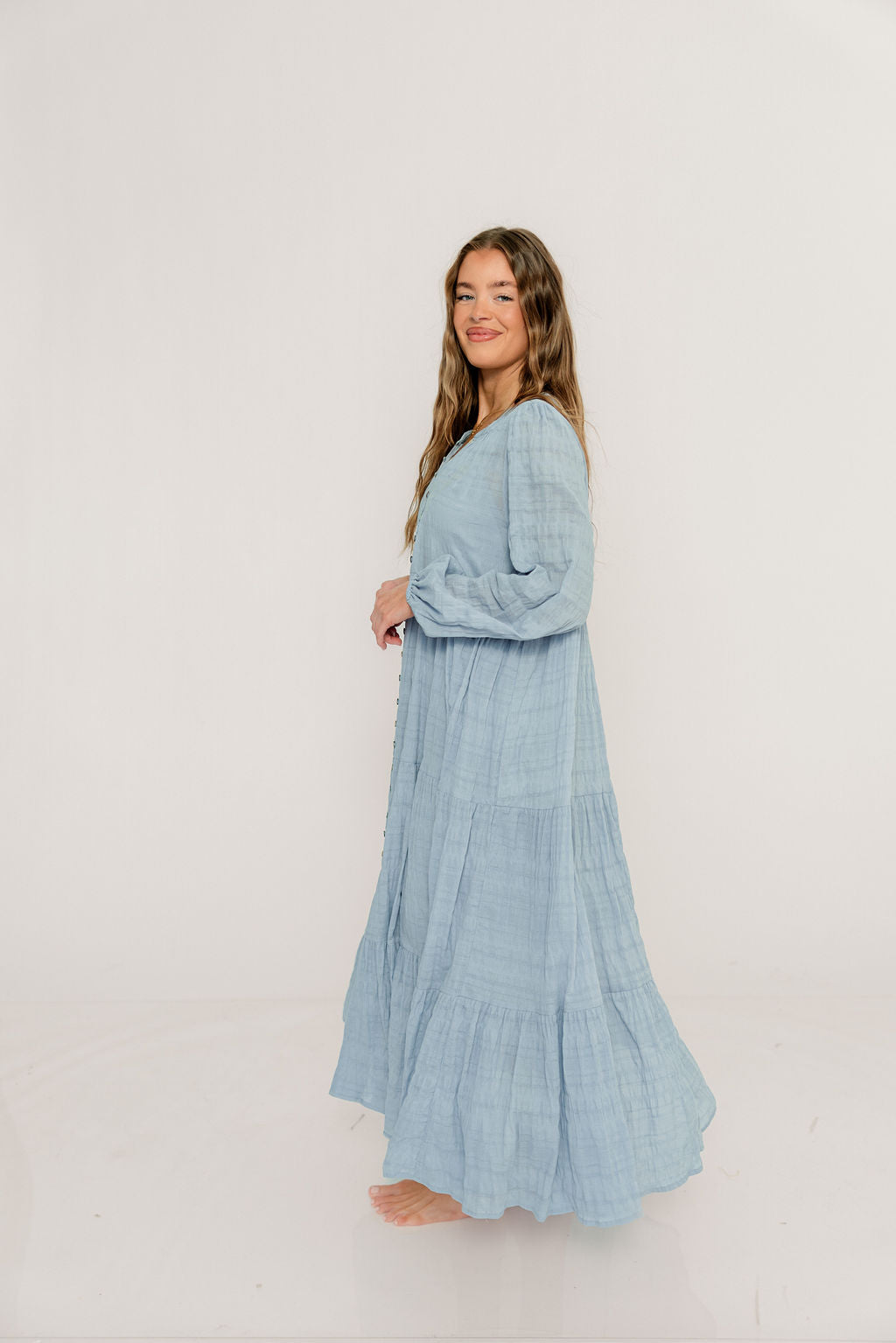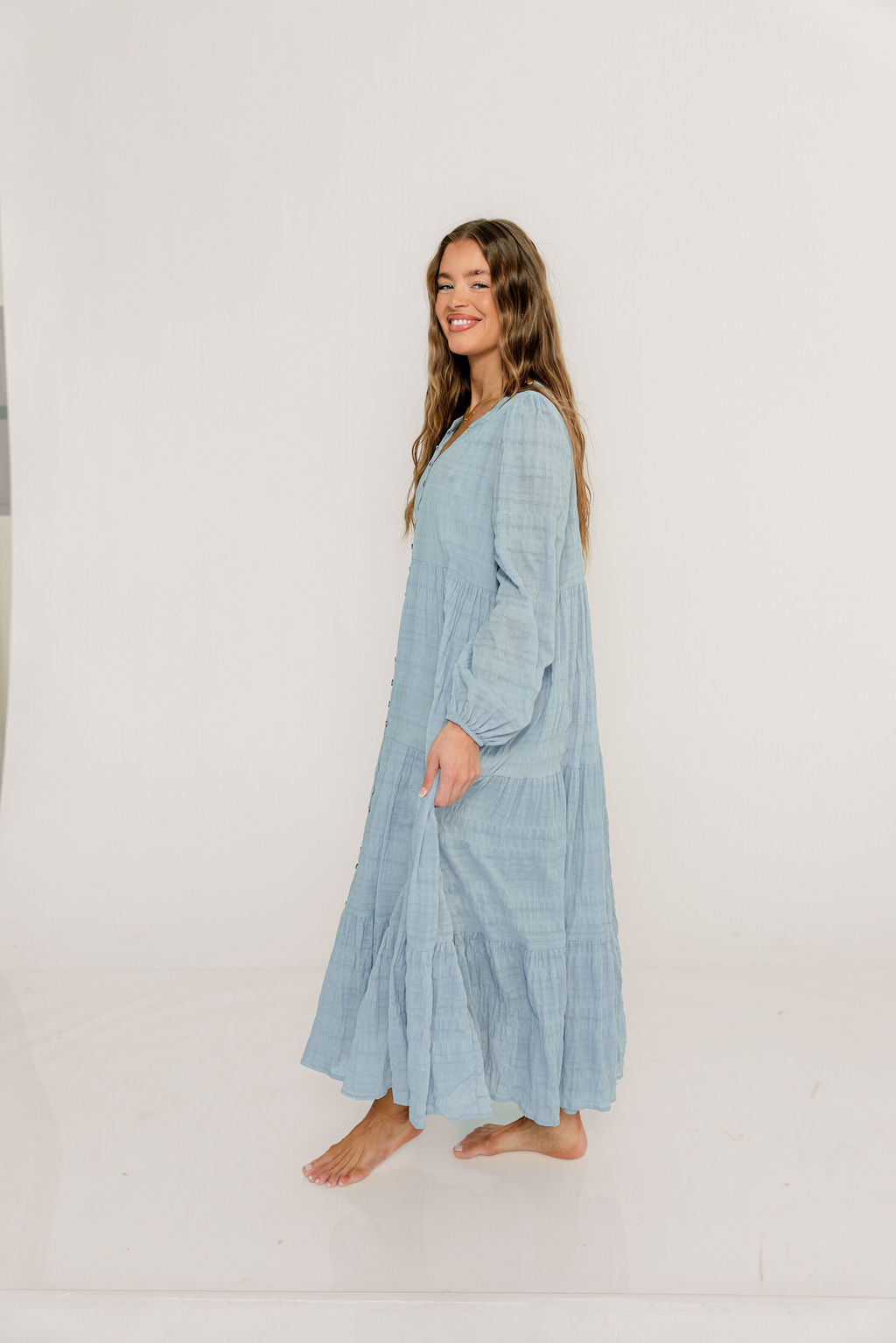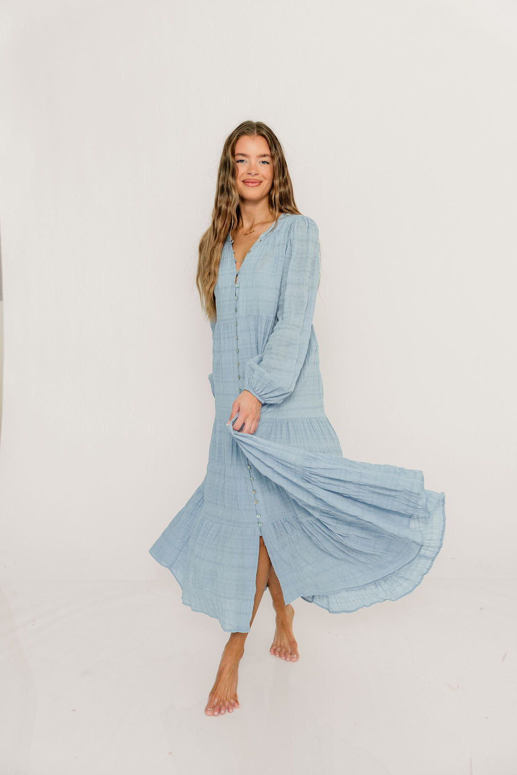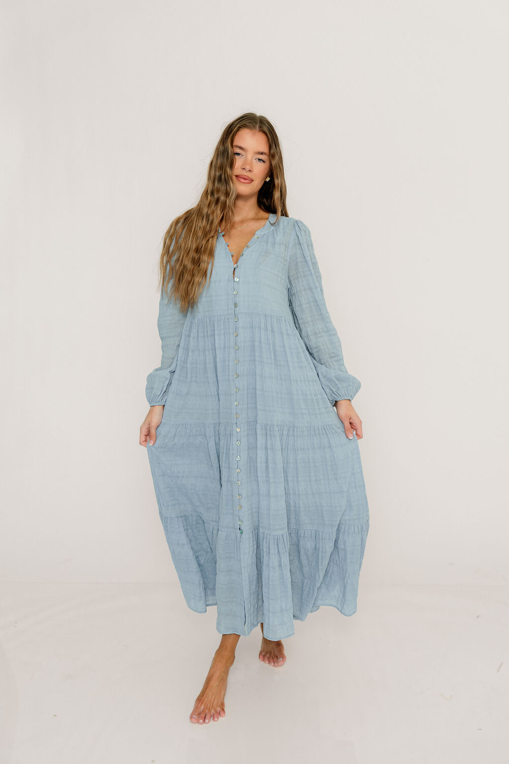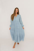Anna Cotton Blend Button Down Maxi Dress in Baby Blue - Bump Friendly *2/5 PRE-ORDER*