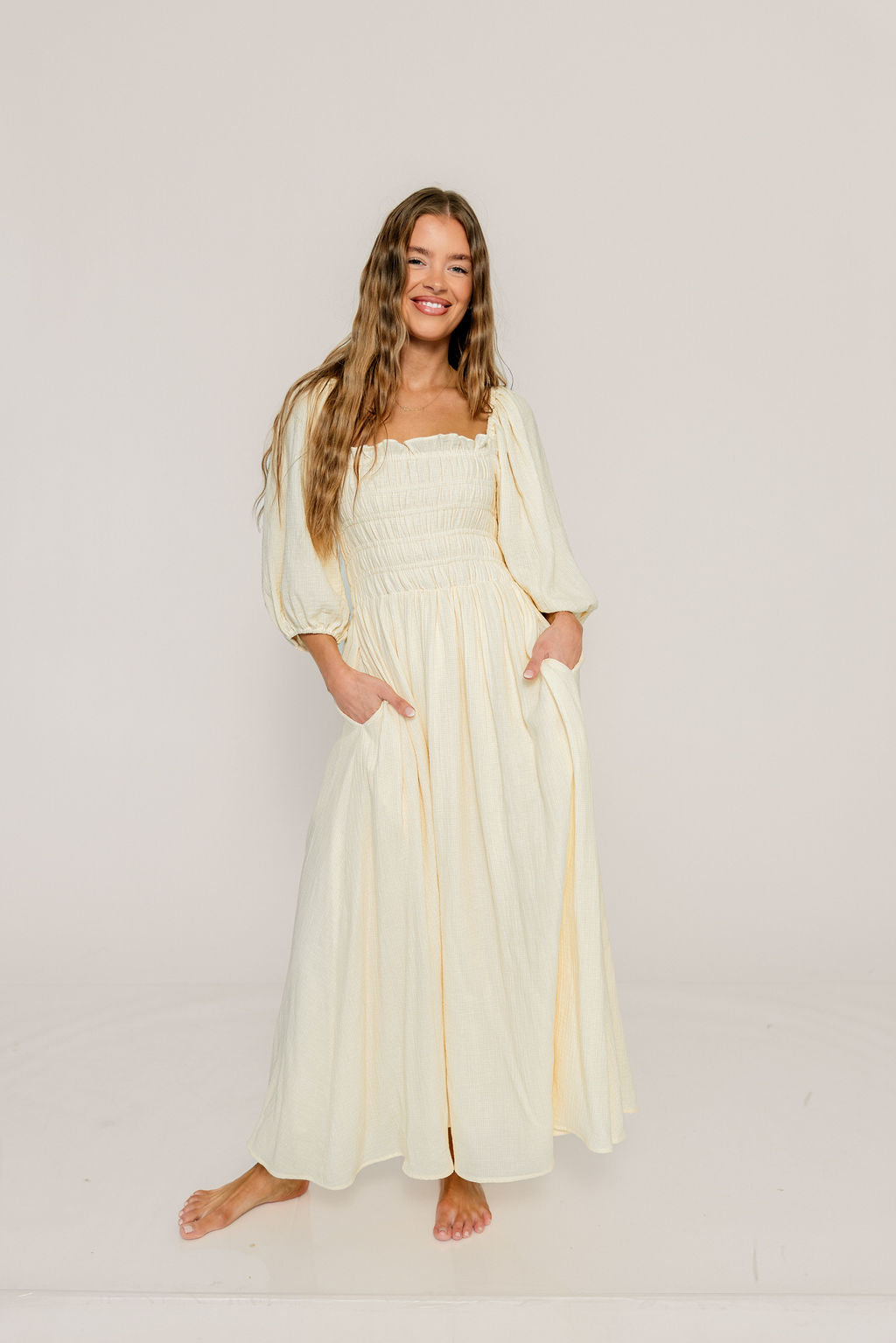 Meet the Hayes Maxi Dress, a sumptuously soft gown that's gorgeous for special events but comfortable enough for elevated daily wear. With its statement balloon sleeves, smocked bodice, and practical side pockets, this dress checks all the boxes for a charming outfit.