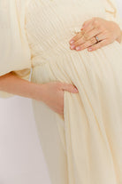 FIT: Runs true to size. This gown will fit mid-to-late maternity in your true size. Please review the size chart when ordering.