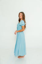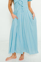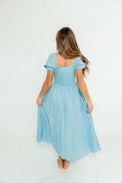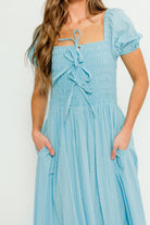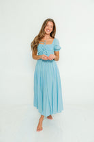 Arabelle Smocked Bow Detail Maxi Dress in Blue Aura