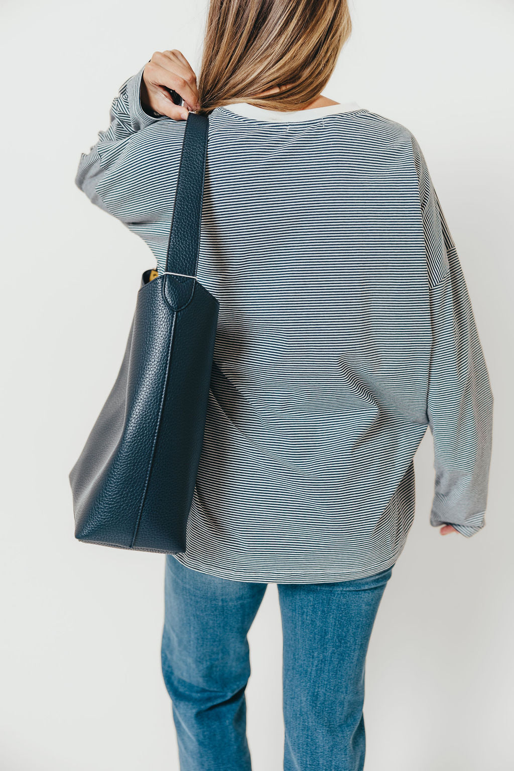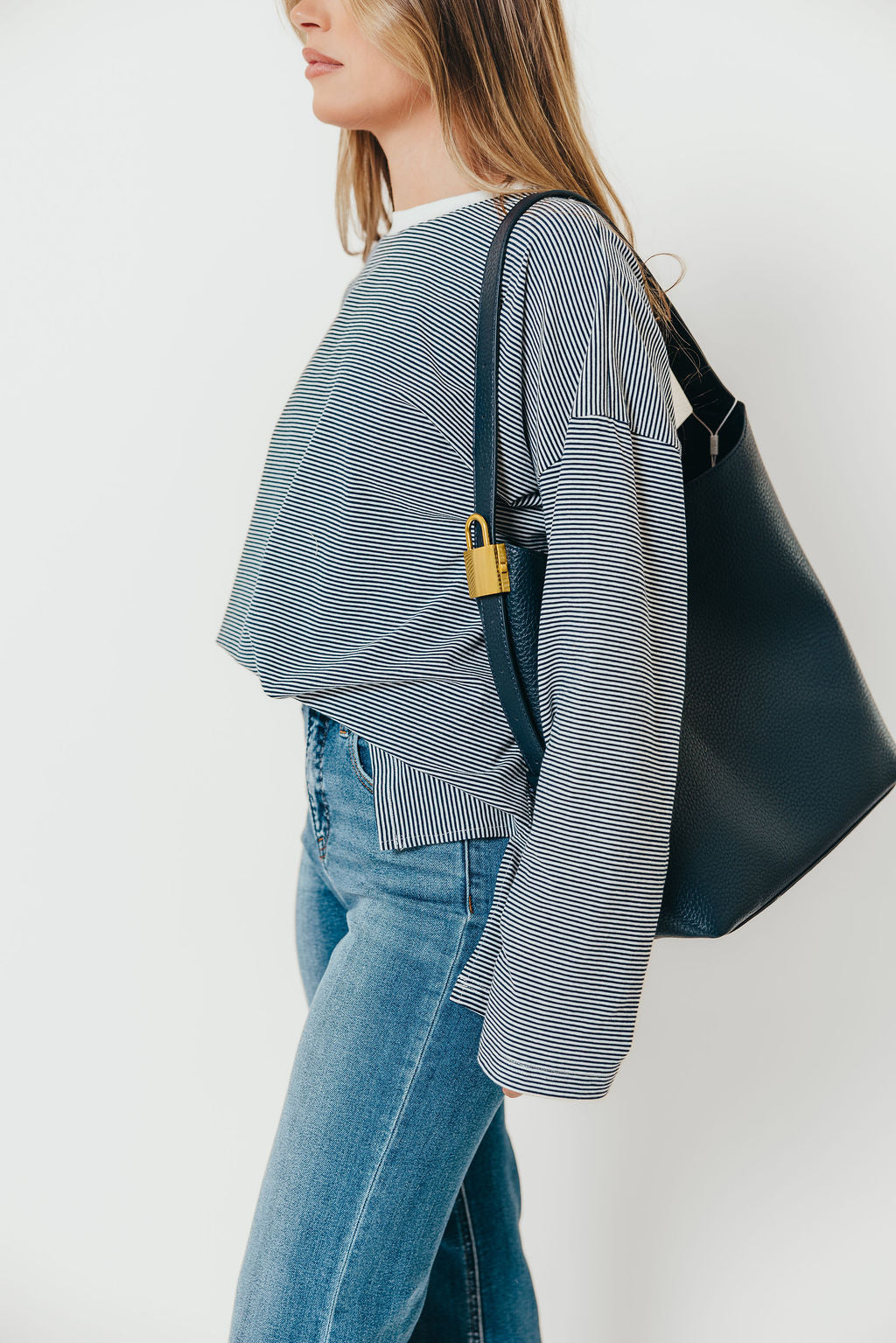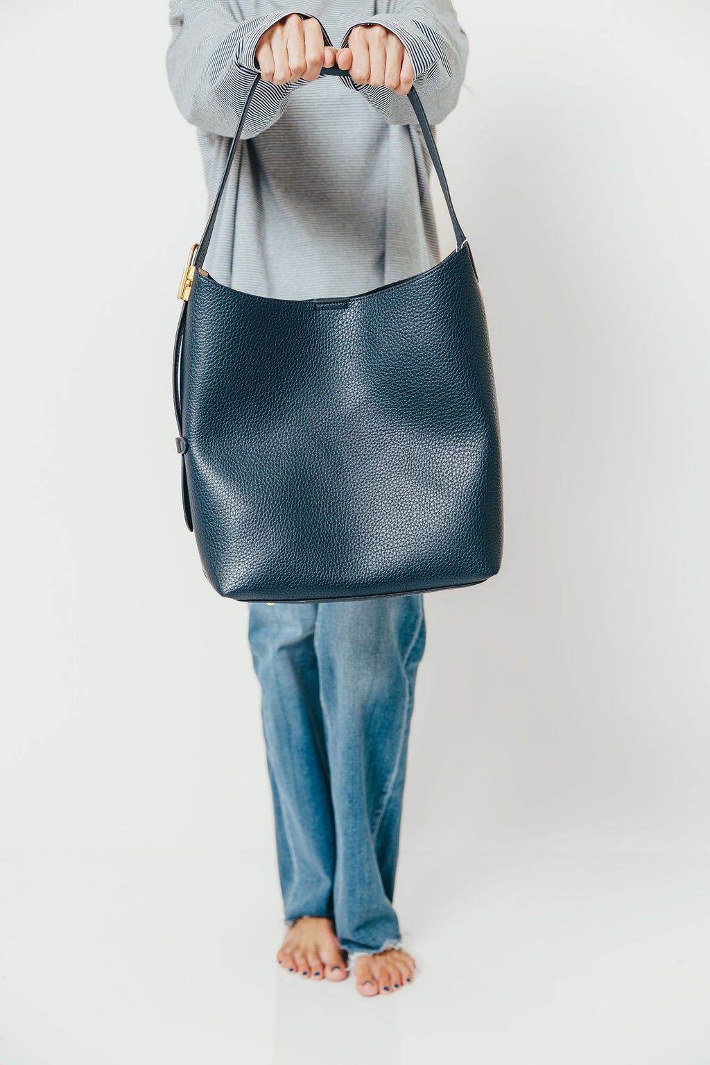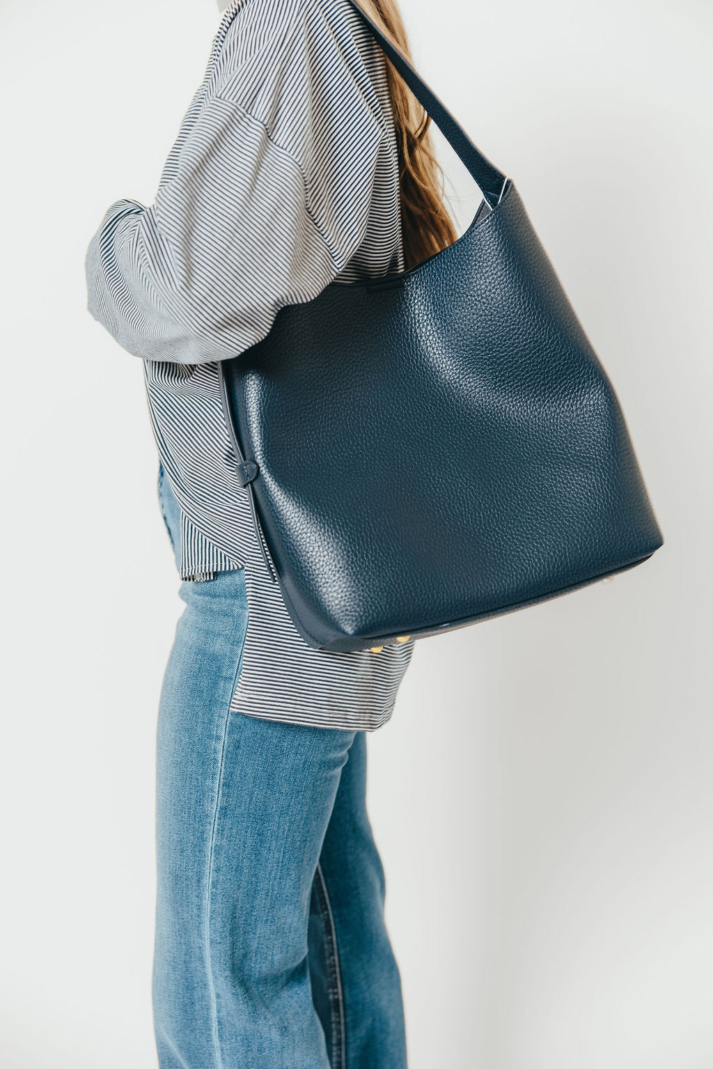 Effortless elegance meets practical design in this chic hobo bag. With a textured exterior and refined silhouette, this is a go-to accessory for both work and weekends. Designed with an interior pouch for seamless organization, this bag effortlessly holds your essentials while offering a polished finish. Invest in a piece that aligns with your values while elevating your wardrobe.