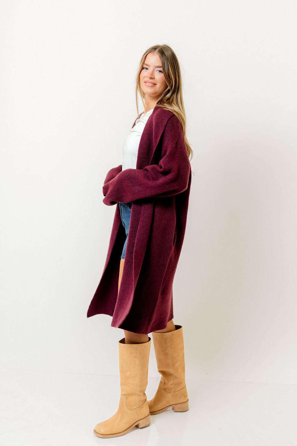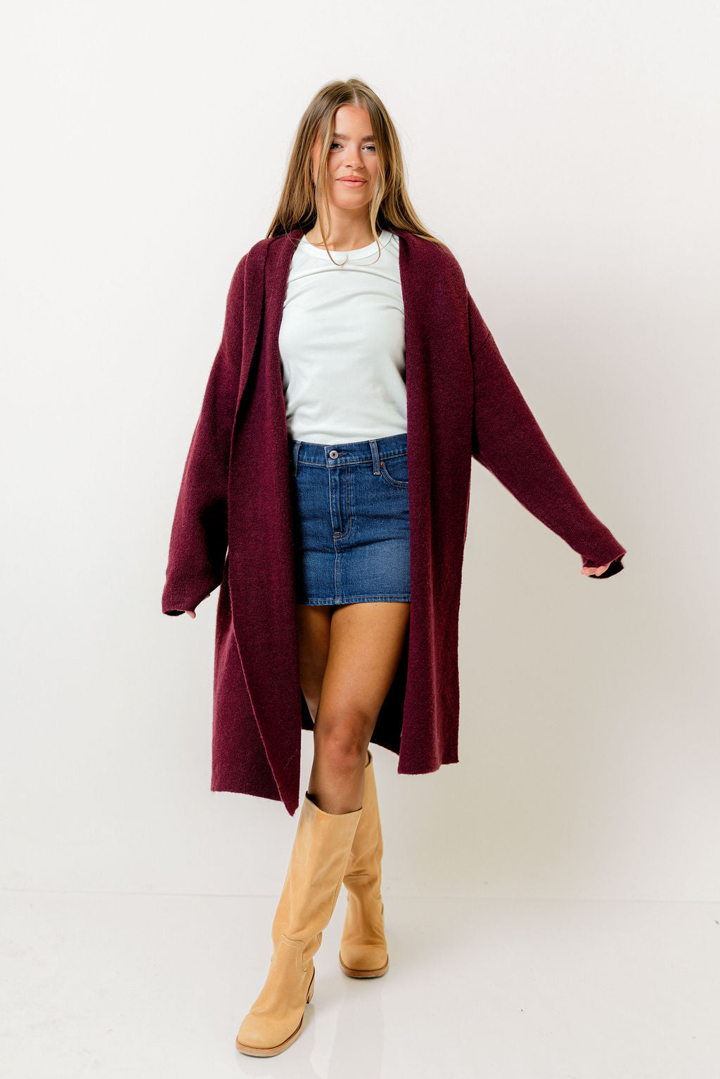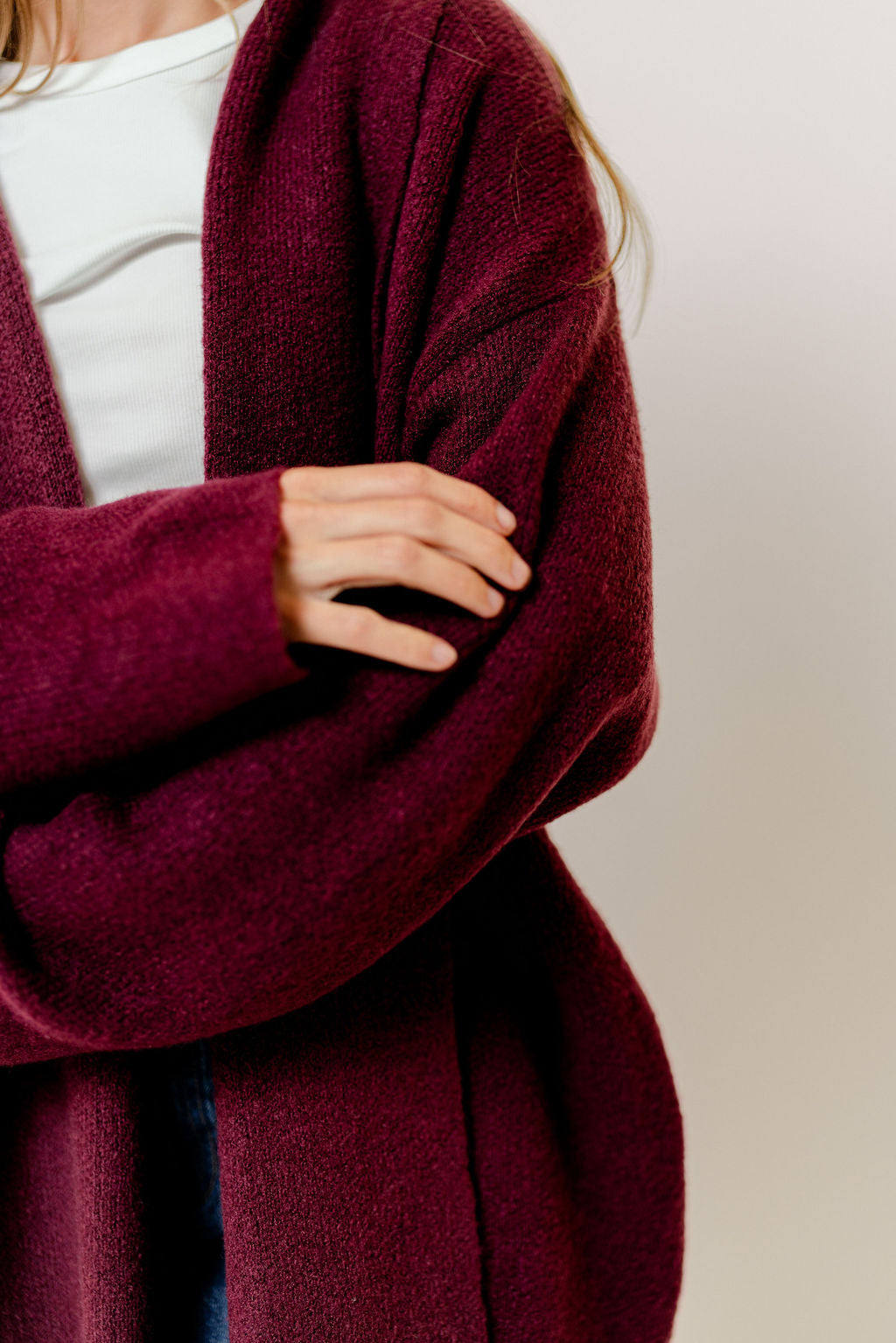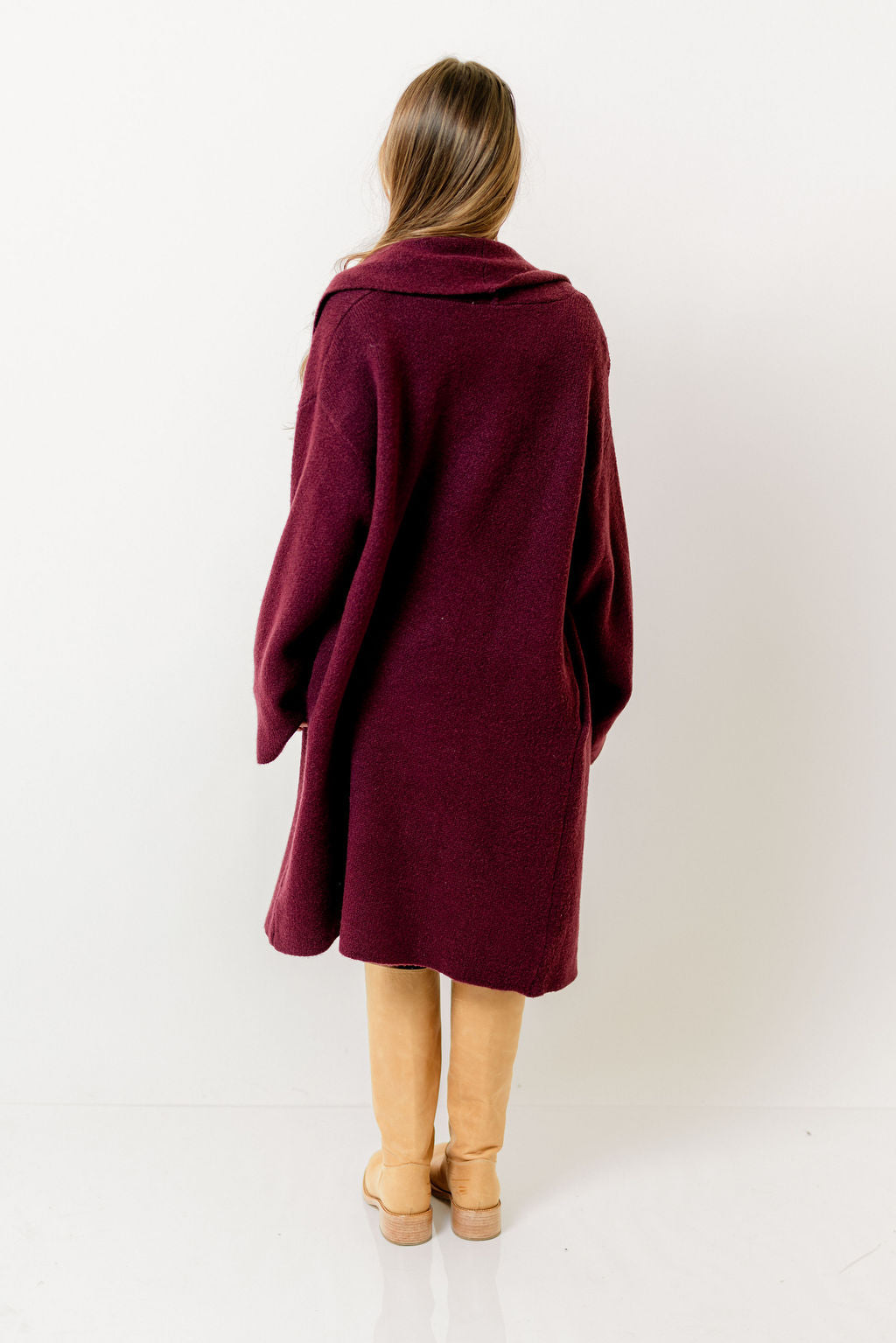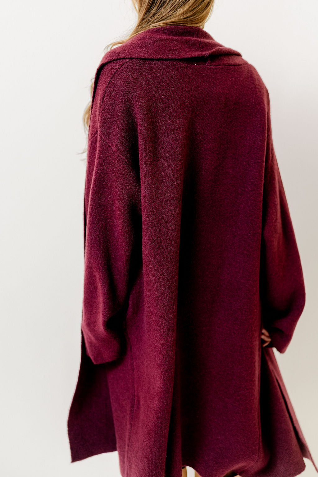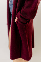 Misha Longline Open Front Duster Sweater in Dark Cherry