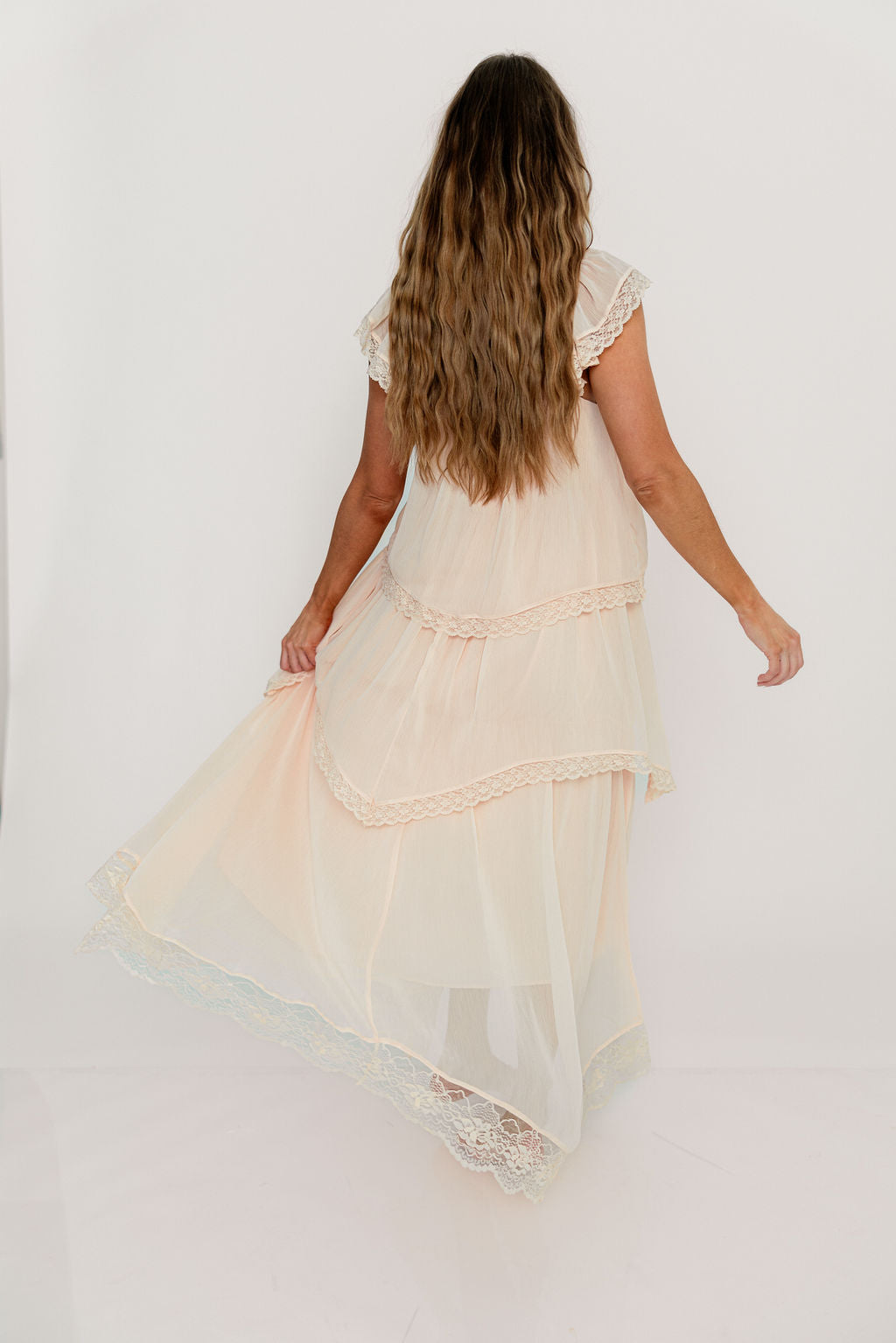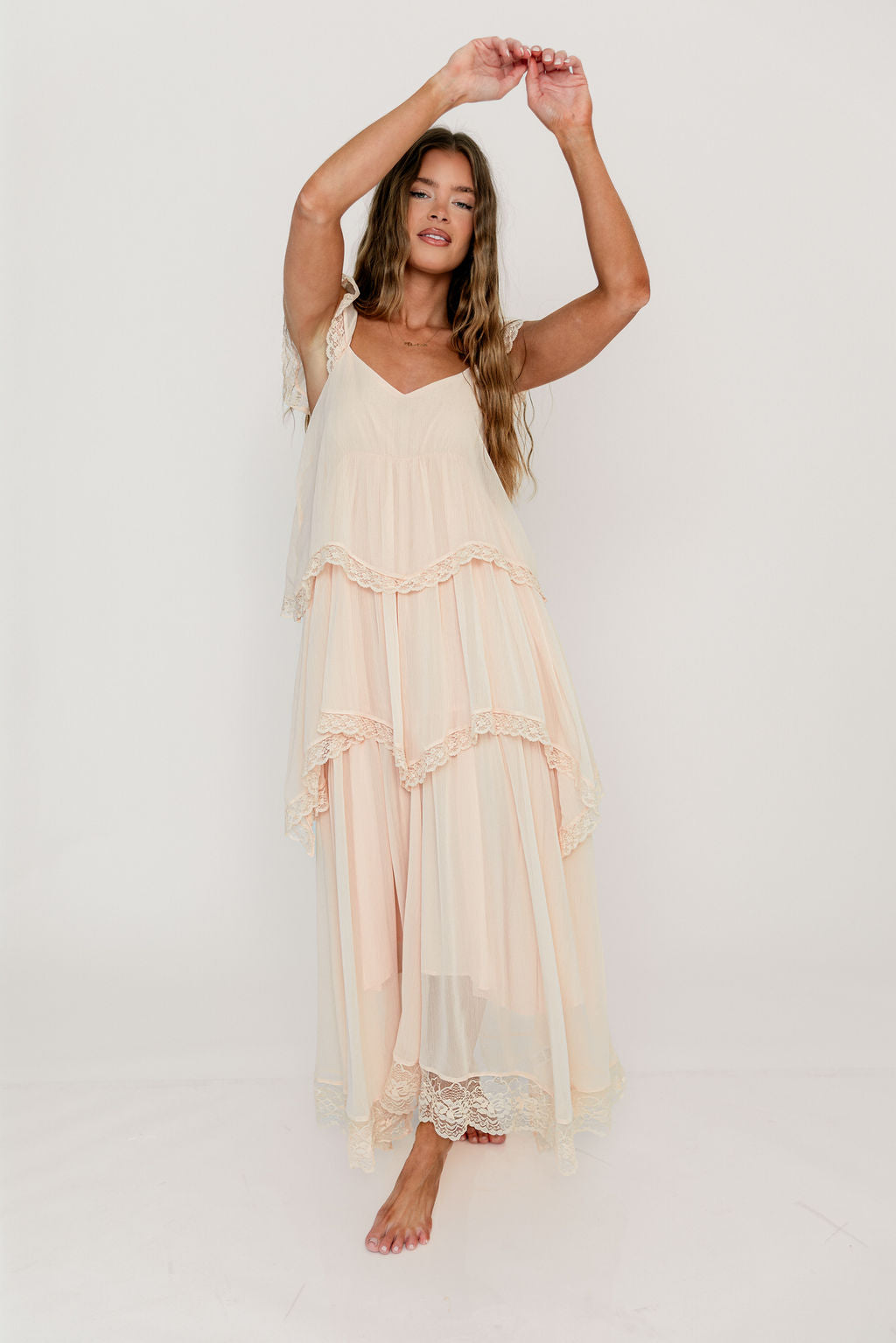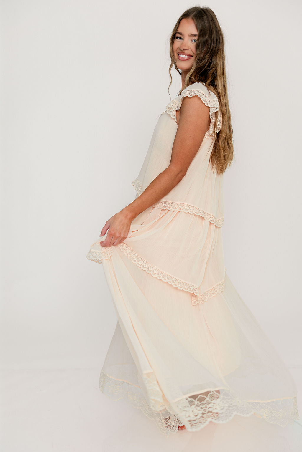 Meet the romantic new Nicola Maxi Dress, a darling addition to the Dress Shoppe (and to your closet!). This lightweight gown is stunning in its simplicity, with a waterfall tiered design and lace trim that makes every movement graceful. It's charming, feminine, and entirely picturesque.