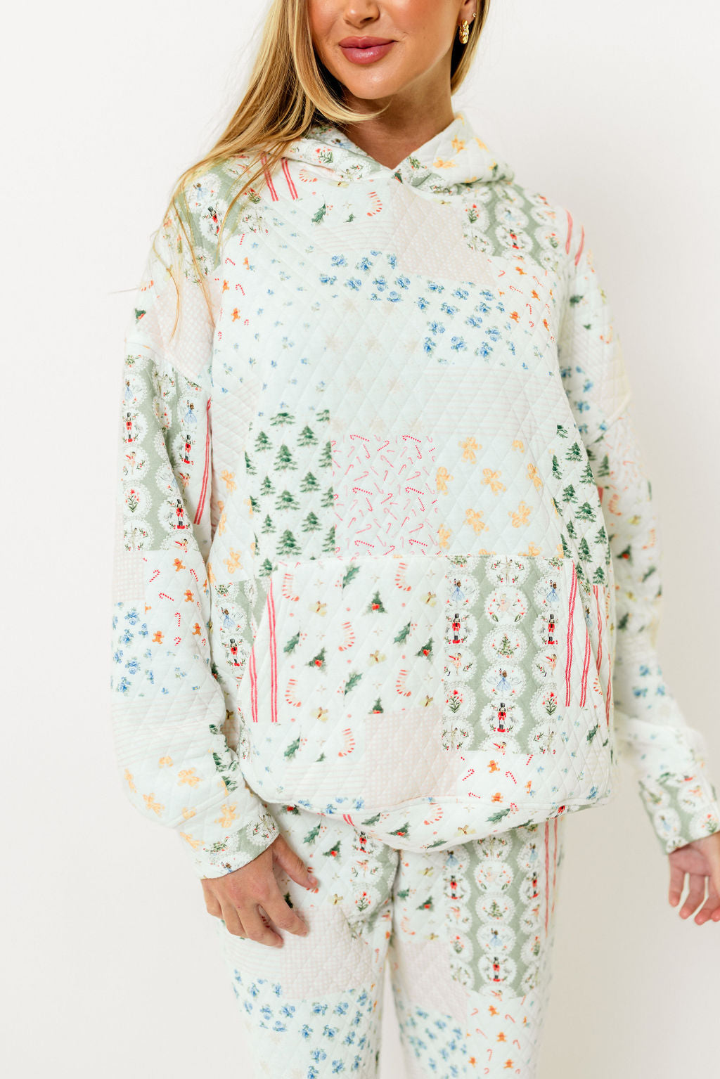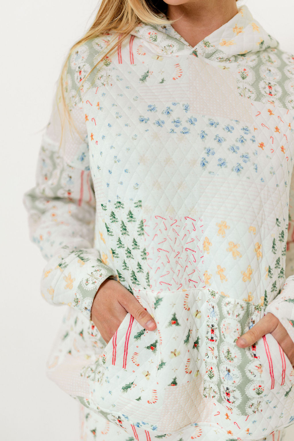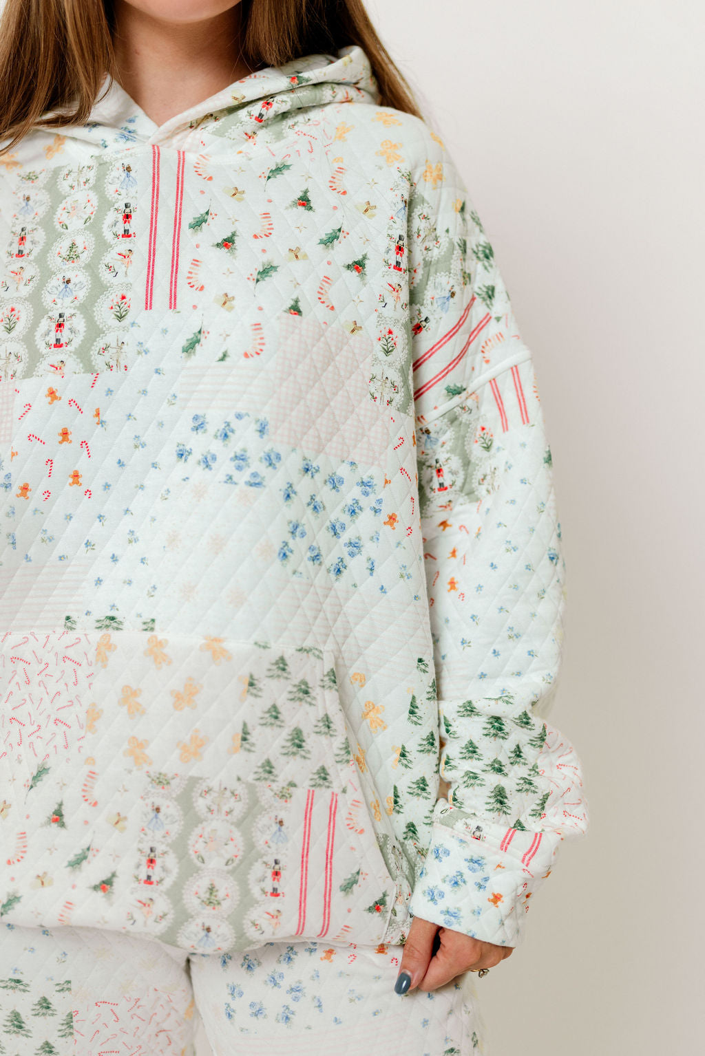 Wrap yourself in festive cheer with this Dorothy Quilted Hoodie in a fun Holiday pattern. Cozy and playful, its padded texture keeps you warm while spreading holiday spirit wherever you go. Perfect for winter strolls, holiday gatherings, or lounging by the fire, this hoodie combines comfort and seasonal fun effortlessly. Get ready to jingle all the way in style!