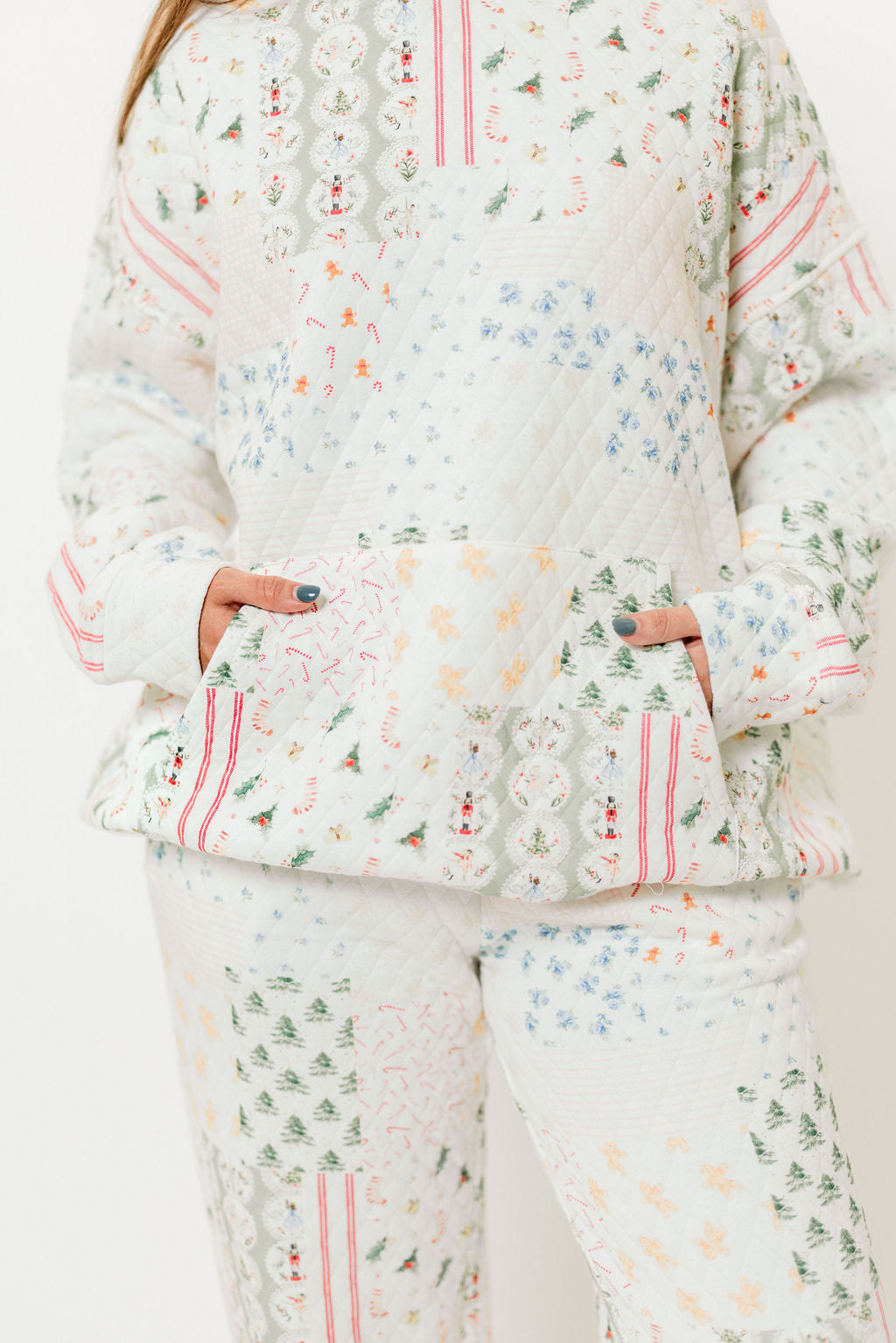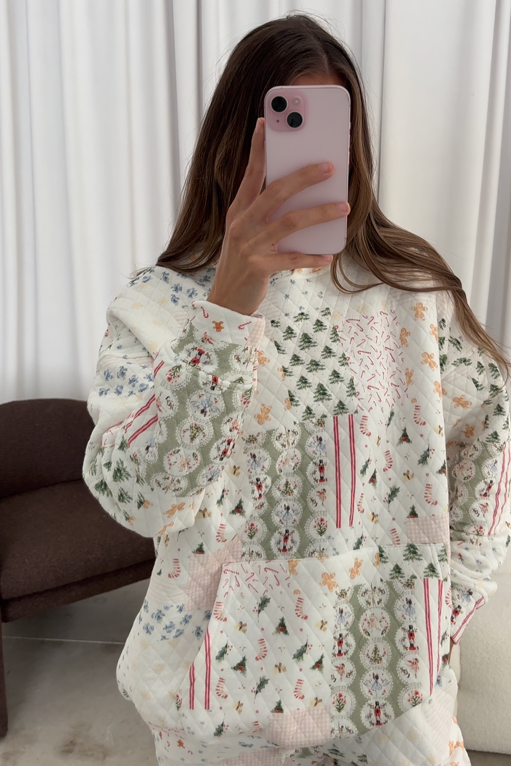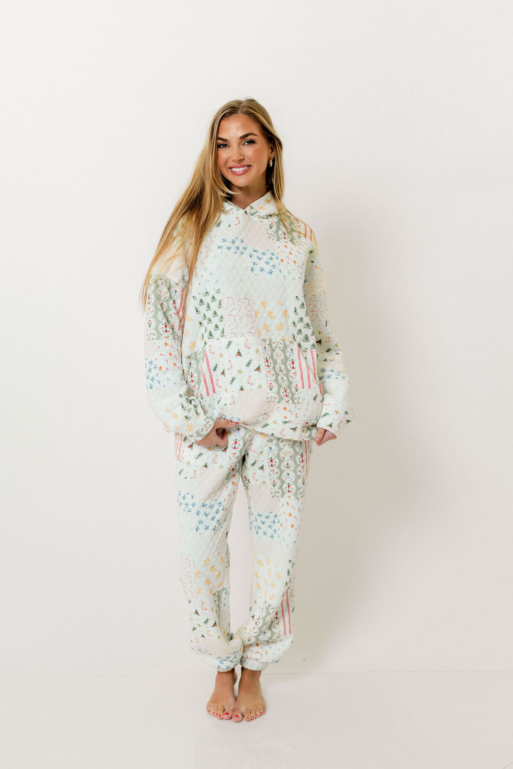 Wrap yourself in festive cheer with this Dorothy Quilted Hoodie in a fun Holiday pattern. Cozy and playful, its padded texture keeps you warm while spreading holiday spirit wherever you go. Perfect for winter strolls, holiday gatherings, or lounging by the fire, this hoodie combines comfort and seasonal fun effortlessly. Get ready to jingle all the way in style!