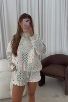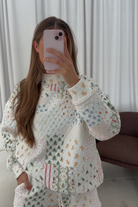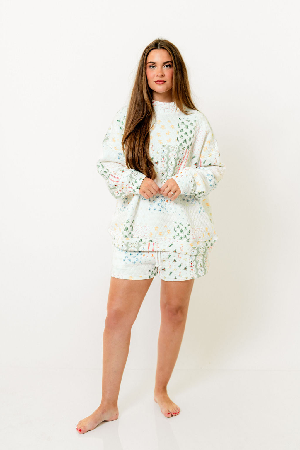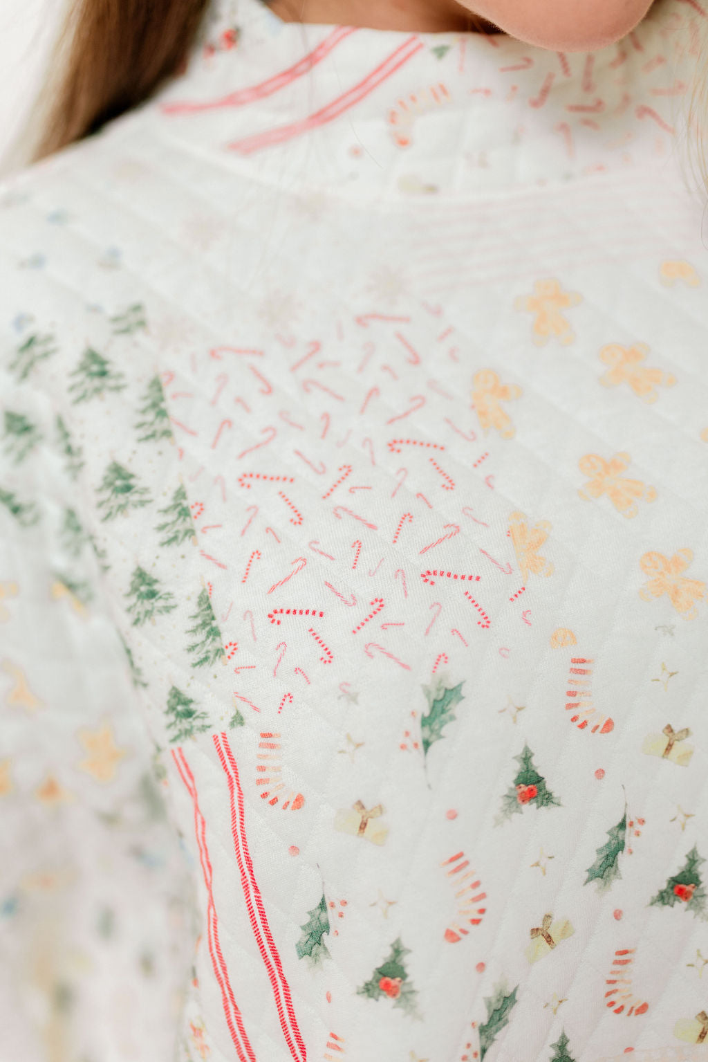 Cozy up this holiday season in our Sophia Quilted Mockneck Sweatshirt dressed in a festive Christmas pattern. Designed to keep you warm with its plush quilted fabric, it’s perfect for spreading cheerful vibes at every gathering. The playful mockneck adds a fun twist while keeping out the chill, making it your go-to for holiday comfort and style. Celebrate in warmth and whimsy!
