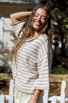 Imogen Striped 3/4 Sleeve Cardigan Top in Taupe Cream