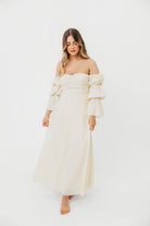 Corrine Tiered Sleeve Maxi Dress with Pockets in Butter Yellow - Bump Friendly