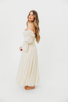 Feminine and sweetly elegant, the Corrine Maxi is guaranteed to sweep you off your feet! It features an incredible sweetheart neckline that can be worn on or off the shoulder, plus renaissance-style statement sleeves and a full, sweeping skirt. It's almost too easy to pair this dress with boots for an outdoor photo shoot, or with sleek pumps for a wedding or baby shower! The Corrine dress is already a Worth Collective fan favorite, so don't wait too long to snag yours!