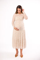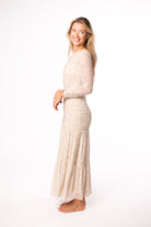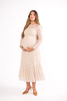 Camille Mesh Gathered Side Seam Maxi Dress in Nude Multi Floral - Bump Friendly