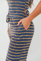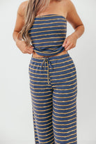 Lawrence Striped Drawstring Wide Leg Pants in Vintage Navy