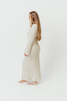 Elevate your wardrobe with the Rowan Maxi Dress! This new knit gown features a refined square neckline and a flowing silhouette that effortlessly combines comfort with elegance. Its soft neutral hue adds a timeless touch, making it perfect for sophisticated occasions or relaxed gatherings. Experience understated luxury in a dress designed to move gracefully with you.