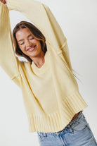 Lola 100% Cotton Scoop Neck Drop Shoulder Knit Sweater in Lemon