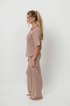 Torrance Short Sleeve Sweater Top and Pants Set in Mocha Cream