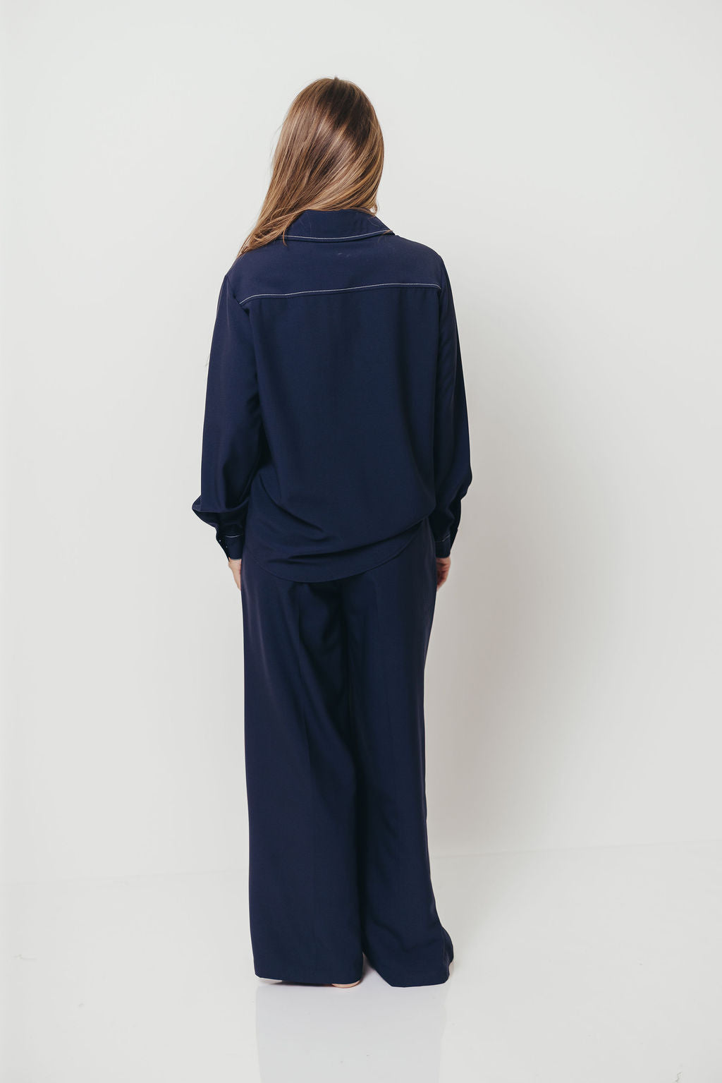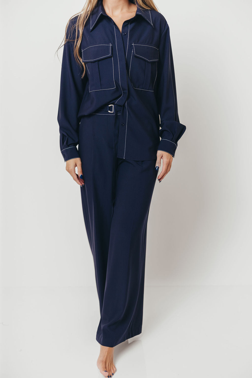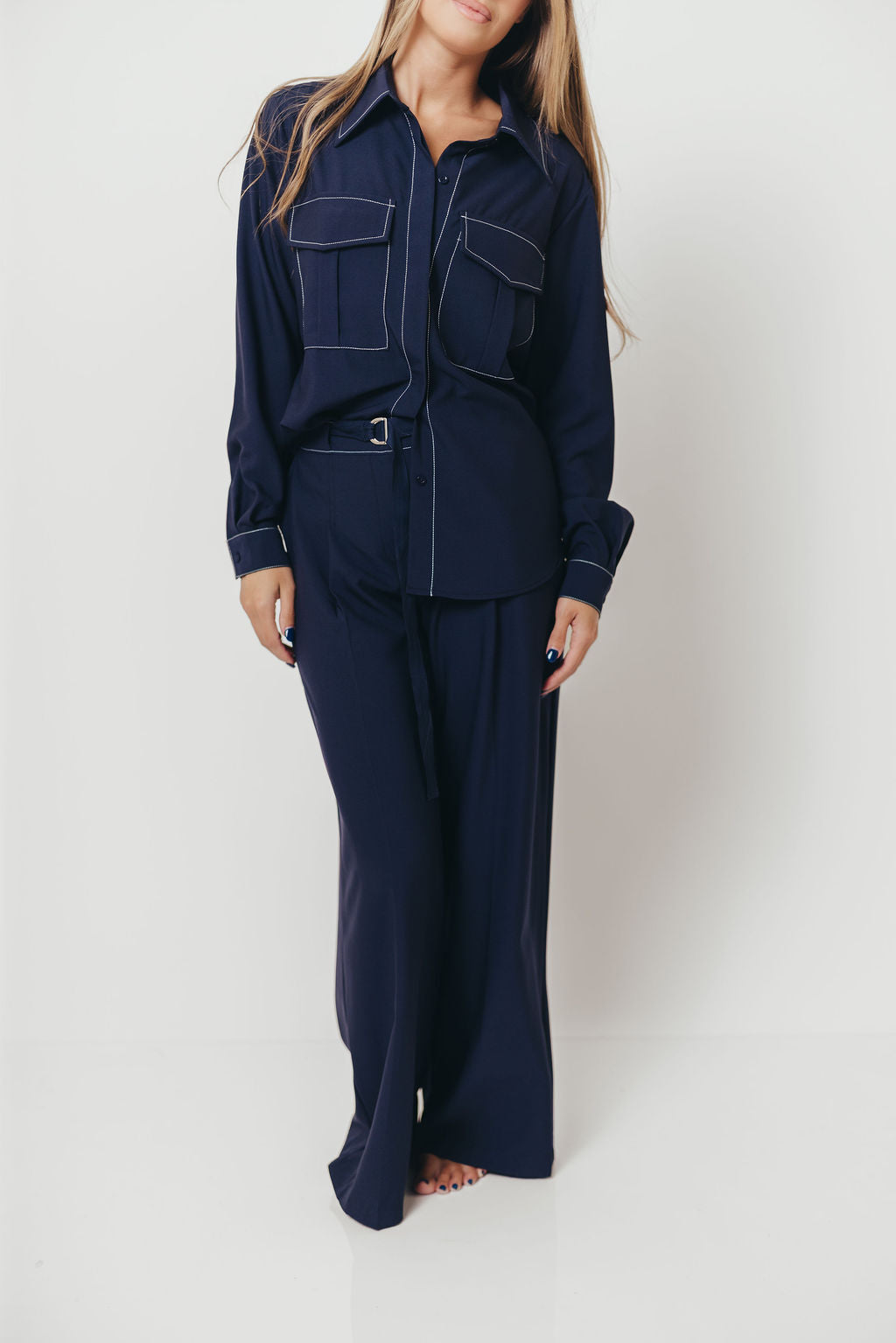 Greer Contrast Stitch Belted Trousers in Midnight Blue *Final Sale*