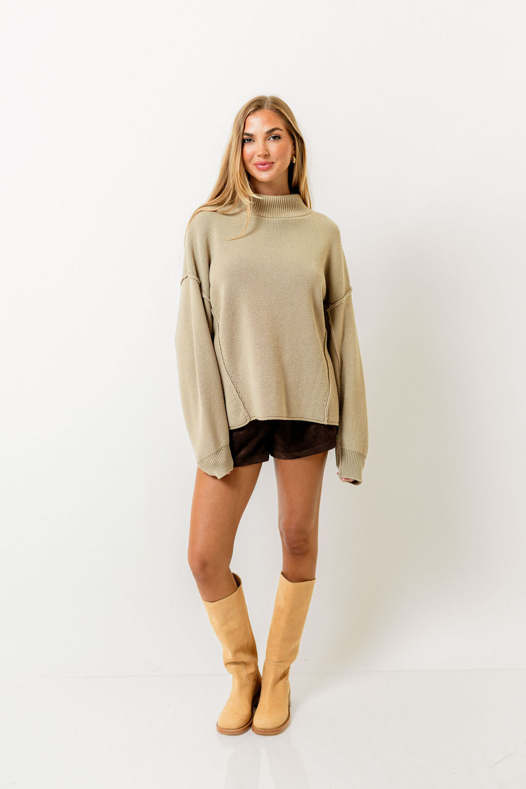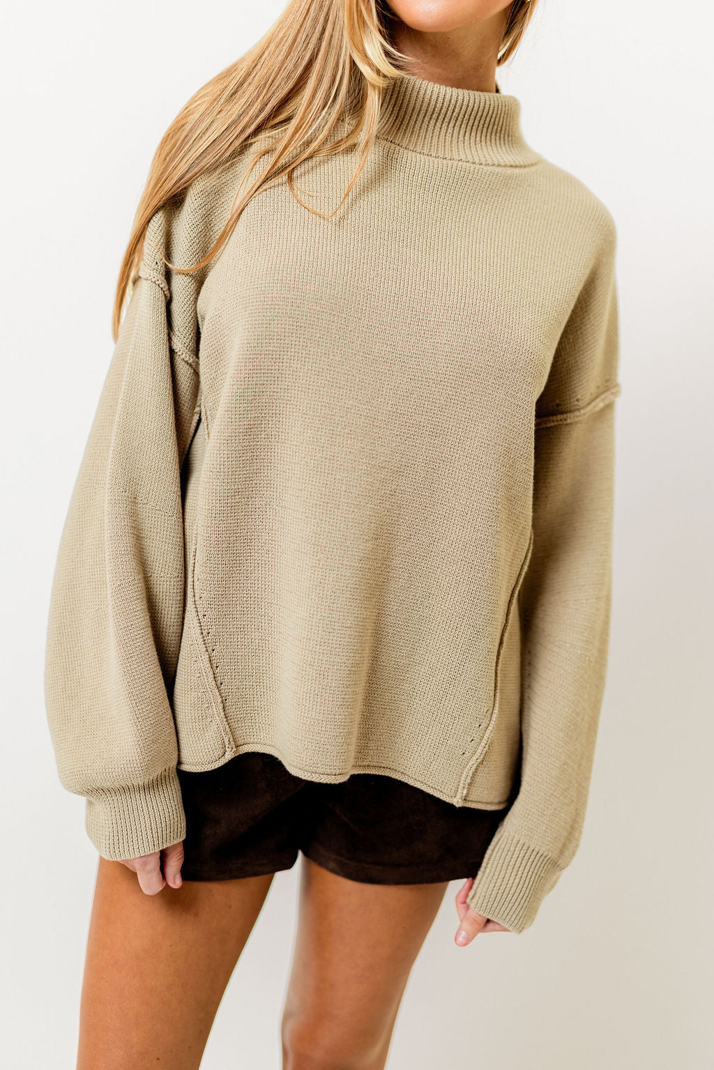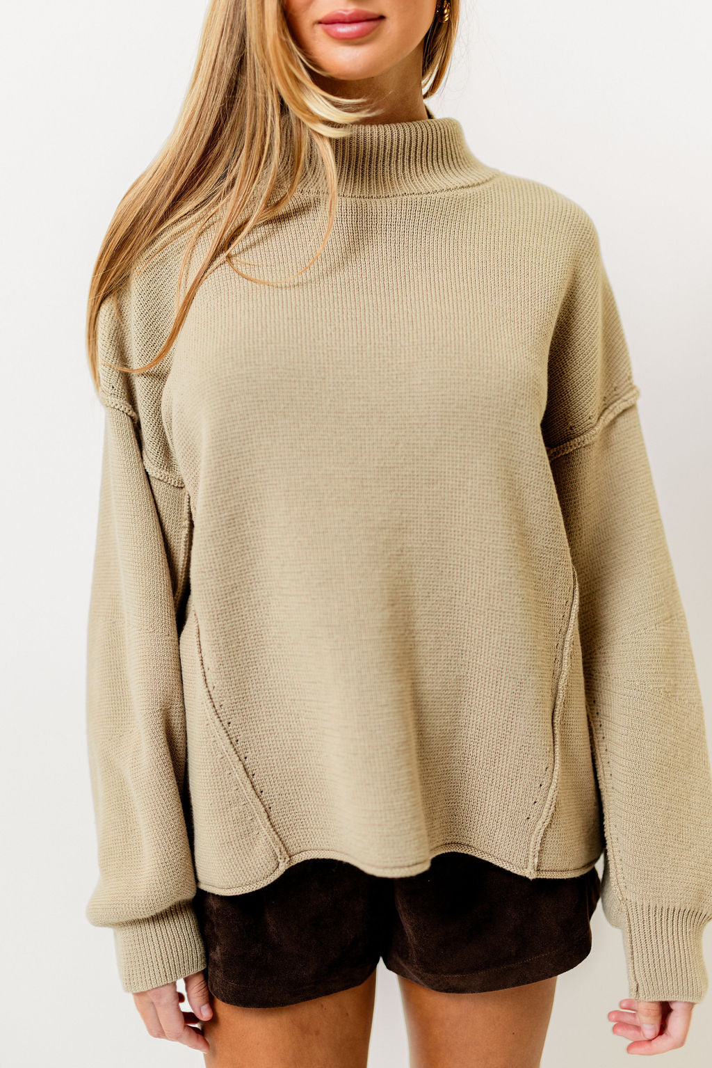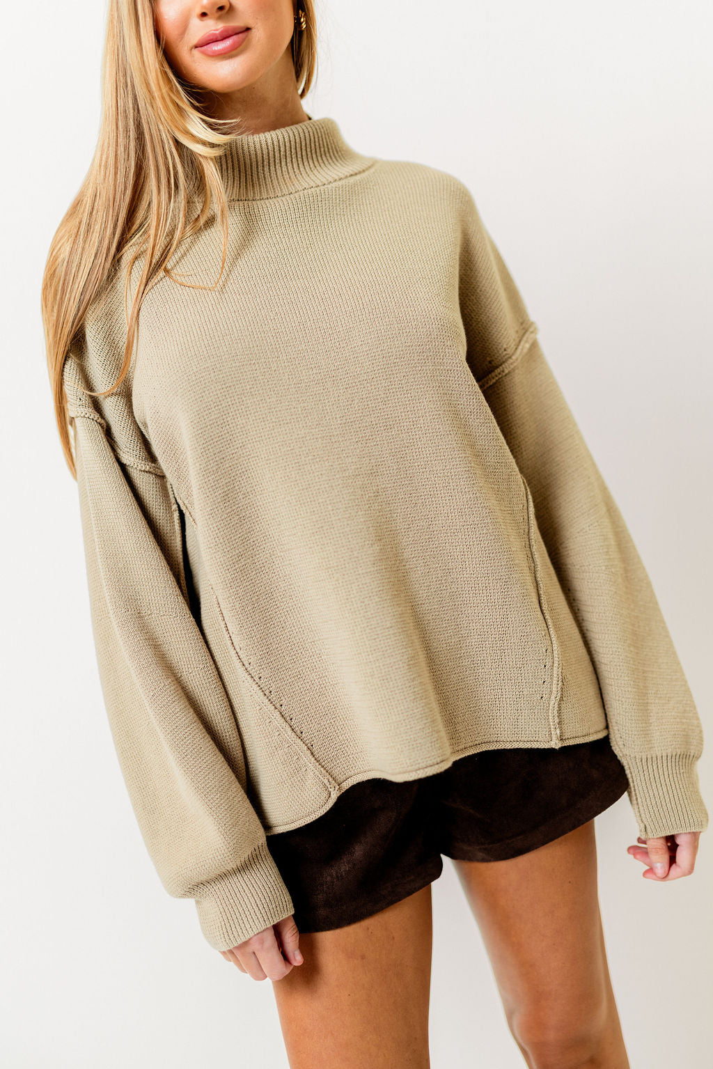 Fiona Exposed Seam Funnel Neck Sweater in Sand