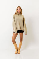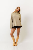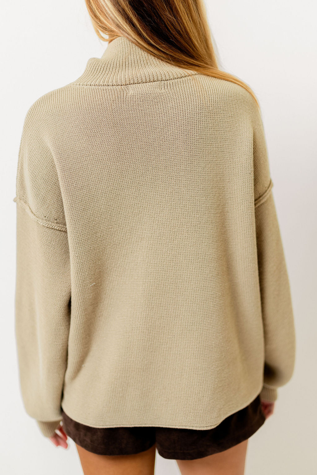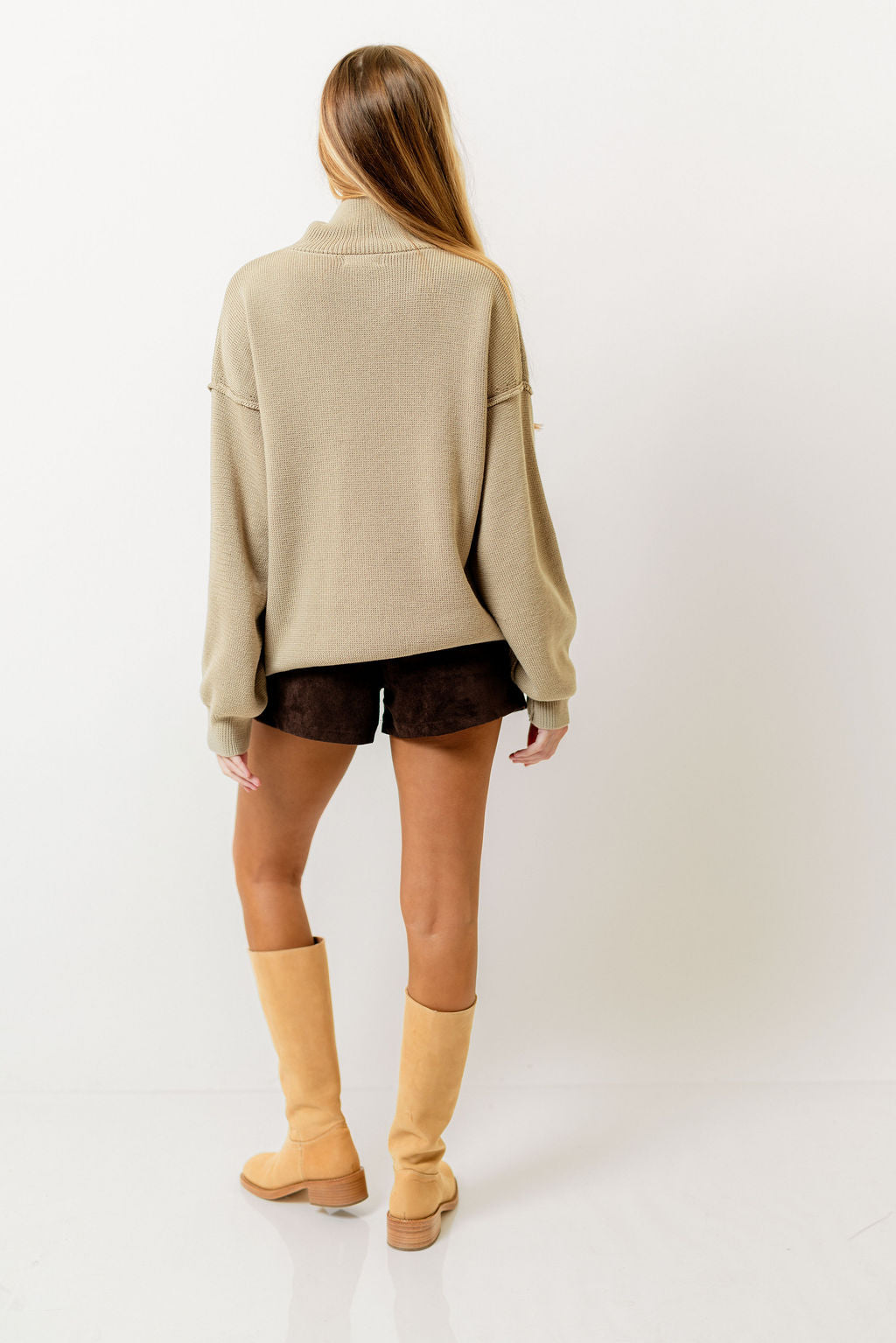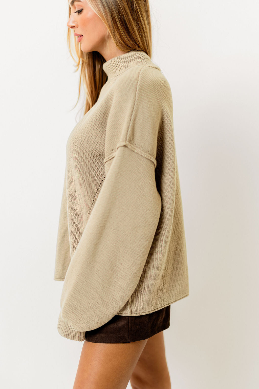 Fiona Exposed Seam Funnel Neck Sweater in Sand