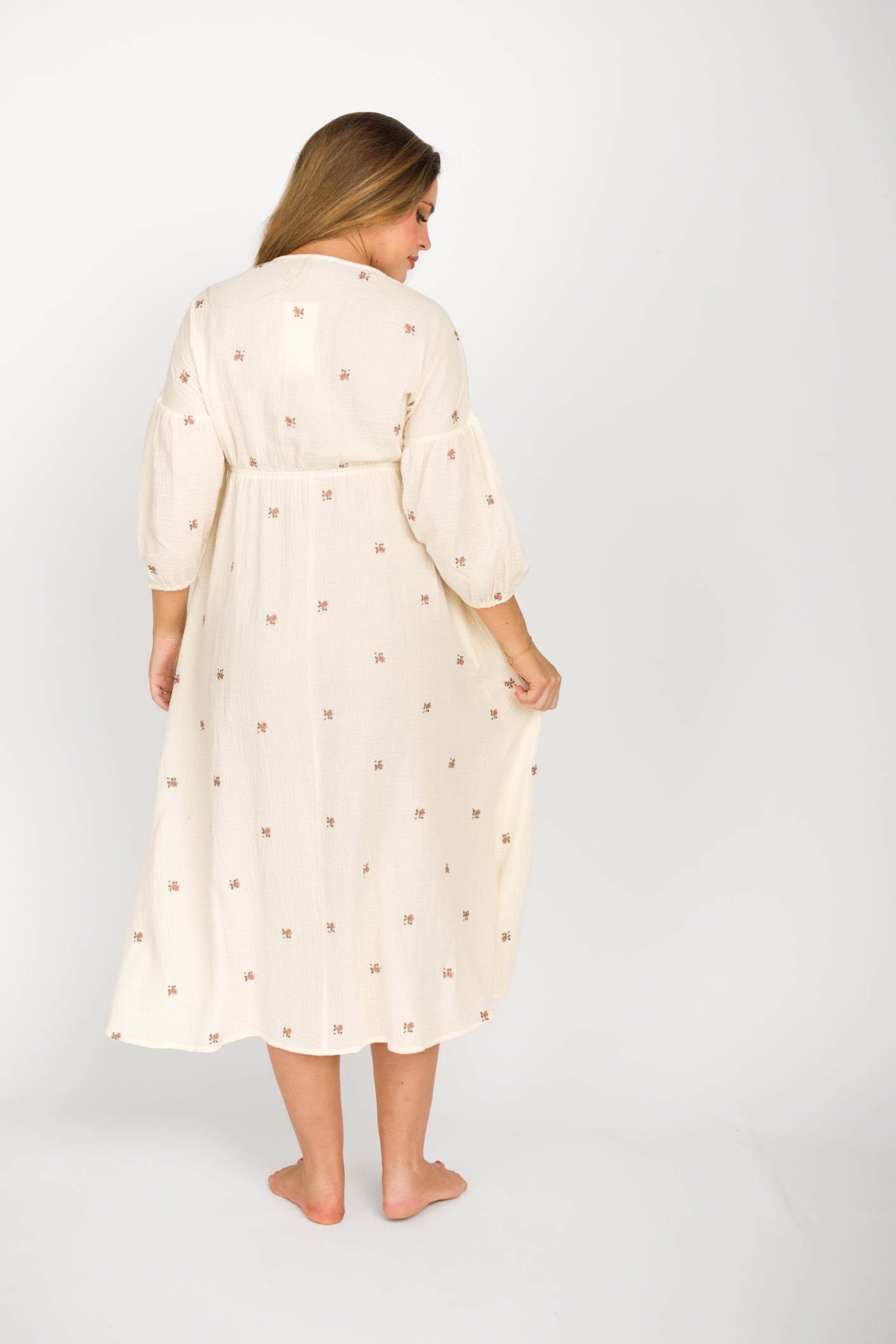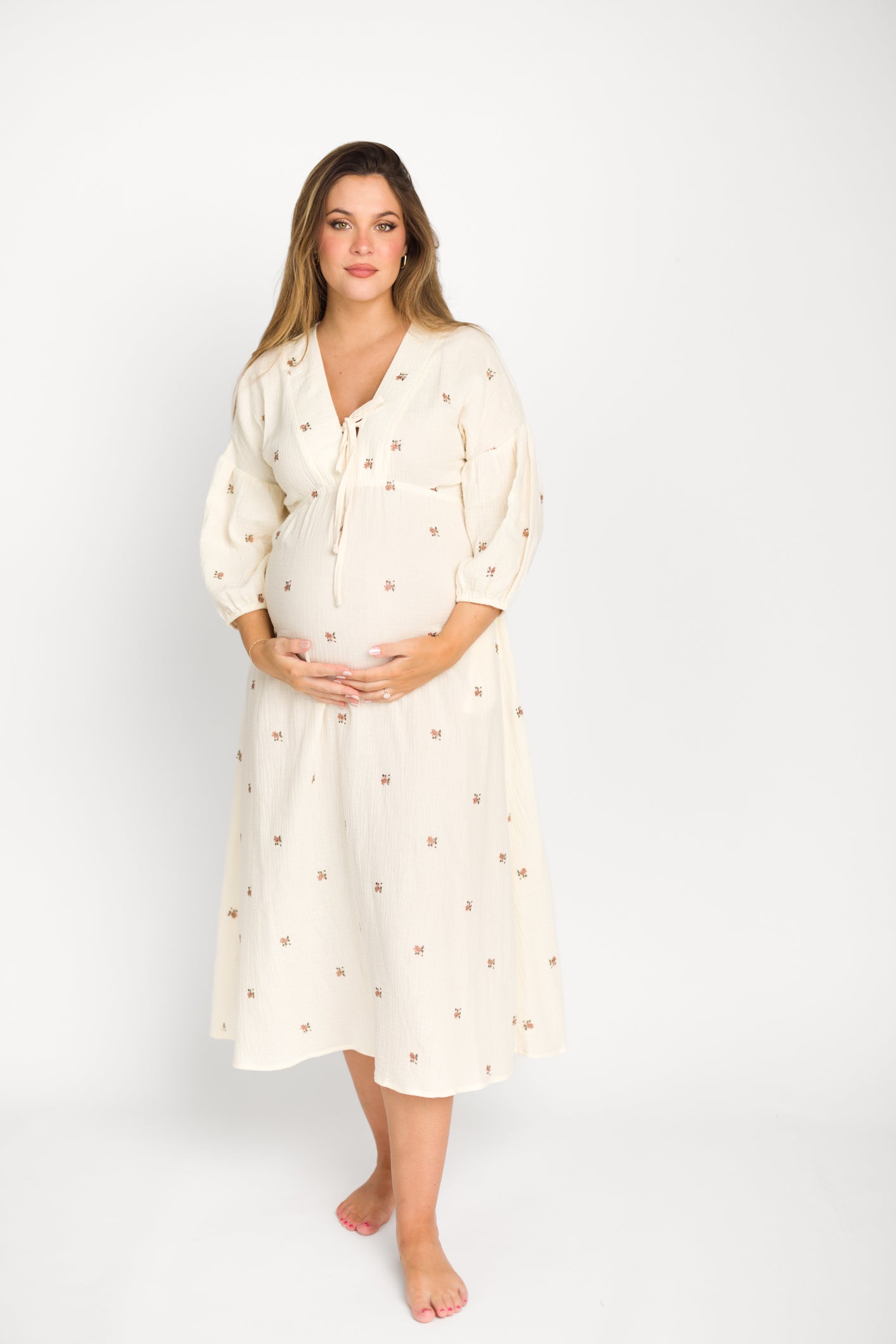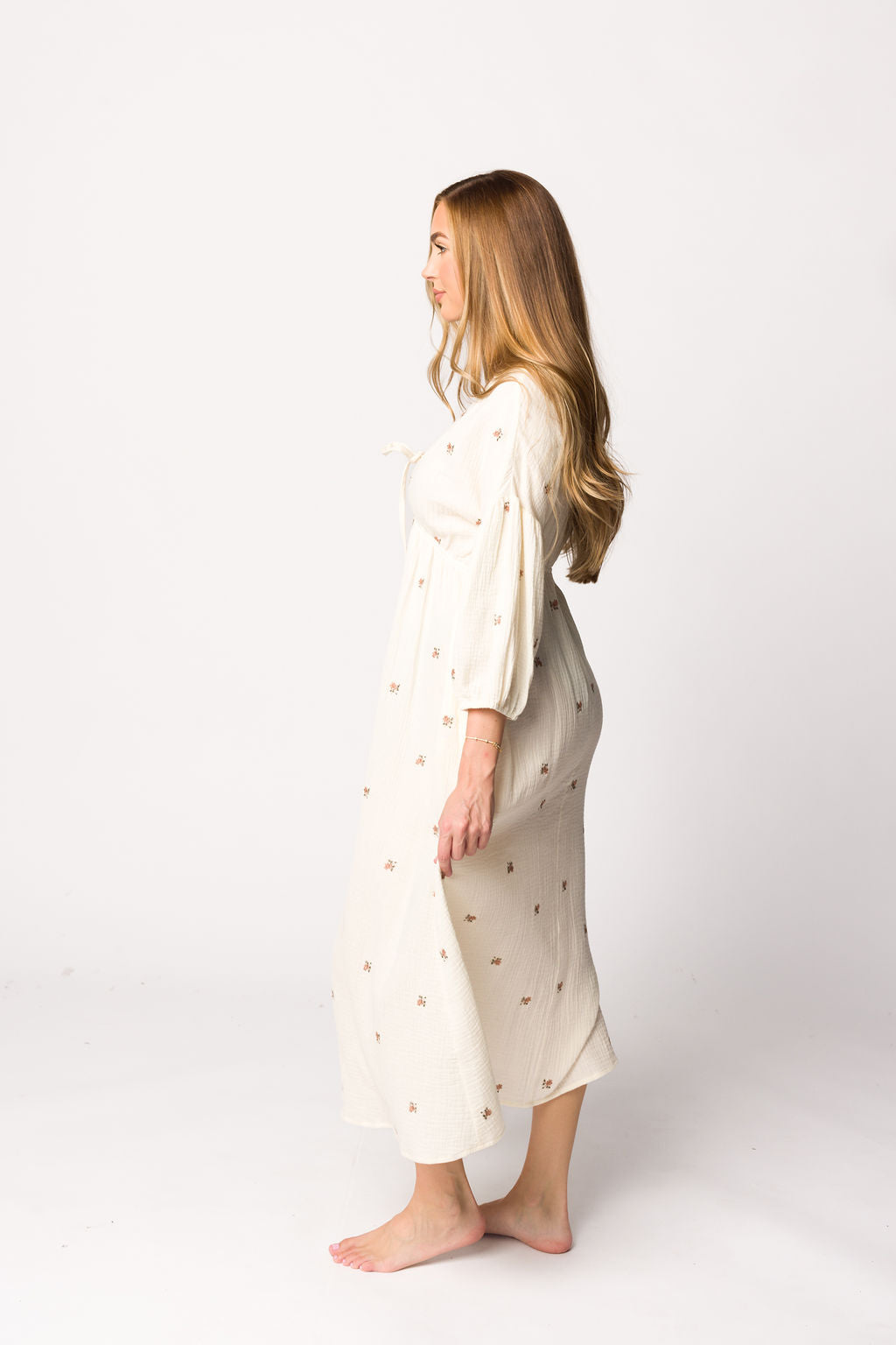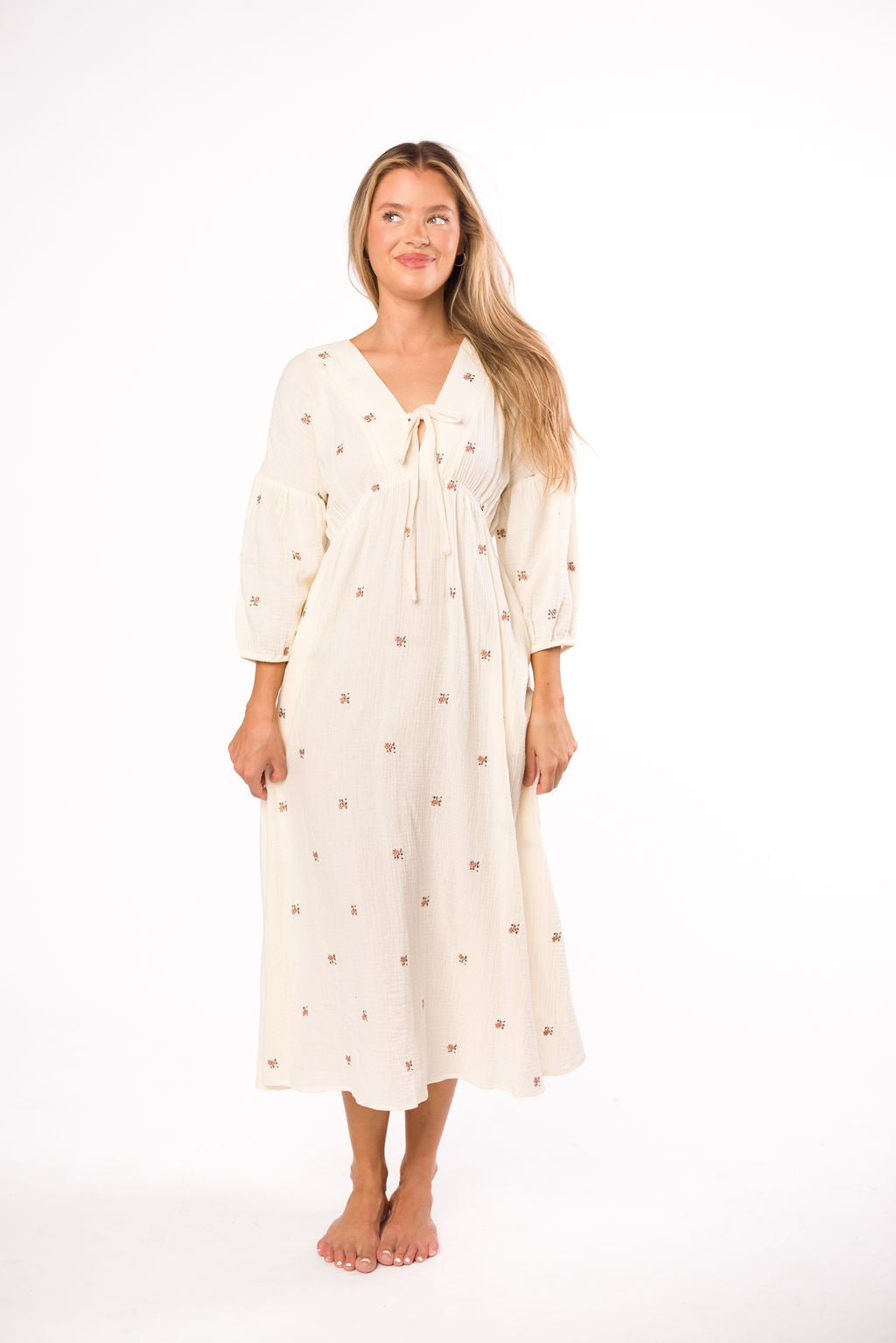Hunter 100% Cotton Gauze Midi Dress in Soy/Pink Floral - Bump Friendly