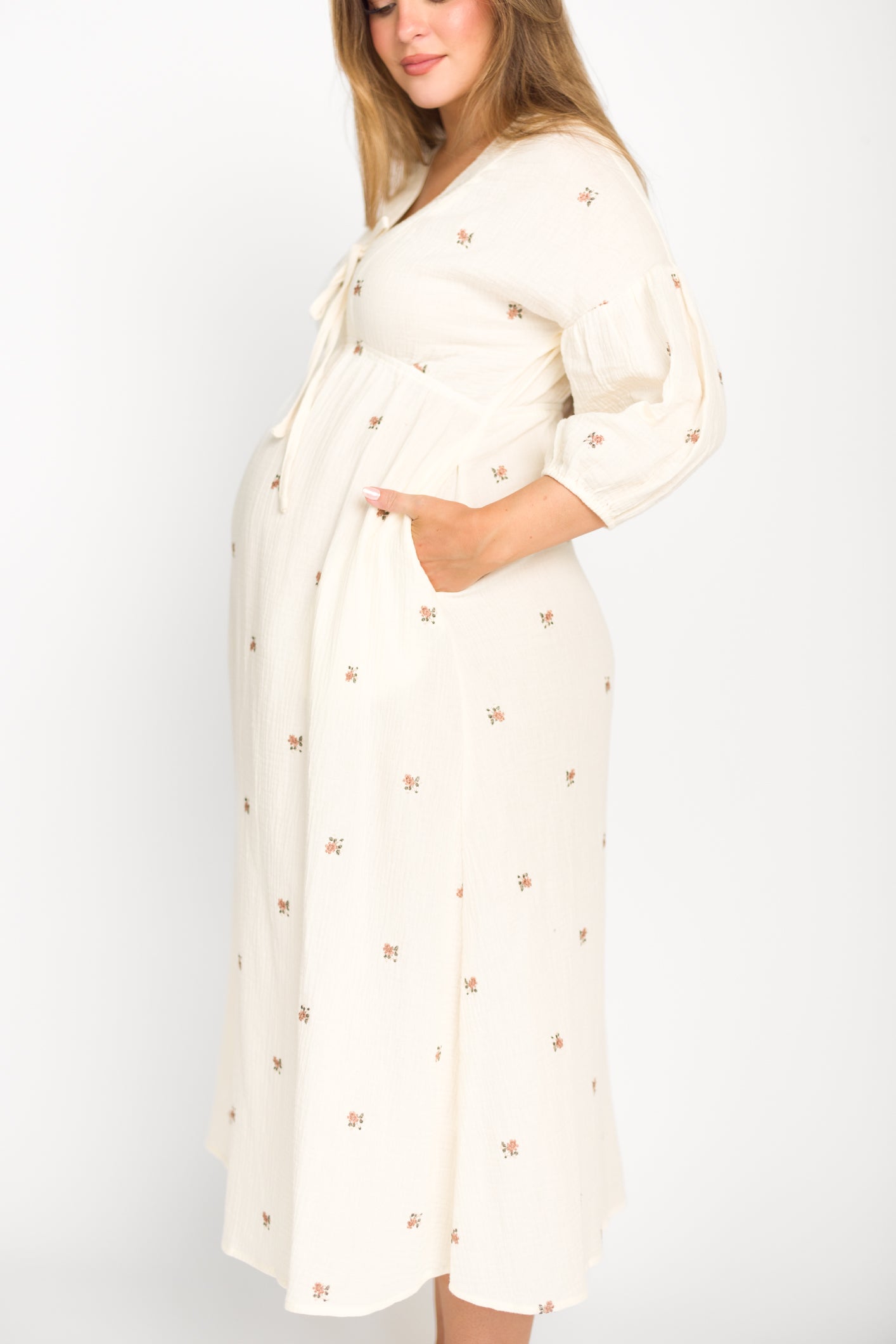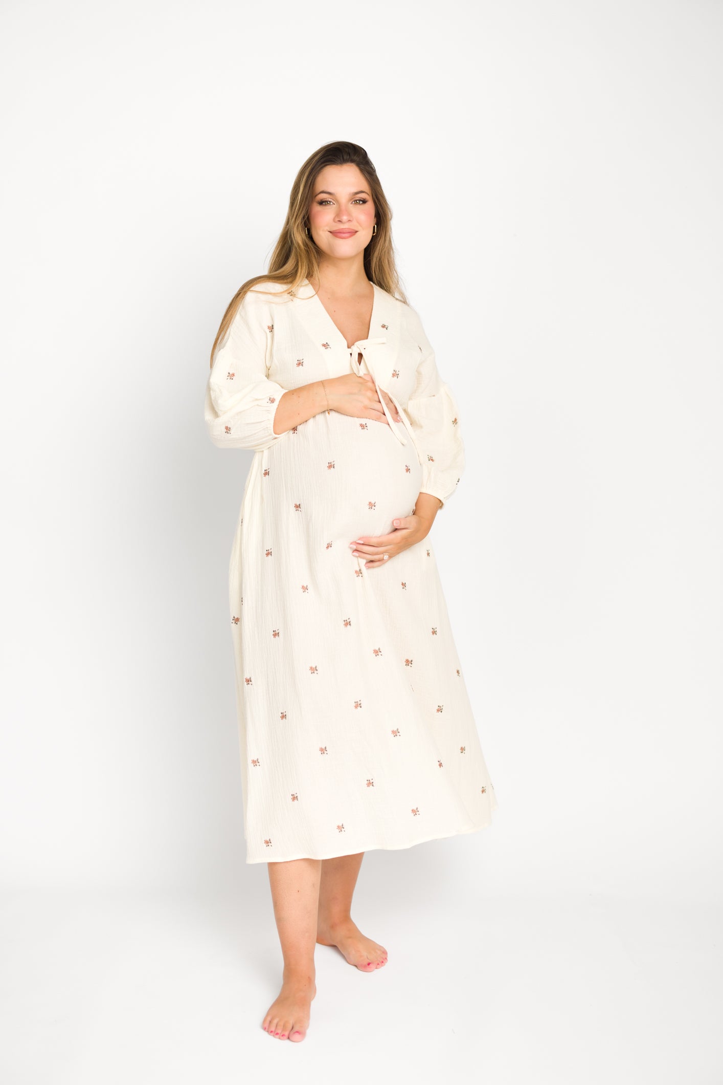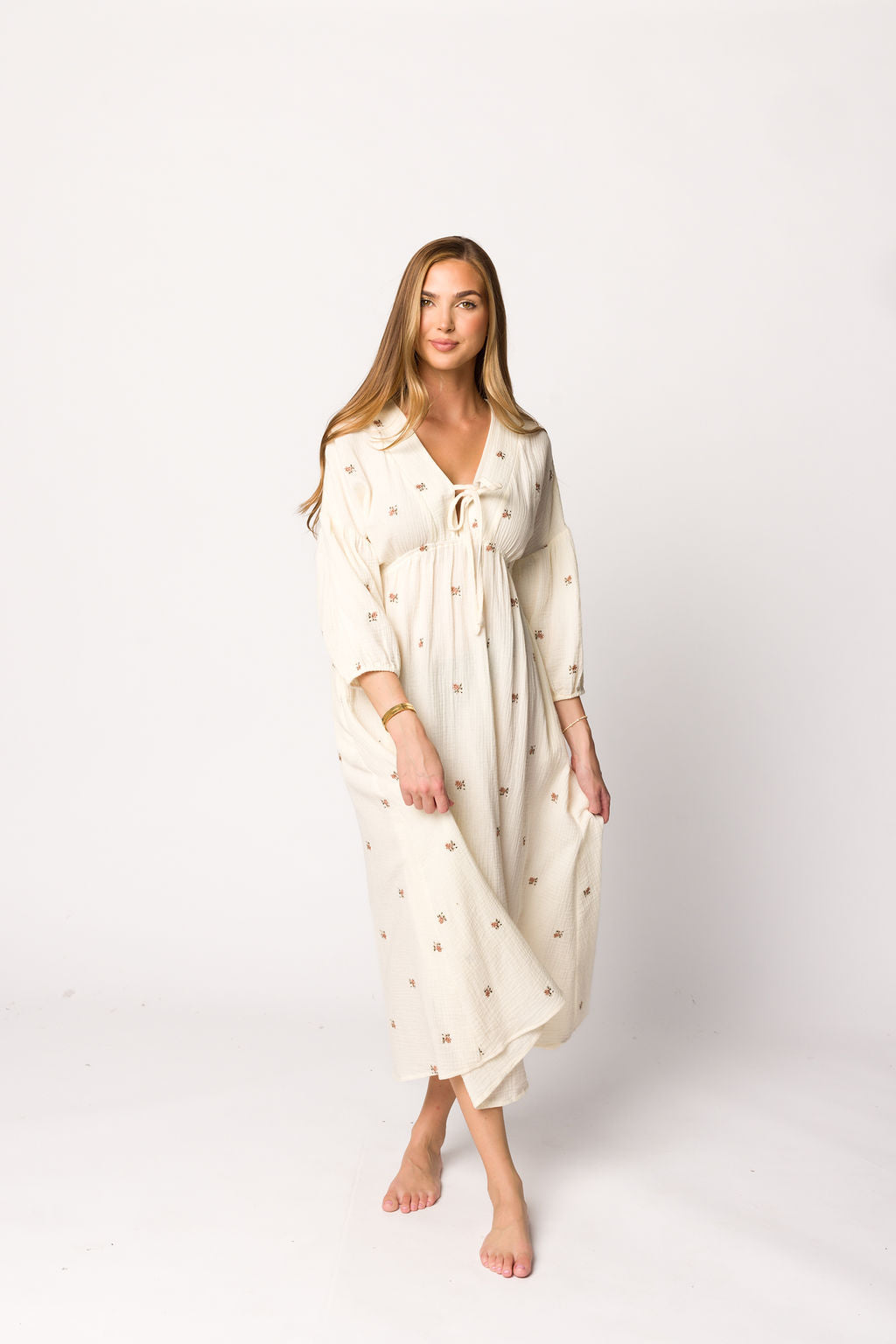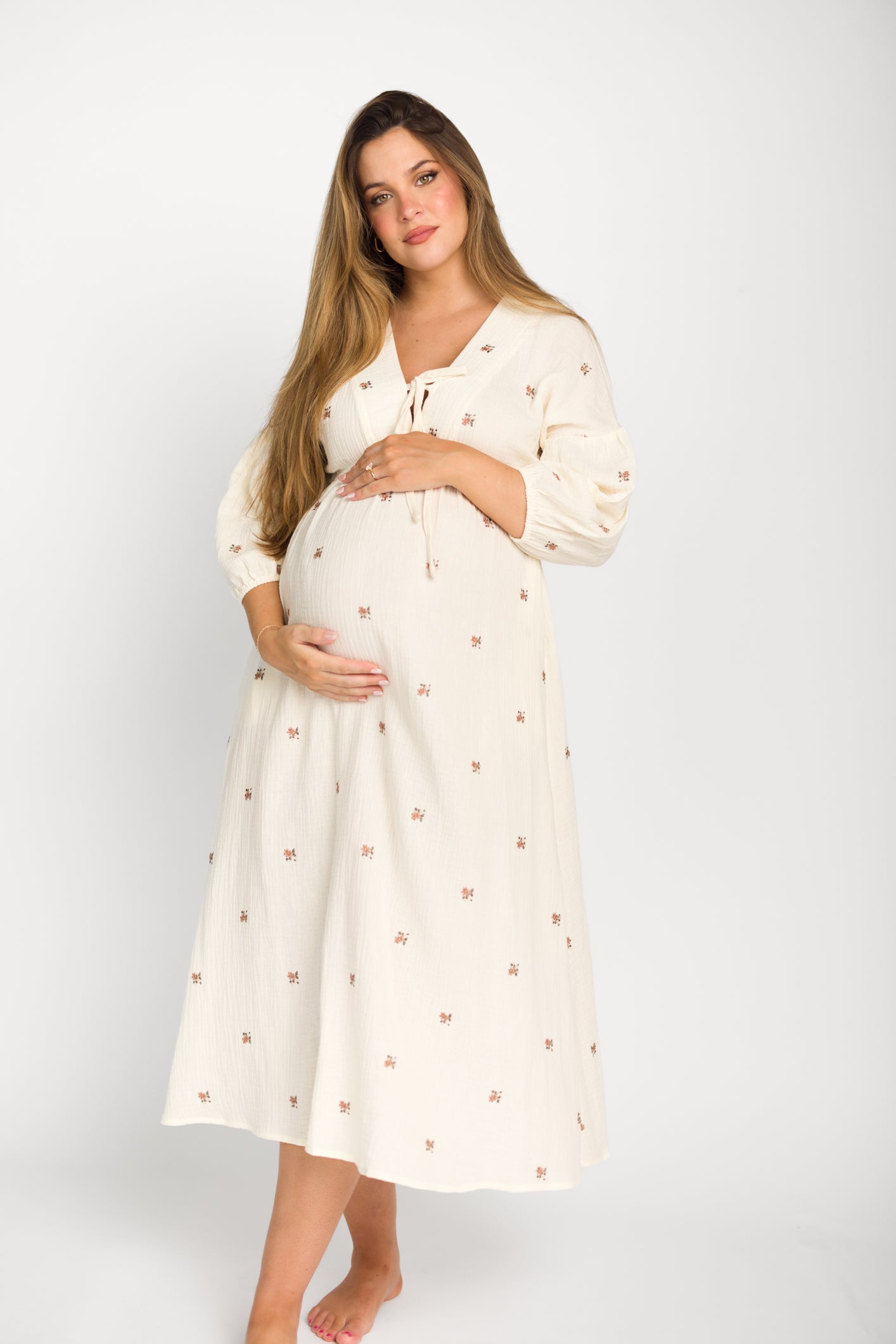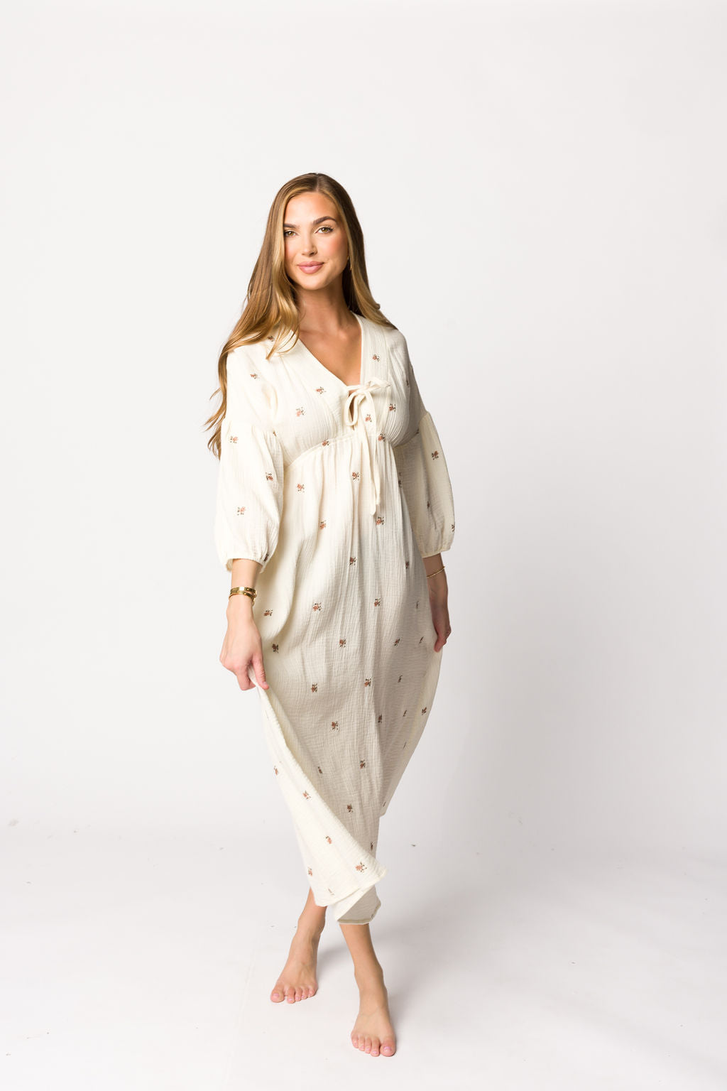 Hunter 100% Cotton Gauze Midi Dress in Soy/Pink Floral - Bump Friendly
