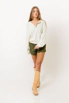 She's chic and sleek and ready for fun--meet the Leona Sweater, your new favorite for cold weather! This darling little top offers the comfort of your favorite sweatshirt, with a comfy fit and a chic little 3/4 front button placket. Pick up your favorite color, stat!