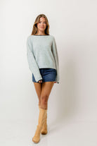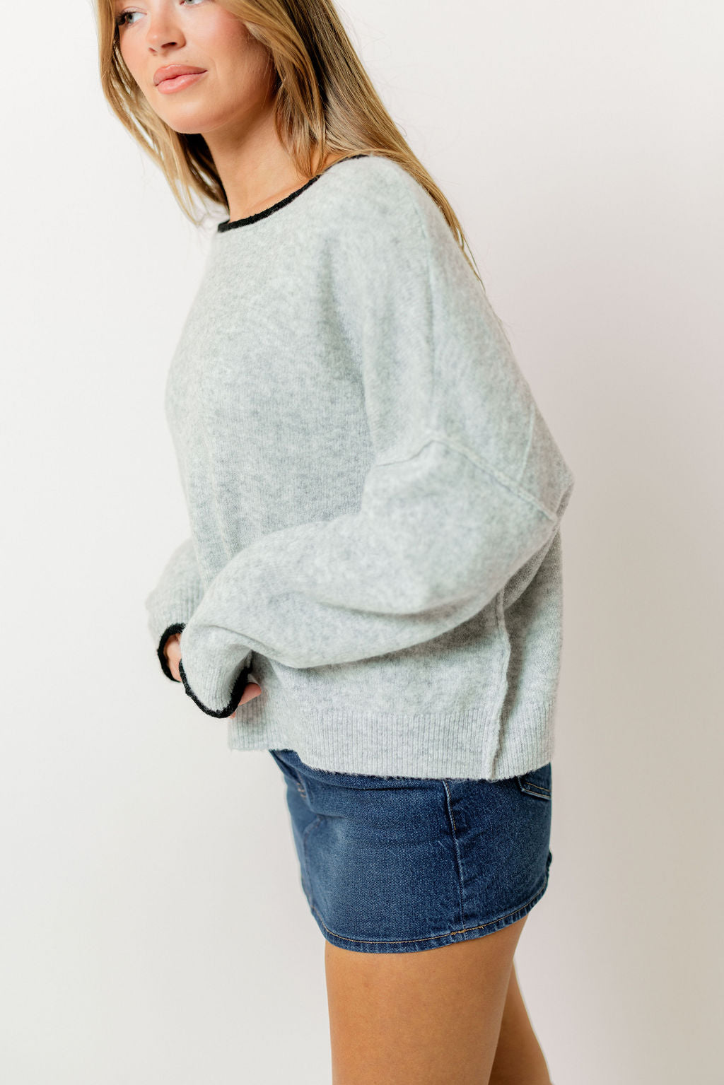 Meredith Relaxed Fuzzy Knit Sweater in Gray