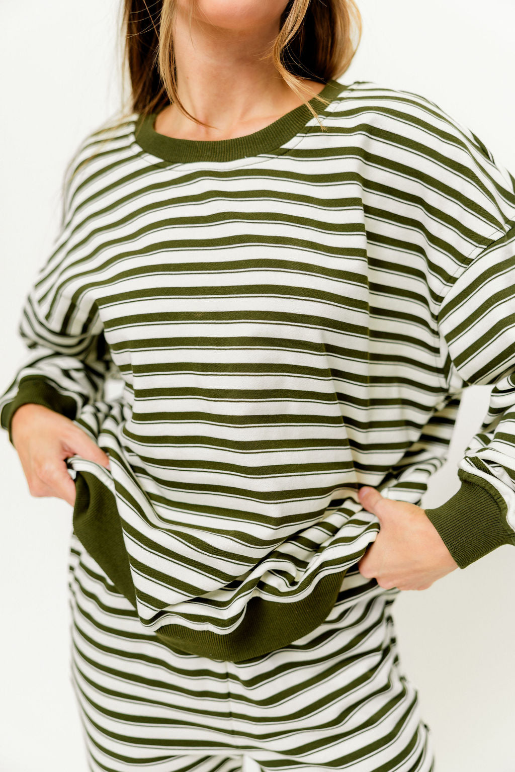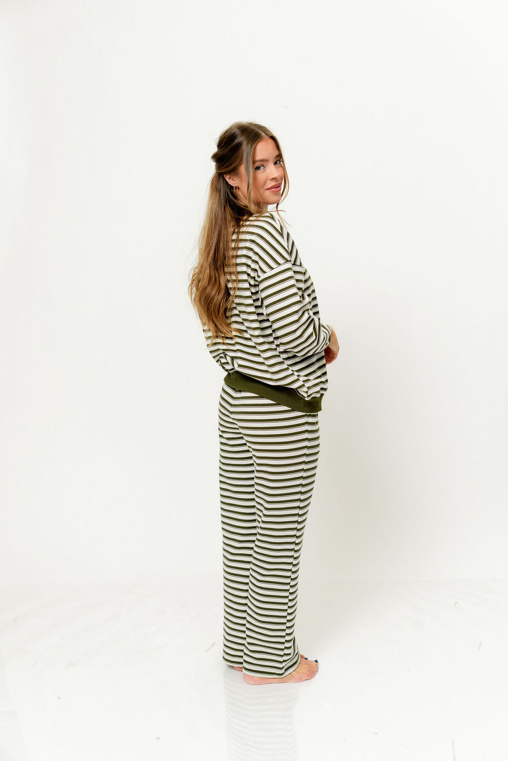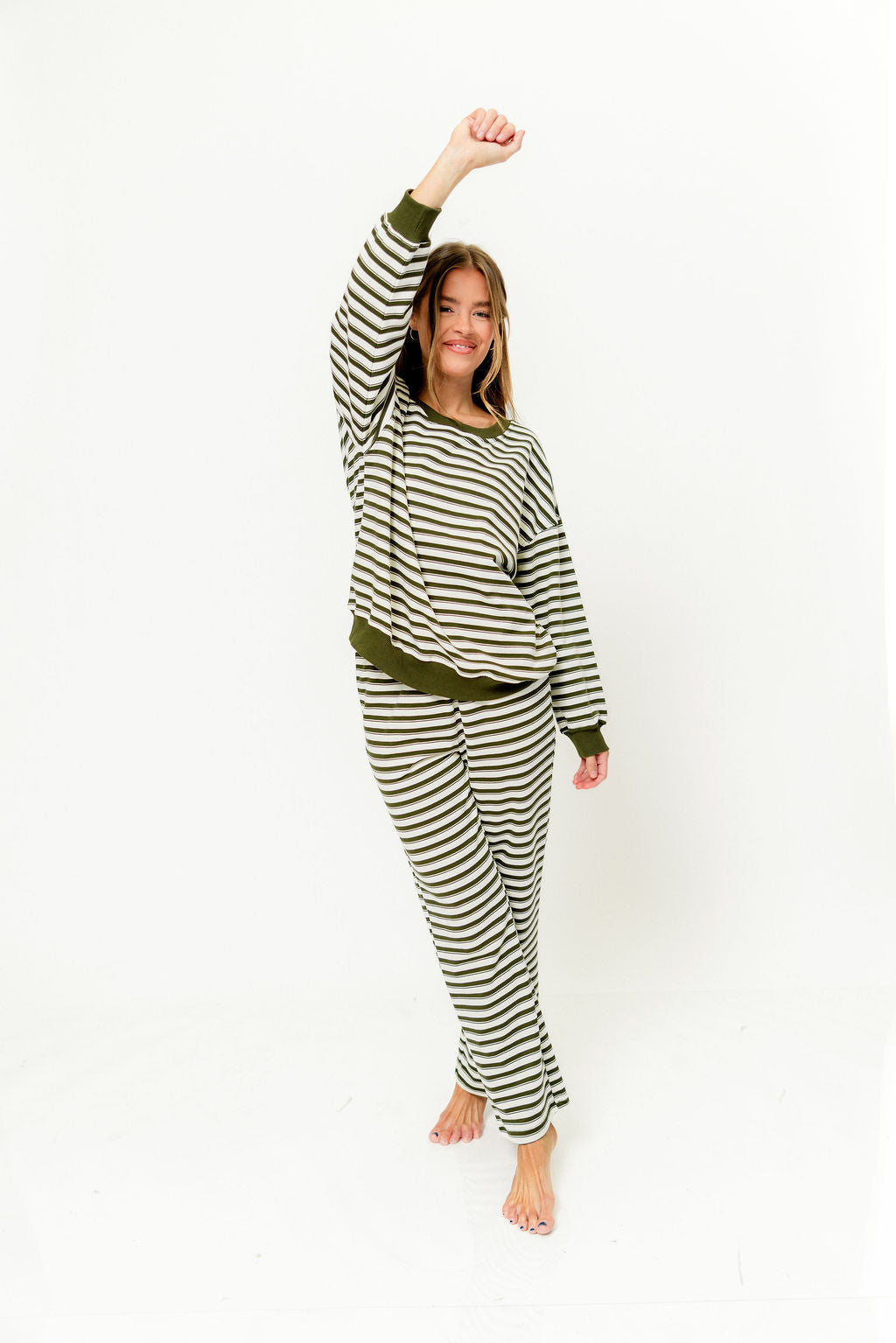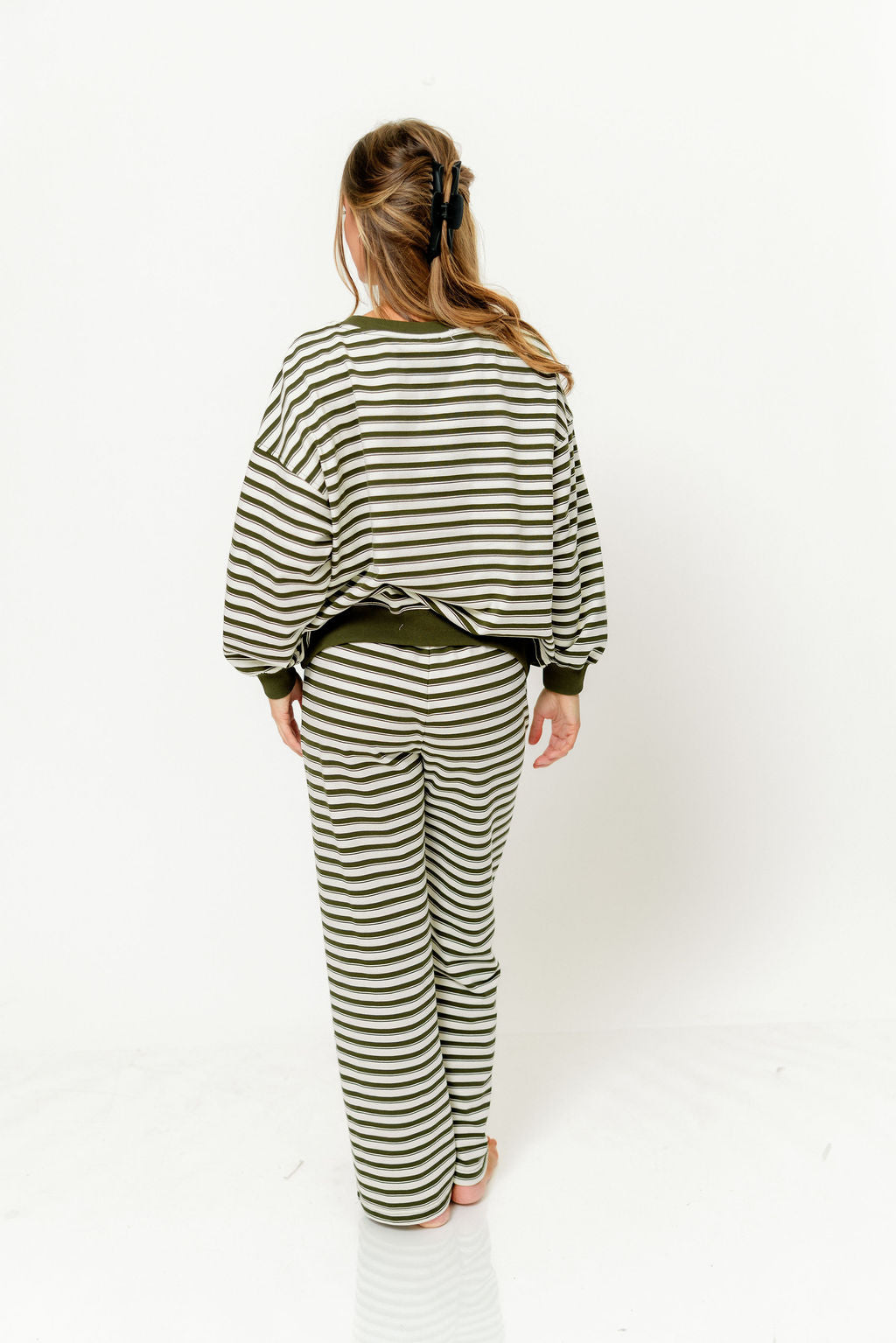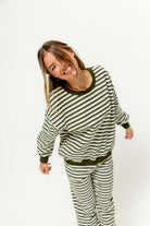 Rudie Sweatshirt and Sweatpants Set in Cream/Green Stripe