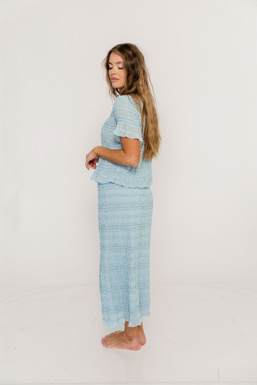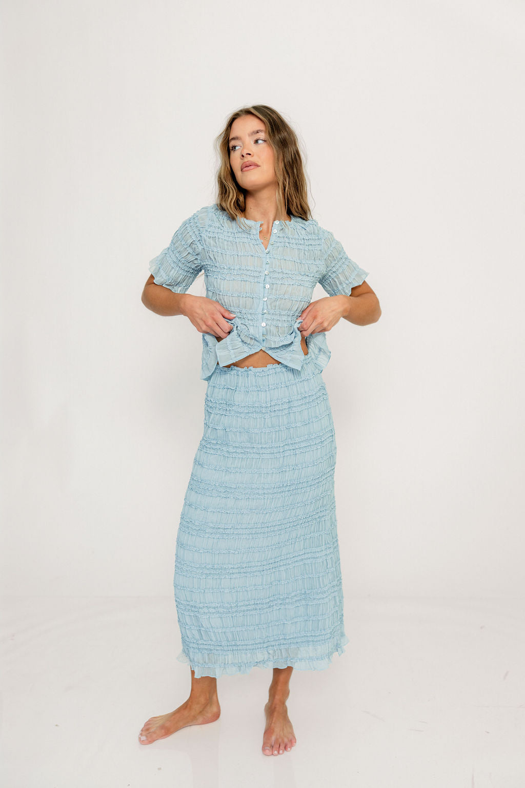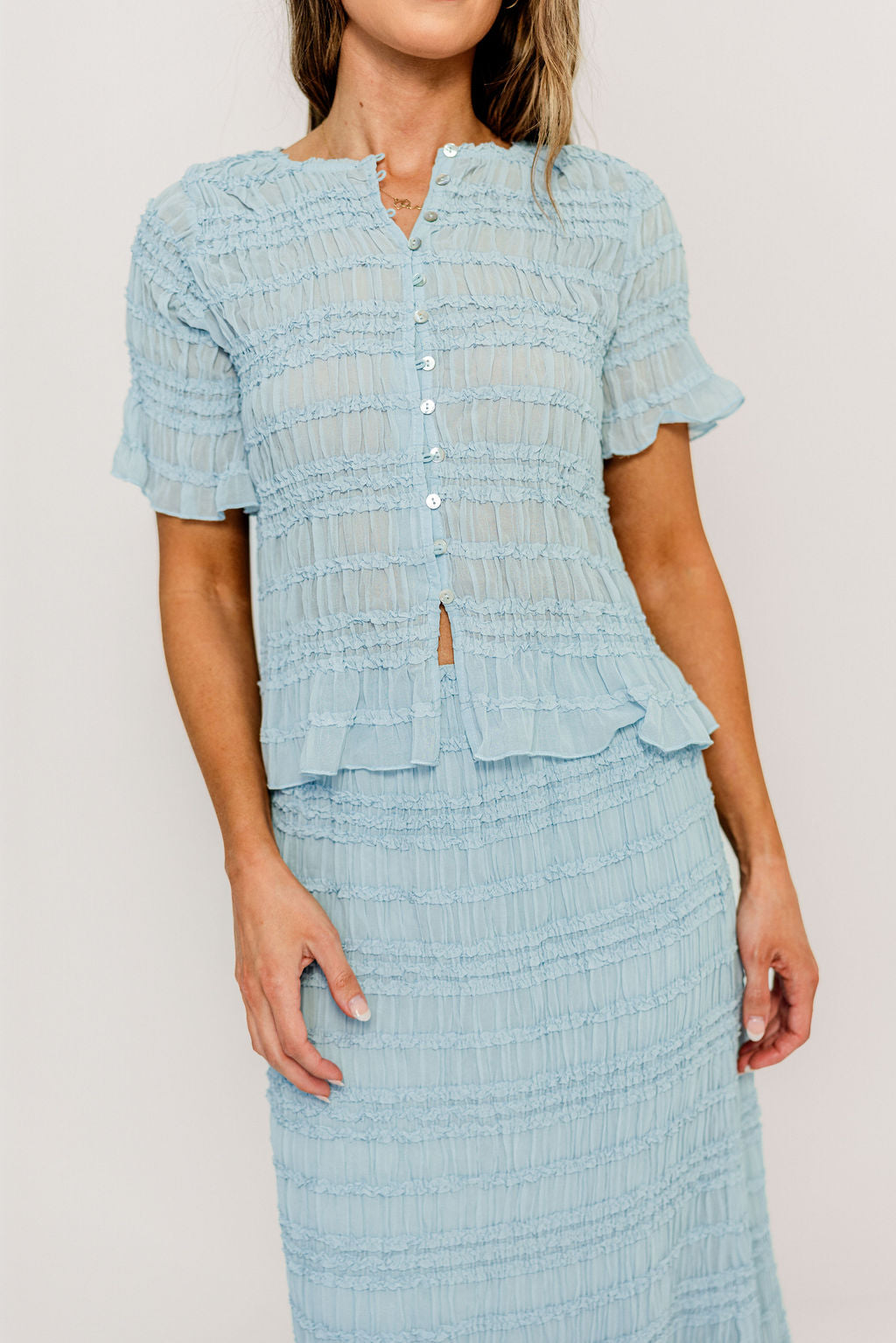 Elodie Peplum Top and Skirt Set in Sky