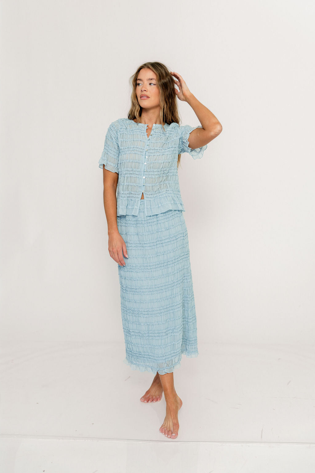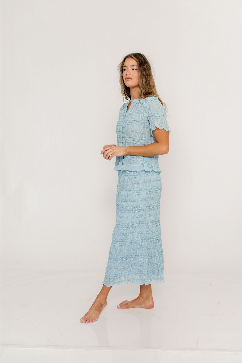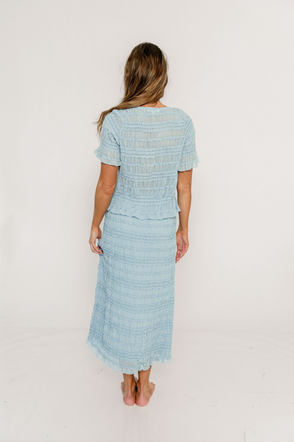 Elodie Peplum Top and Skirt Set in Sky