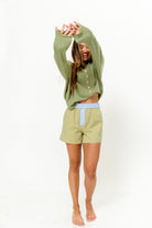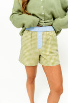GARMENT DETAILS: Cotton-blend shorts in a comfortable boxer-style silhouette. Features an elasticated waistband, side pockets, and contrast color trim.