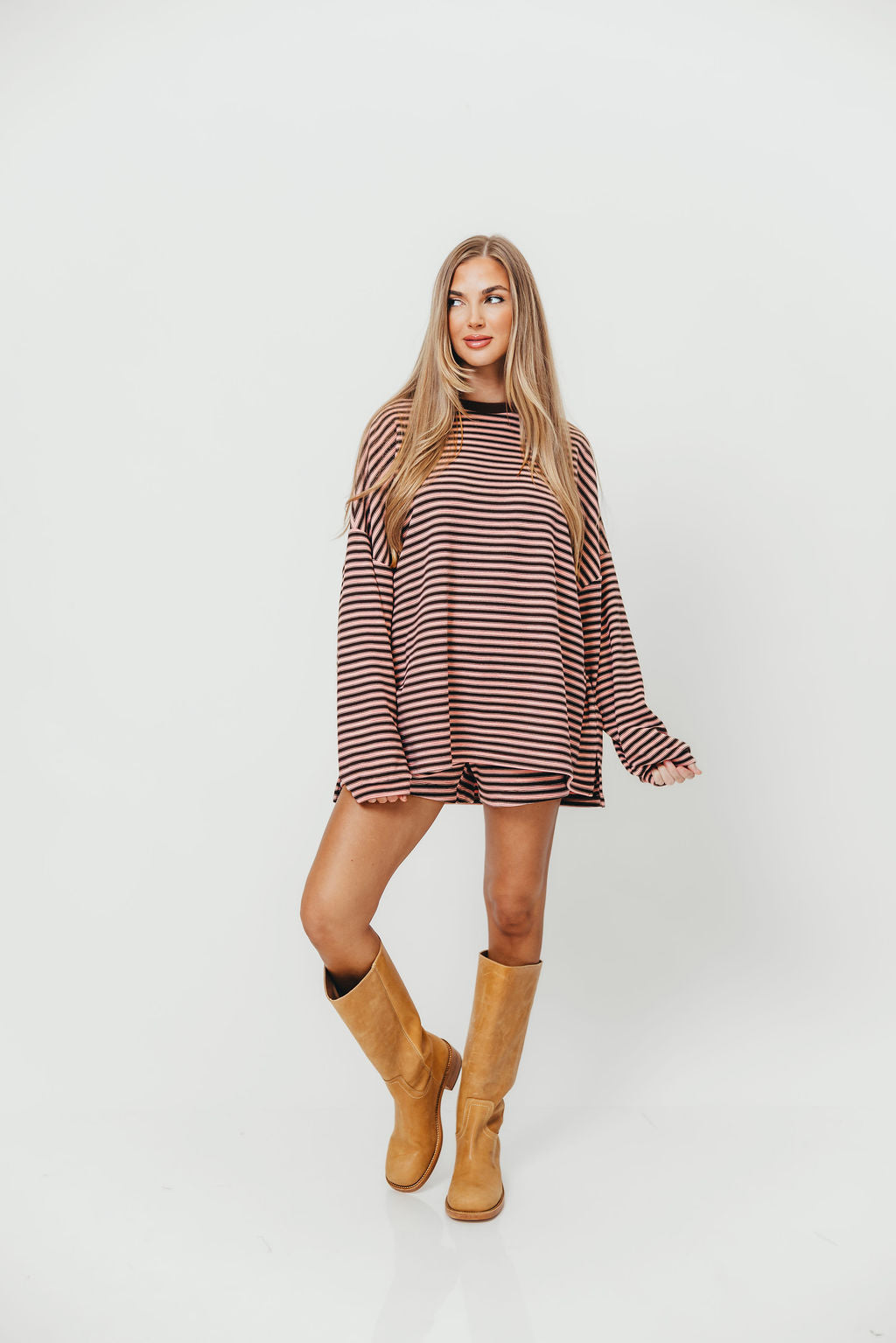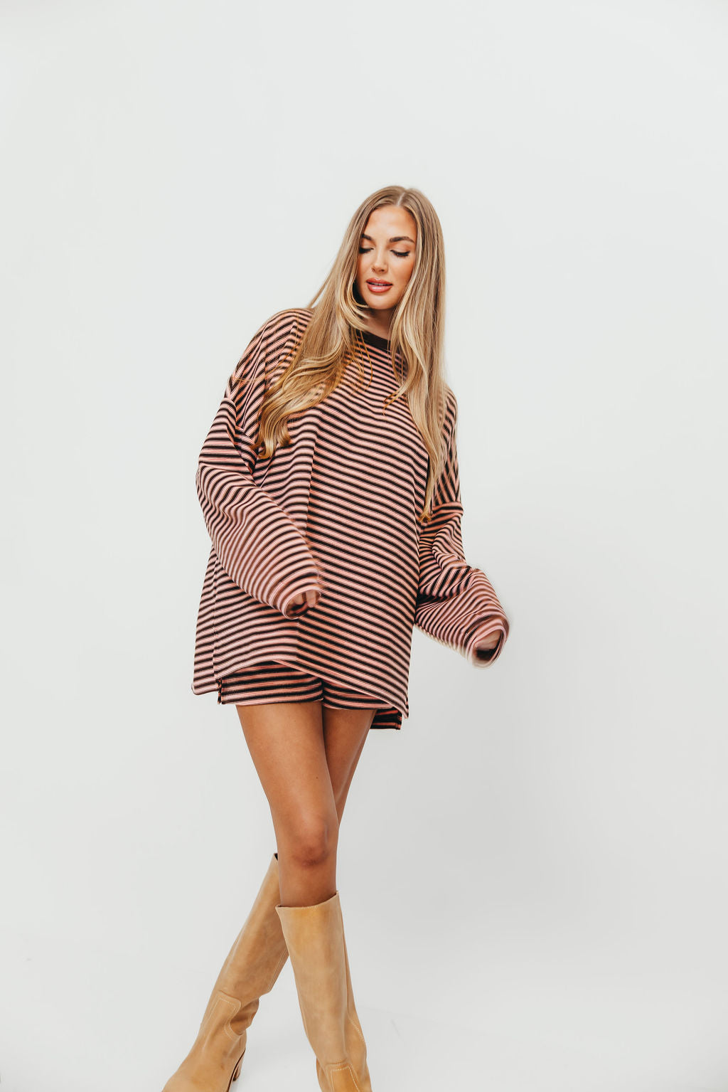 Amelie Oversized Striped Knit Sweater in Chili/White