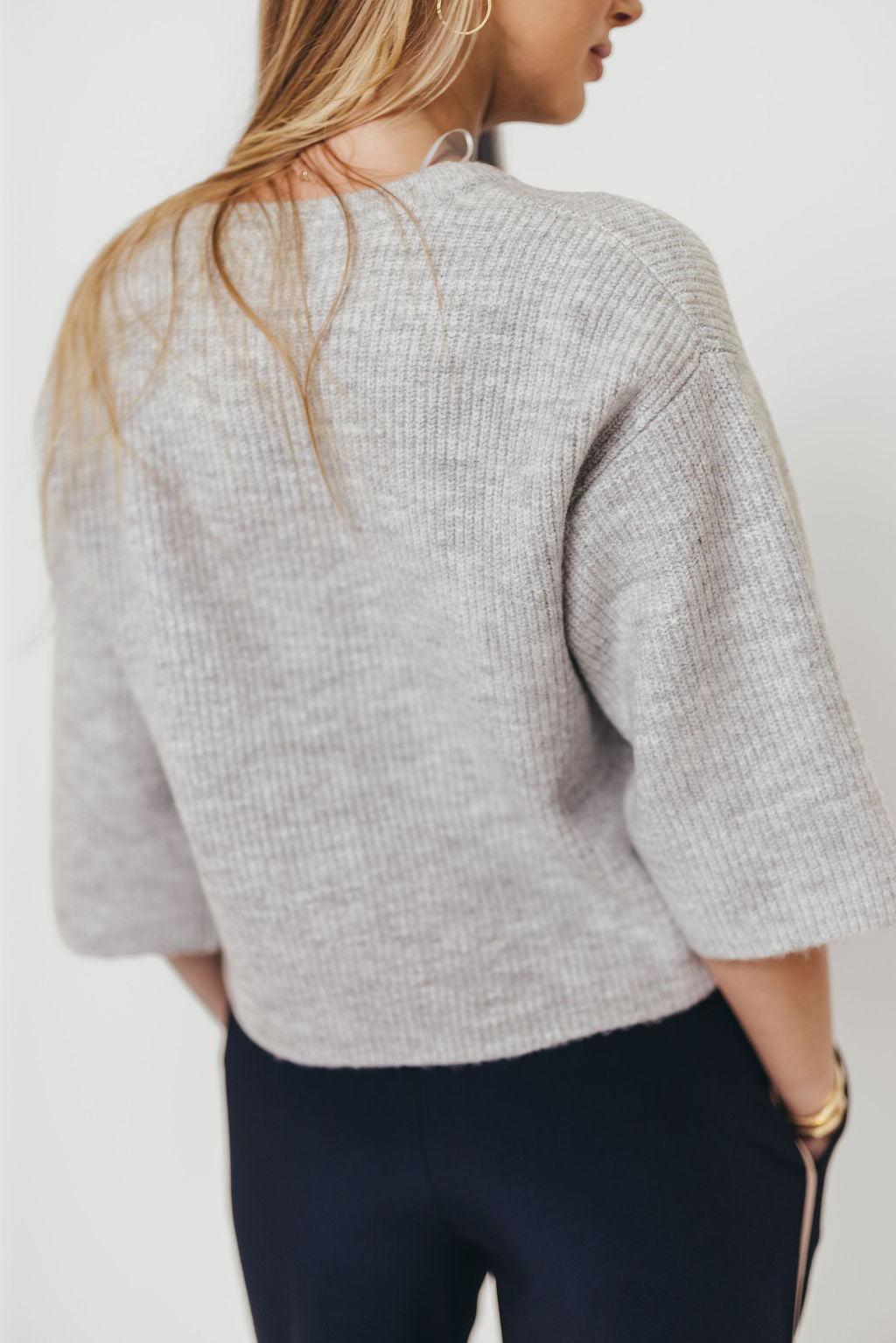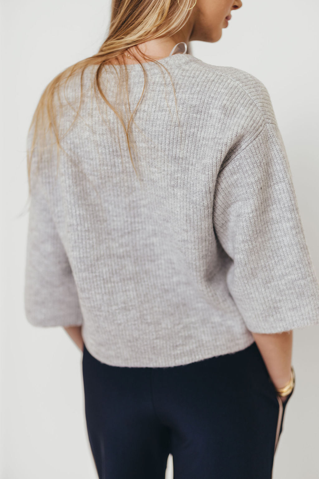 Caroline Button Down 3/4 Sleeve Sweater Cardigan in Heather Grey