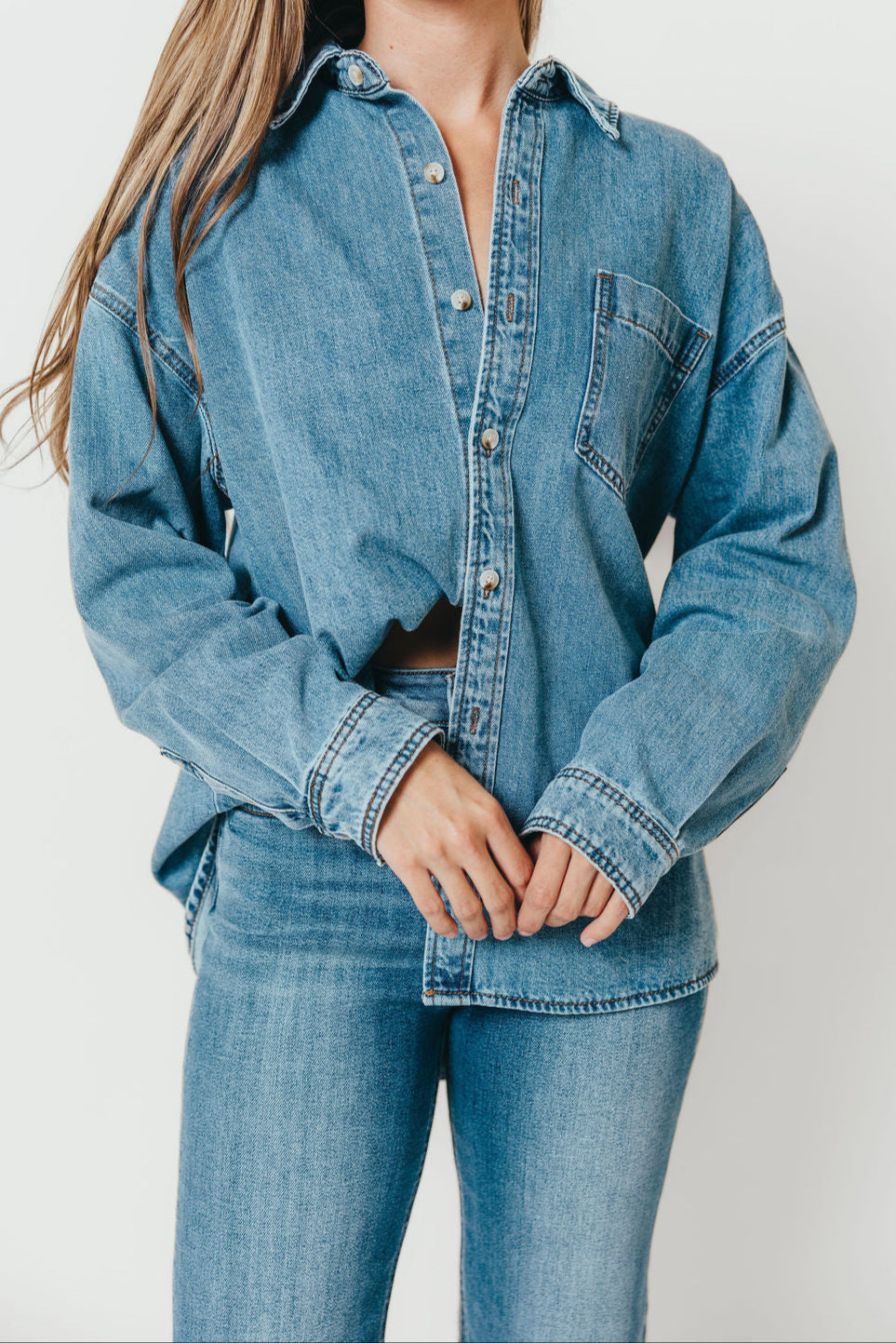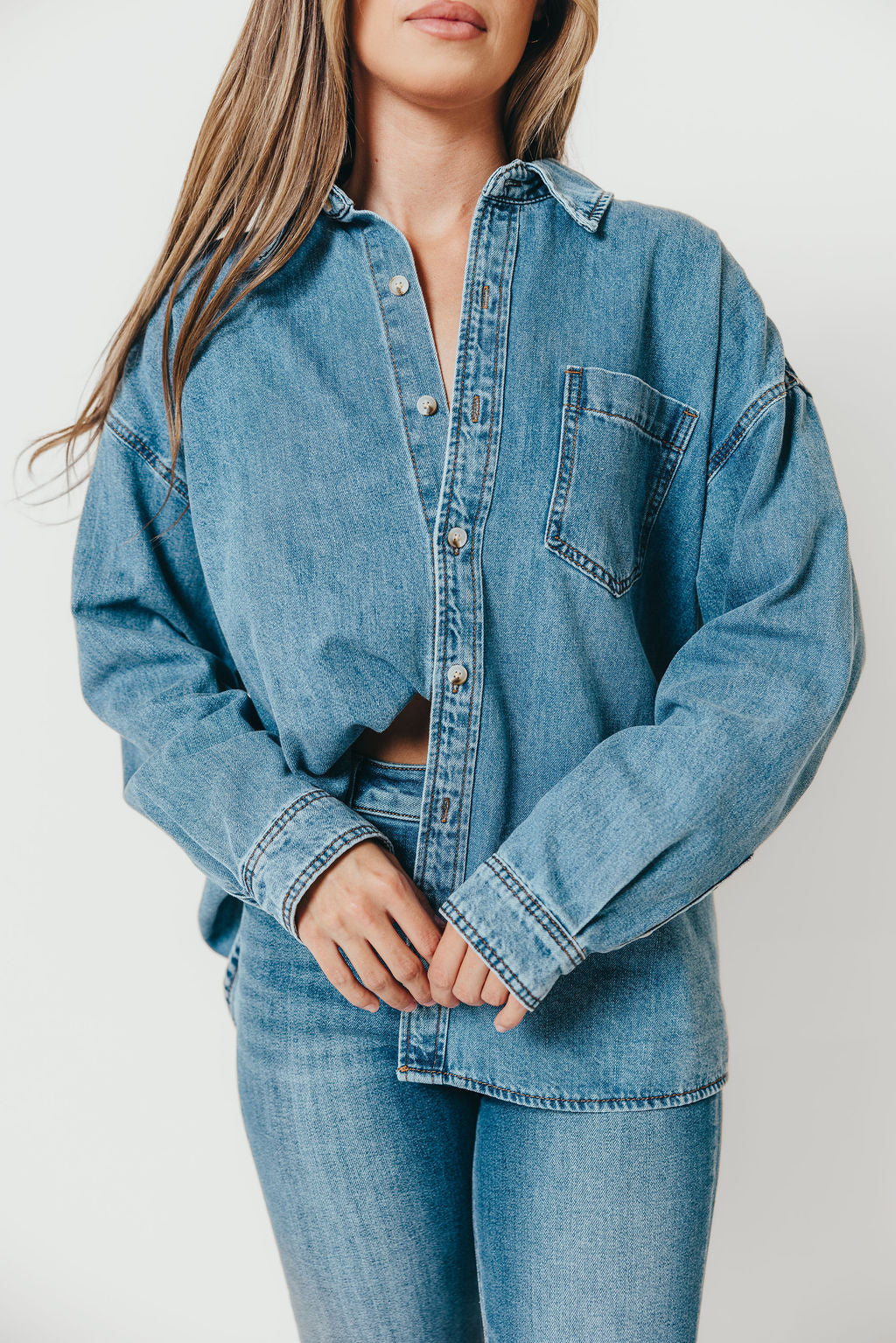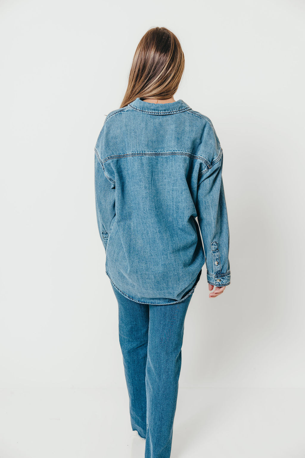 Sevyn 100% Cotton Washed Button-up Shirt in Mid Denim