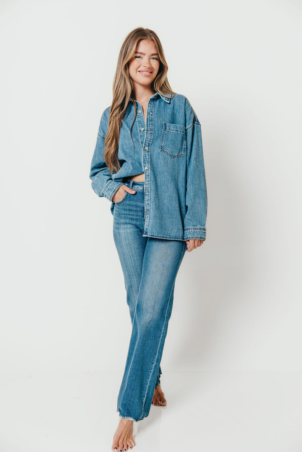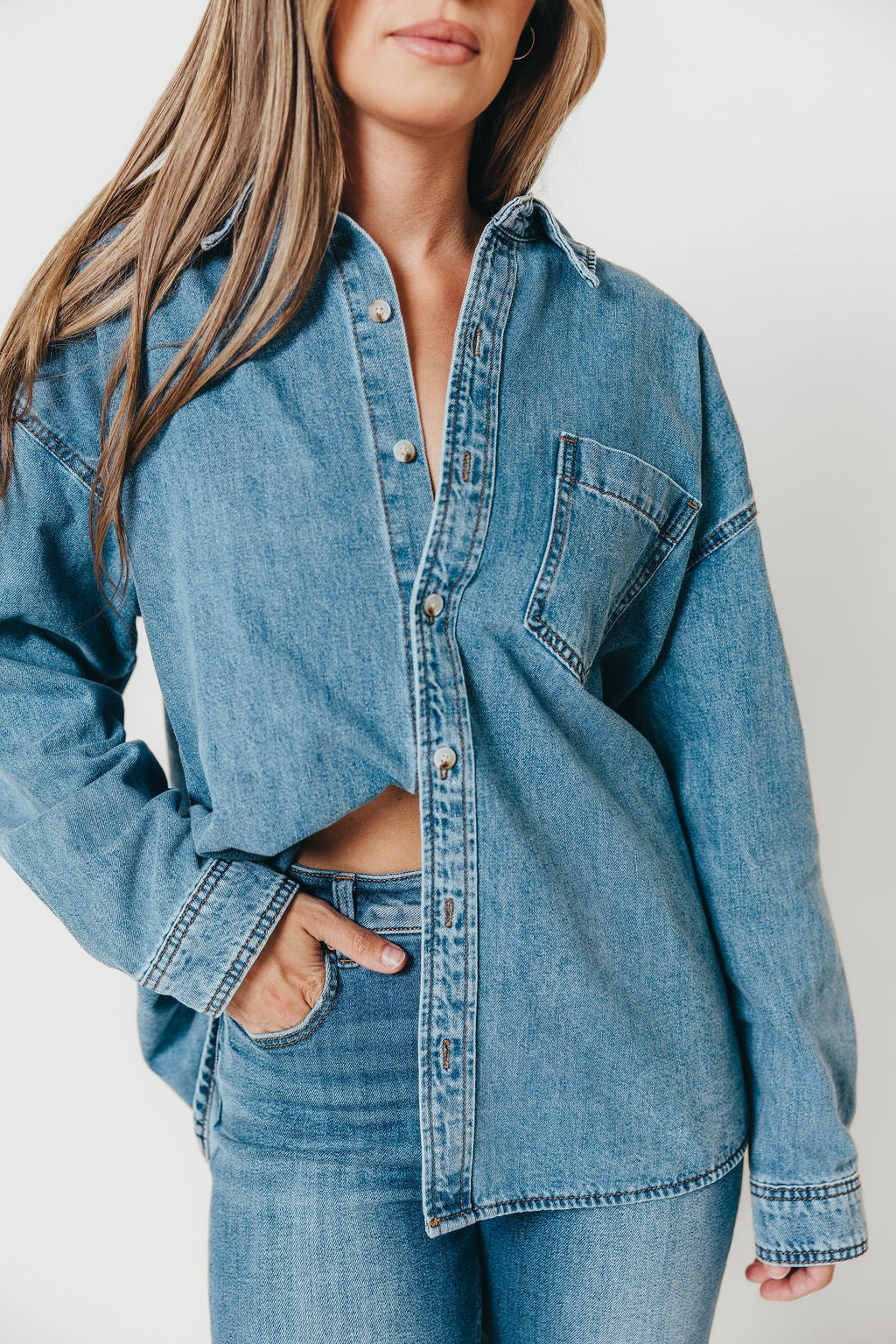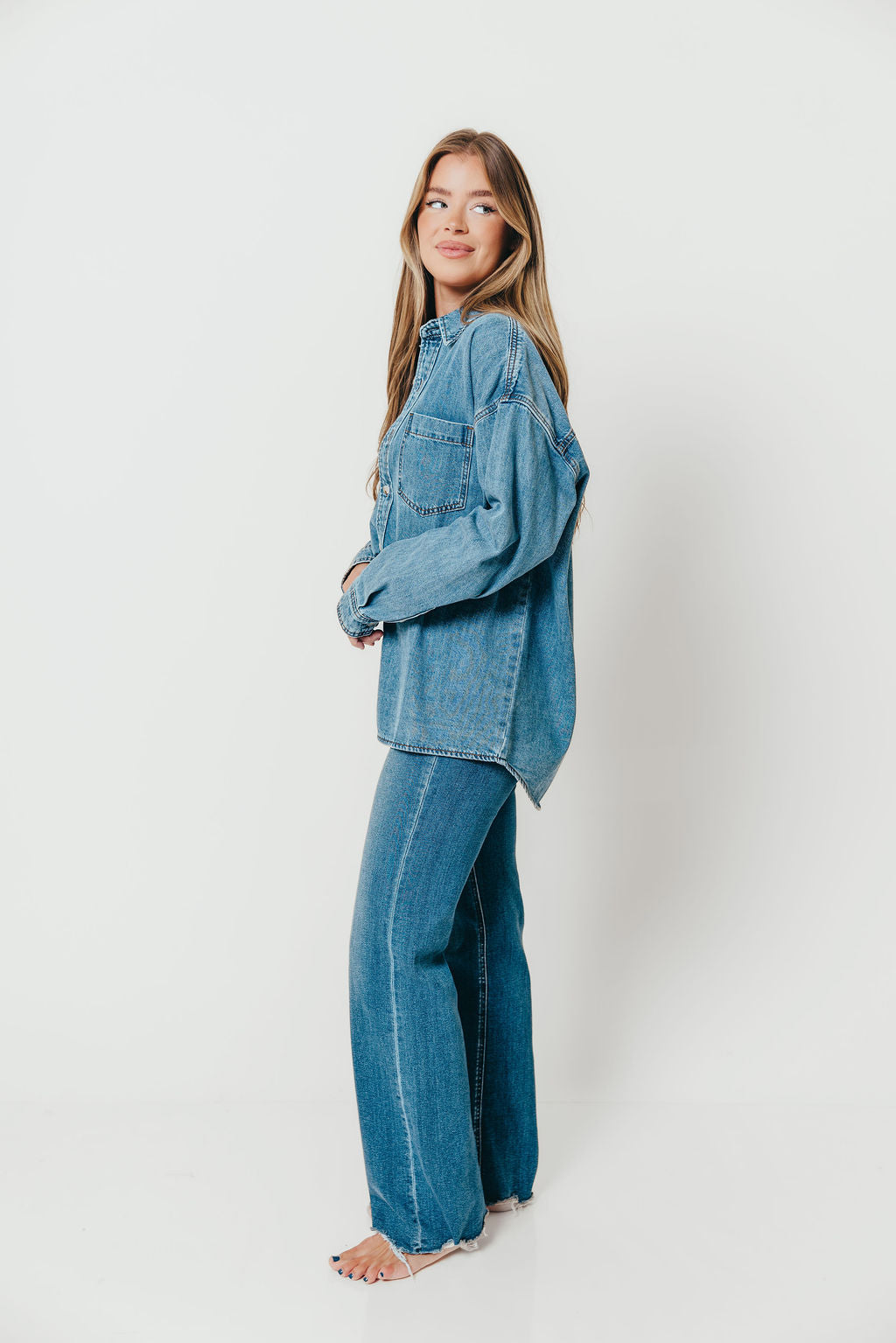Sevyn 100% Cotton Washed Button-up Shirt in Mid Denim