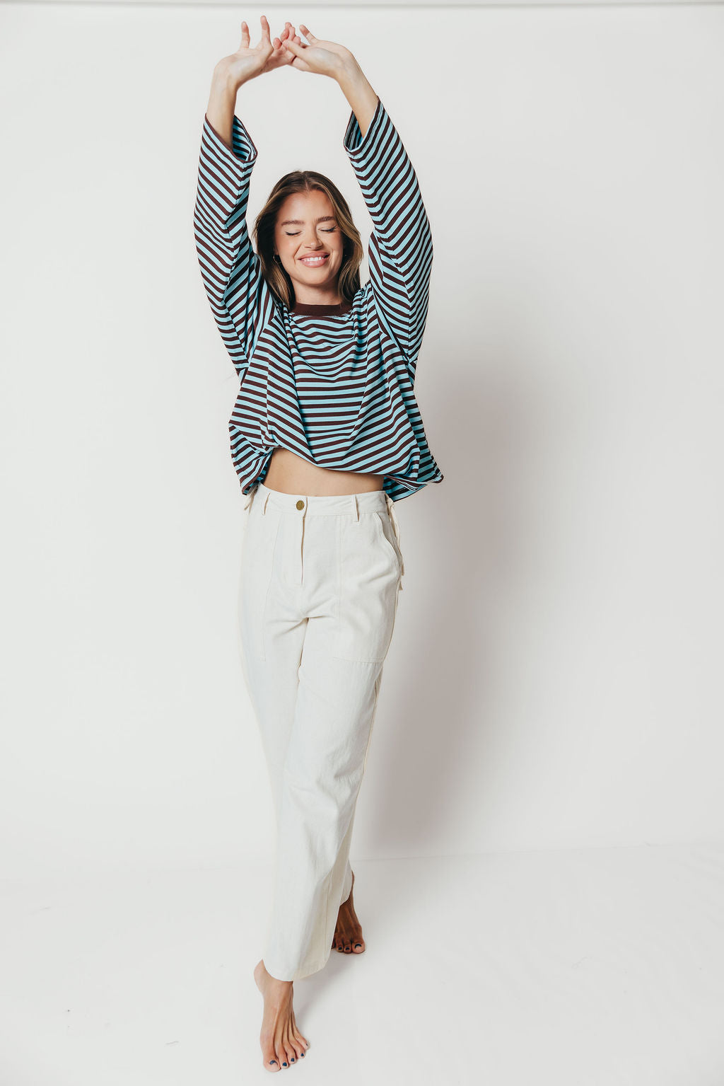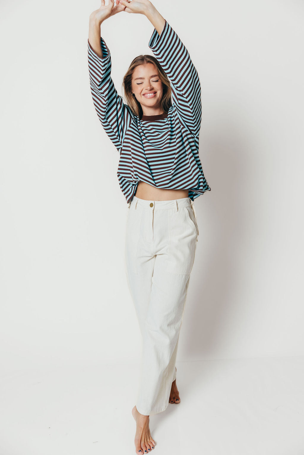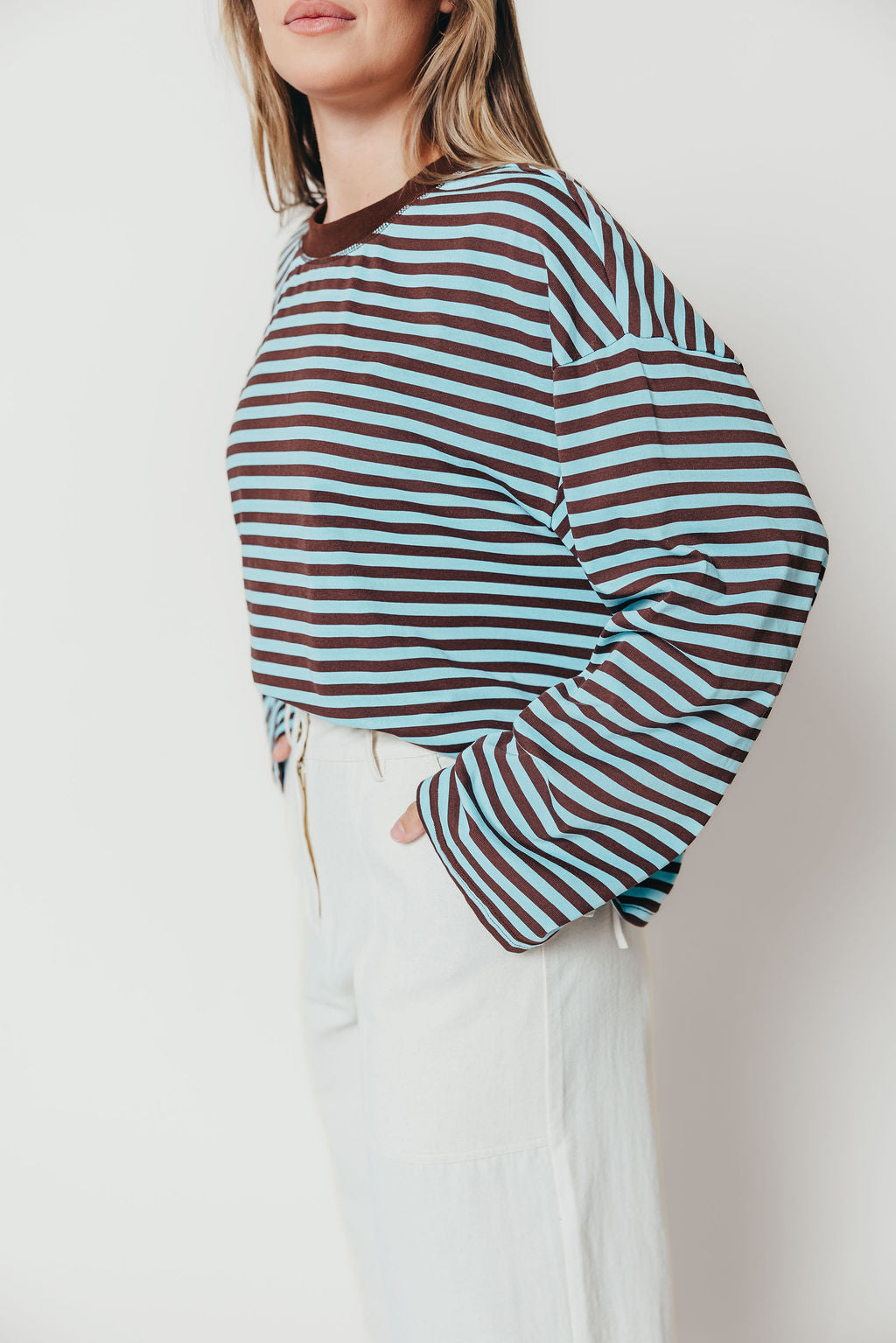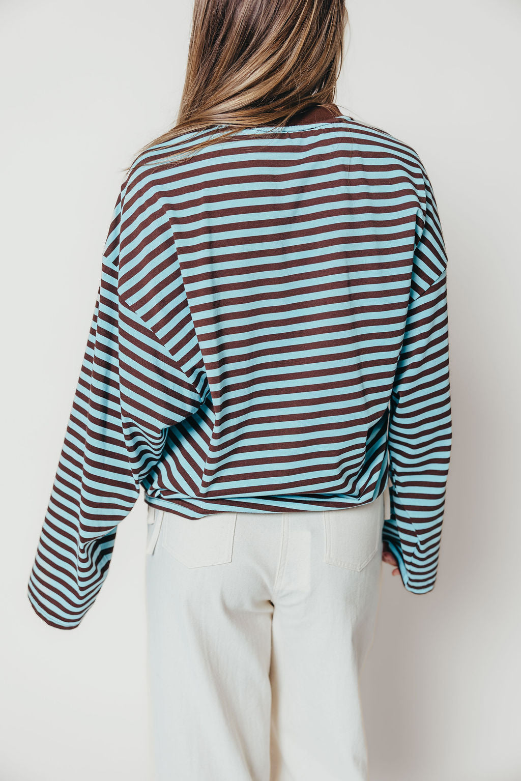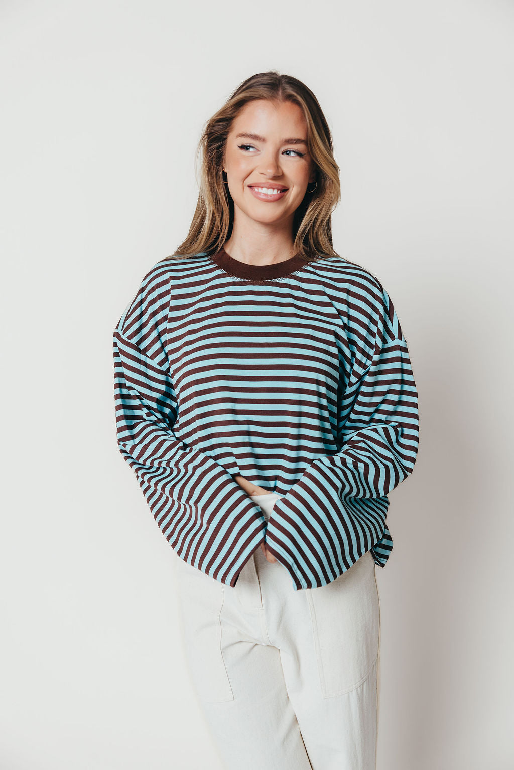 Sam Oversized Striped Basic Top in Light Blue/Brown