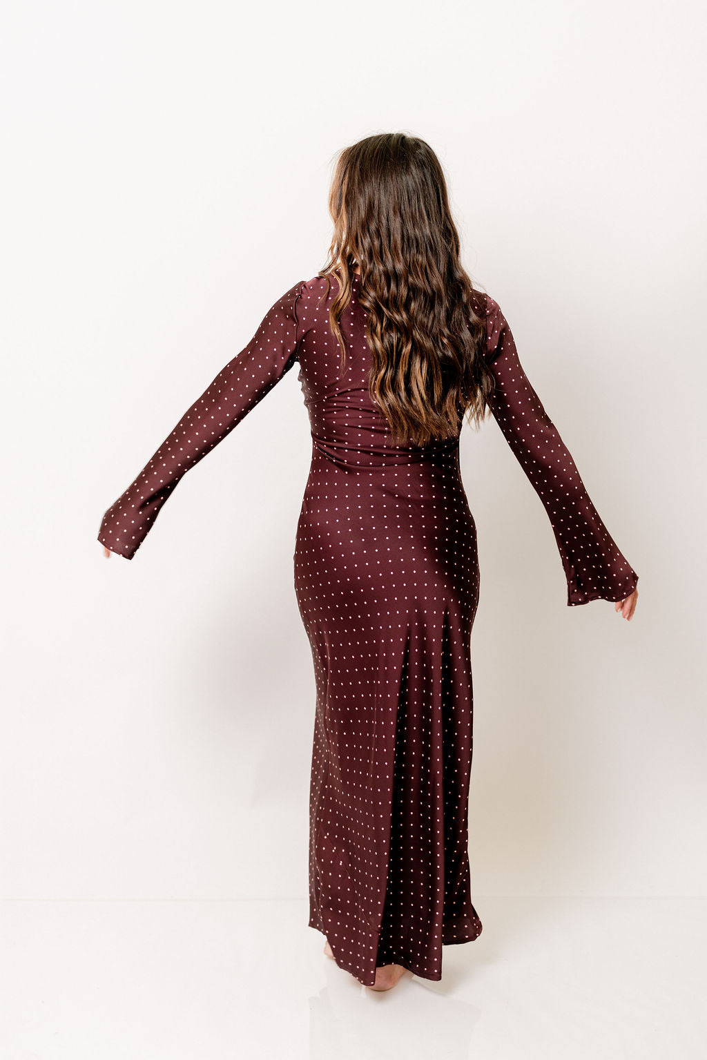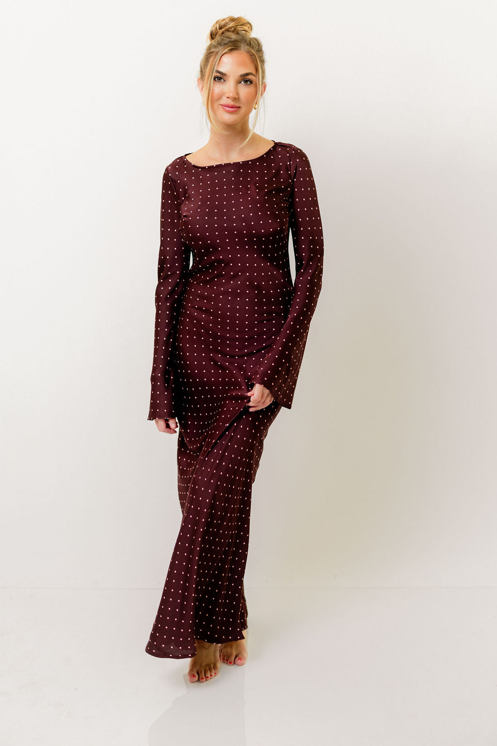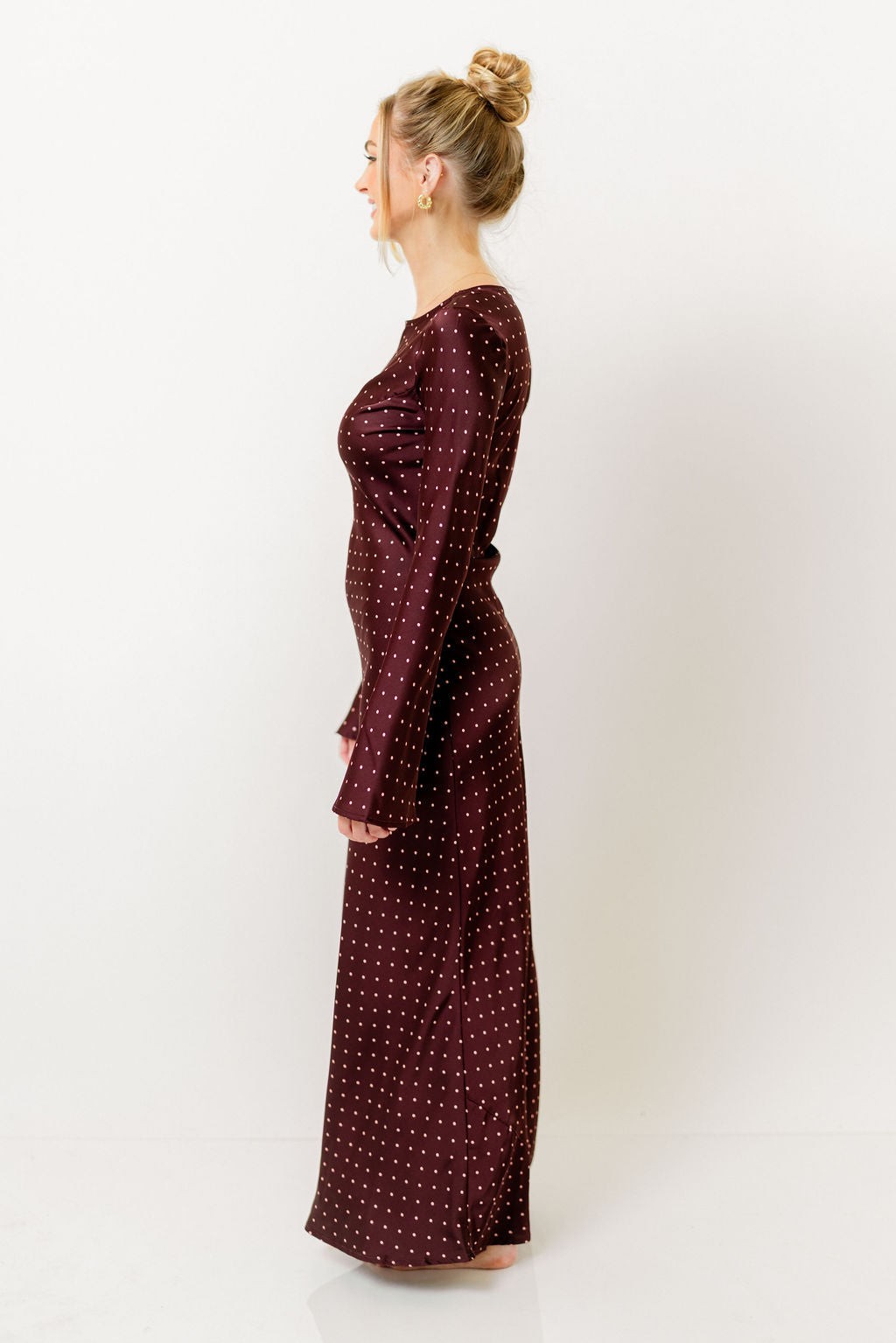 Georgie Polka Dot Maxi Dress in Burgundy
